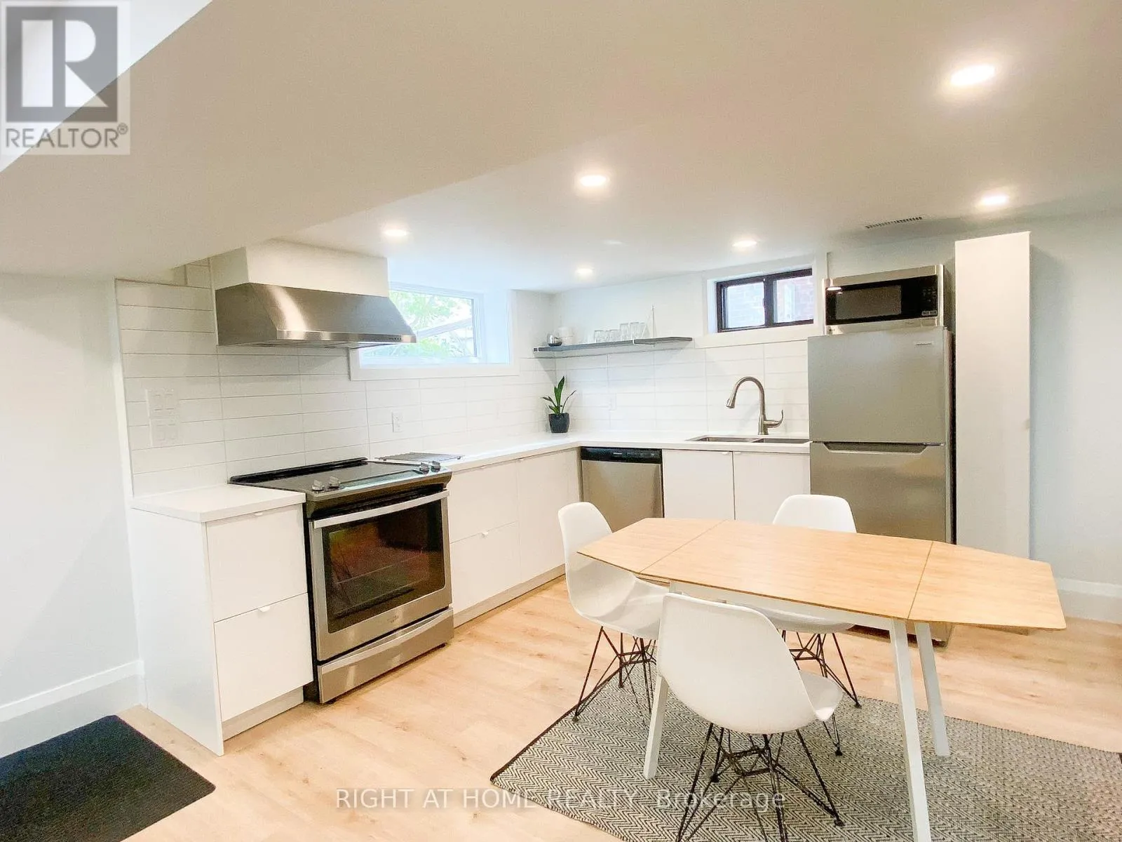 Cosburn and Coxwell Beautifully Updated Rental On Lower Level With Separate Side Entry That Leads Into The Open Concept Living/Kitchen Room. Cool White High Gloss Laminate Kitchen Cabinets, Laundry Room Has State-Of-The-Art Washer & Dryer Combo, 2 Spacious Bedrooms, 3-Pc Bathroom. Live In And Enjoy This Stylishly Modernized Space Located In A Prime East York Neighborhood. Walking Distance To TTC Bus Stop, Nearby Shops, Eateries, Michael Garron Hospital, Highway, Parks And Schools Are All At Your Doorstep. Fully furnished And Ready To Move In. Minimum 1-Year Lease, First & Last Deposit. No Smoking In Place. (id:27476)