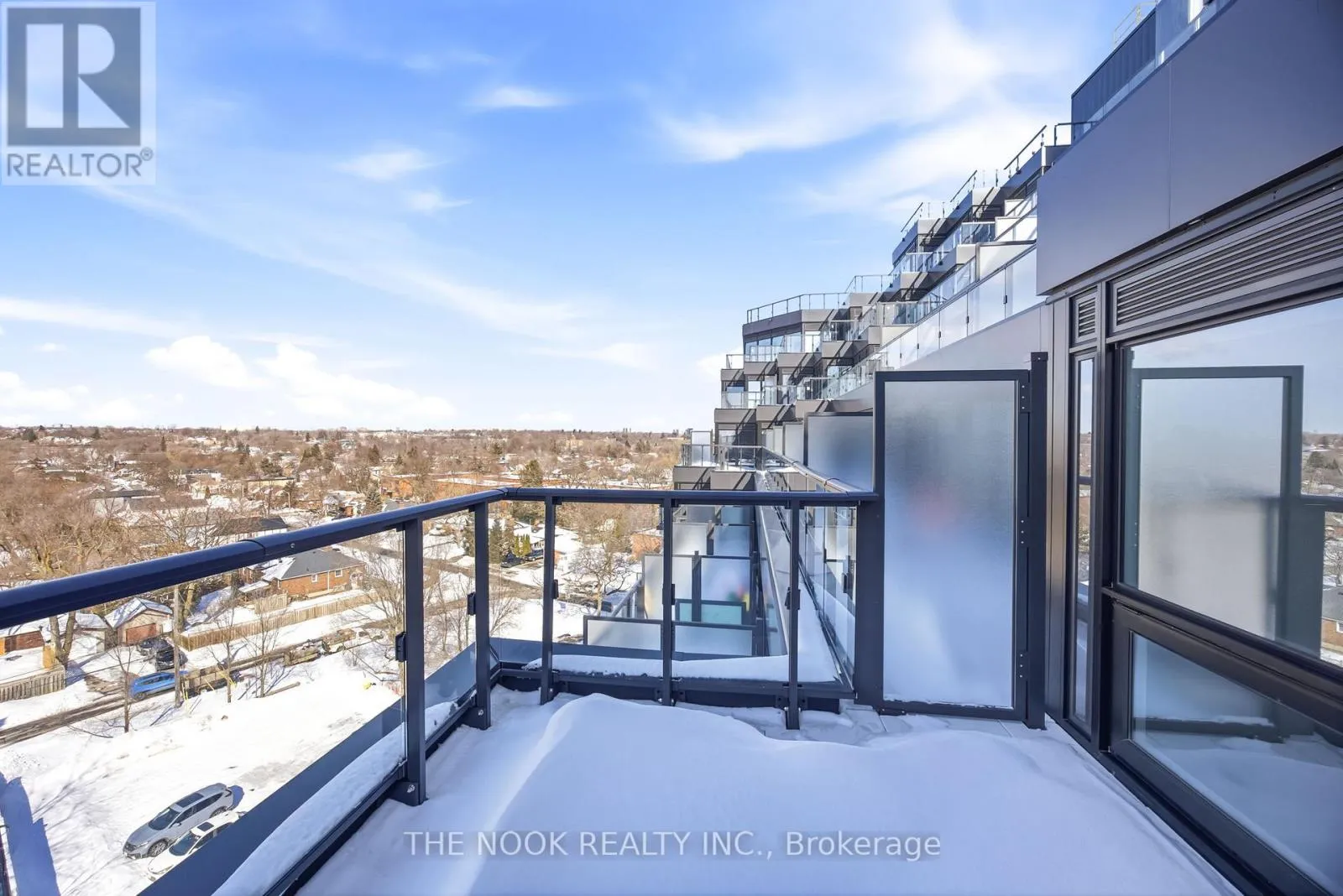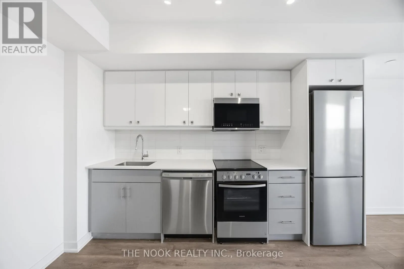 Kingston Rd / Warden Ave Welcome to The Manderley by Nova Ridge, a boutique condominium in the heart of Birchcliffe Cliffside . Perfectly positioned at Kingston Rd and Warden Ave, this brand new 2 plus den, 2 bath suite offers approximately 757 sq ft of intelligently designed living space, ideal for young entrepreneurs and professionals who want quick access downtown without giving up the lifestyle of the east end.Located on the 8th floor with north exposure, this bright and modern unit features an open concept layout with laminate flooring throughout, a sleek kitchen with stainless steel appliances, and a living and dining area that walks out to a massively, oversized private balcony. The den provides exceptional flexibility and can function as a home office, creative studio, or guest space, making work from home both practical and comfortable.The primary bedroom includes a 3 piece ensuite and closet, while the second bedroom offers a large wall to wall closet and easy access to the second full bath. Ensuite laundry adds convenience, and a locker is included for additional storage. Designed for efficient urban living, the suite balances style and function without wasted space.Residents enjoy premium amenities including concierge service, a fitness centre, rooftop terrace with BBQ area, party and meeting rooms, guest suite, visitor parking and more. Steps to transit and a short commute to the downtown core, yet minutes from the Beaches, the lake, local cafes, parks and the character of Birchcliff, this is the ideal blend of city energy and neighbourhood charm.If you are building your career, growing your brand, or simply want a vibrant community with access to everything, this is east end condo living done right. (id:27476)