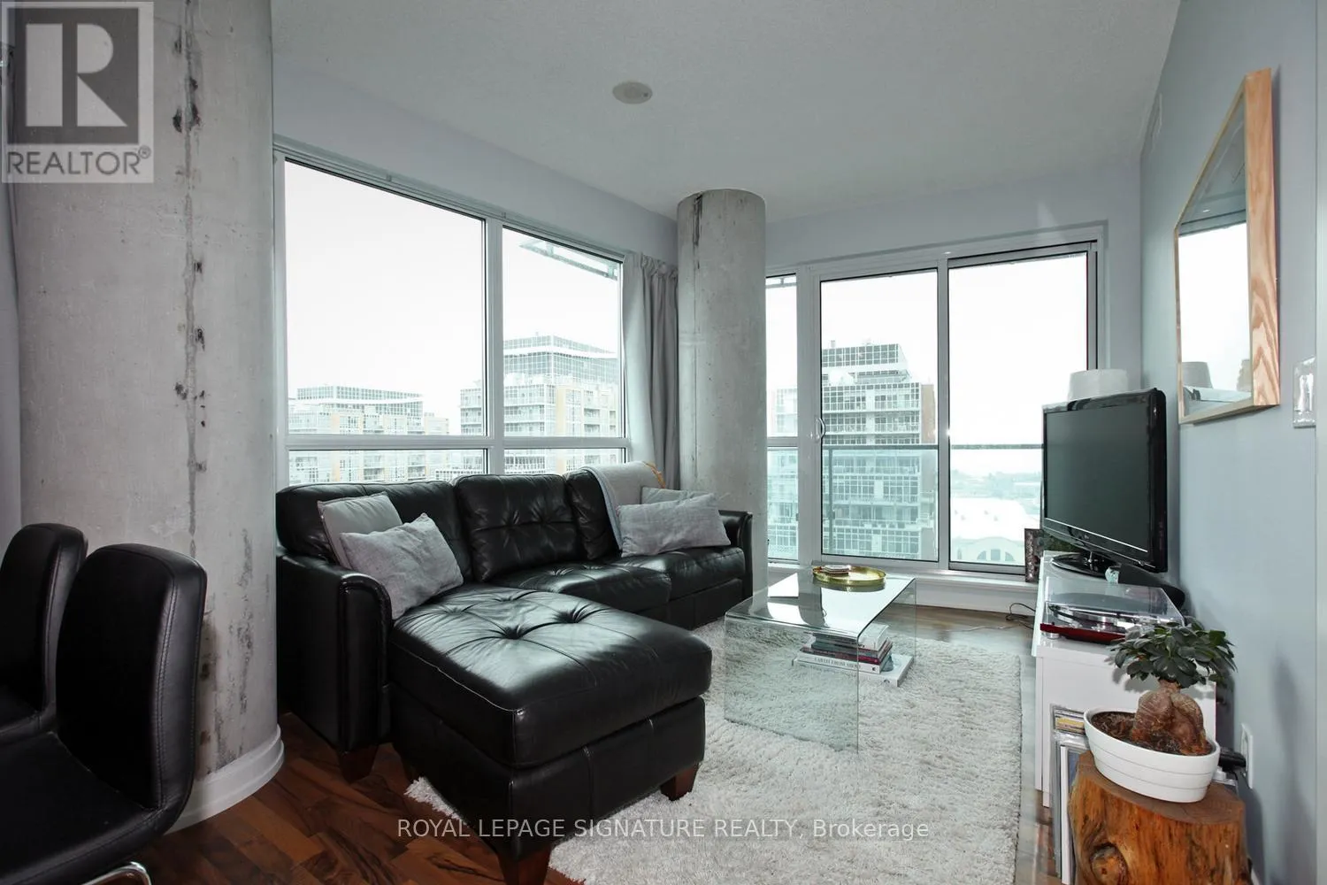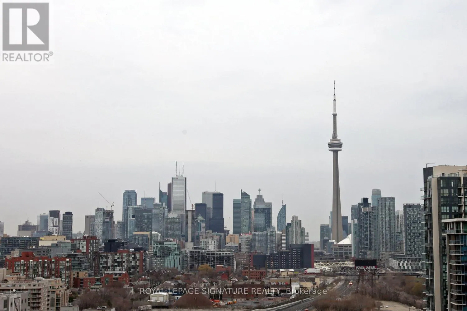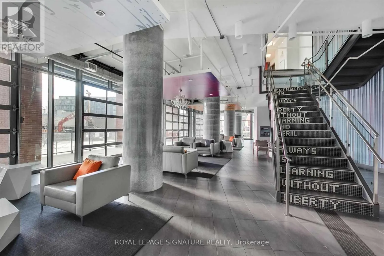 Cross Streets: East Liberty St/Strachan Ave. ** Directions: Main lobby entrance with concierge is off of East Liberty St; Garage parking entrance for visitor parking is off of Lynn Williams St through the 69 Lynn Williams St garage entrance - buildings are connected underground. This Stunning South/East Corner Loft Offers Soaring 9Ft Ceilings, Floor-To-Ceiling Windows, Exposed Concrete Columns & Unobstructed Views Of The CN Tower & Lake! The Welcoming, Extra-Large Foyer Doubles As A Den With A Double Closet & Can Be Used As A Home Office Or For Extra Storage Space. The Gourmet Kitchen Features Granite Counters, A Breakfast Bar, Full-Sized Stainless Steel Appliances & Lots Of Cabinetry. The Living/Dining Room Is Surrounded By Floor-To-Ceiling Windows, Framed By Exposed Concrete Columns & Is The Perfect Entertaining Space. The Over-Sized Primary Has Floor-To-Ceiling Windows, A Generous Walk-In Closet & 3Pc Spa Ensuite. The Light-Filled 2nd Bedroom Can Be Used As A Guest Bedroom, Home Office, Gym Or Yoga Studio - Enjoy More Floor-To-Ceiling Windows, A Double Closet & 4Pc Spa Bath Across The Hall. Relax On Your Oversized 112+ Sqft Private Balcony 19 Floors Up With Breathtaking Unobstructed Views Of The CN Tower & Lake. Ensuite Laundry! Includes TWO Storage Lockers & 1 Parking Spot! (id:27476)