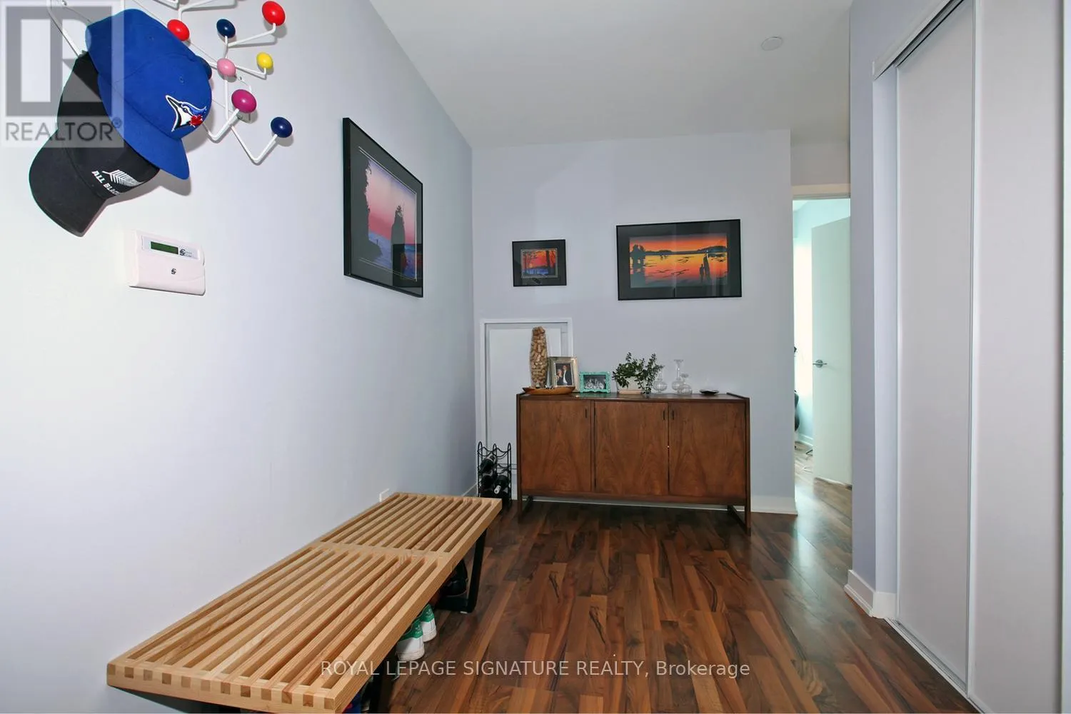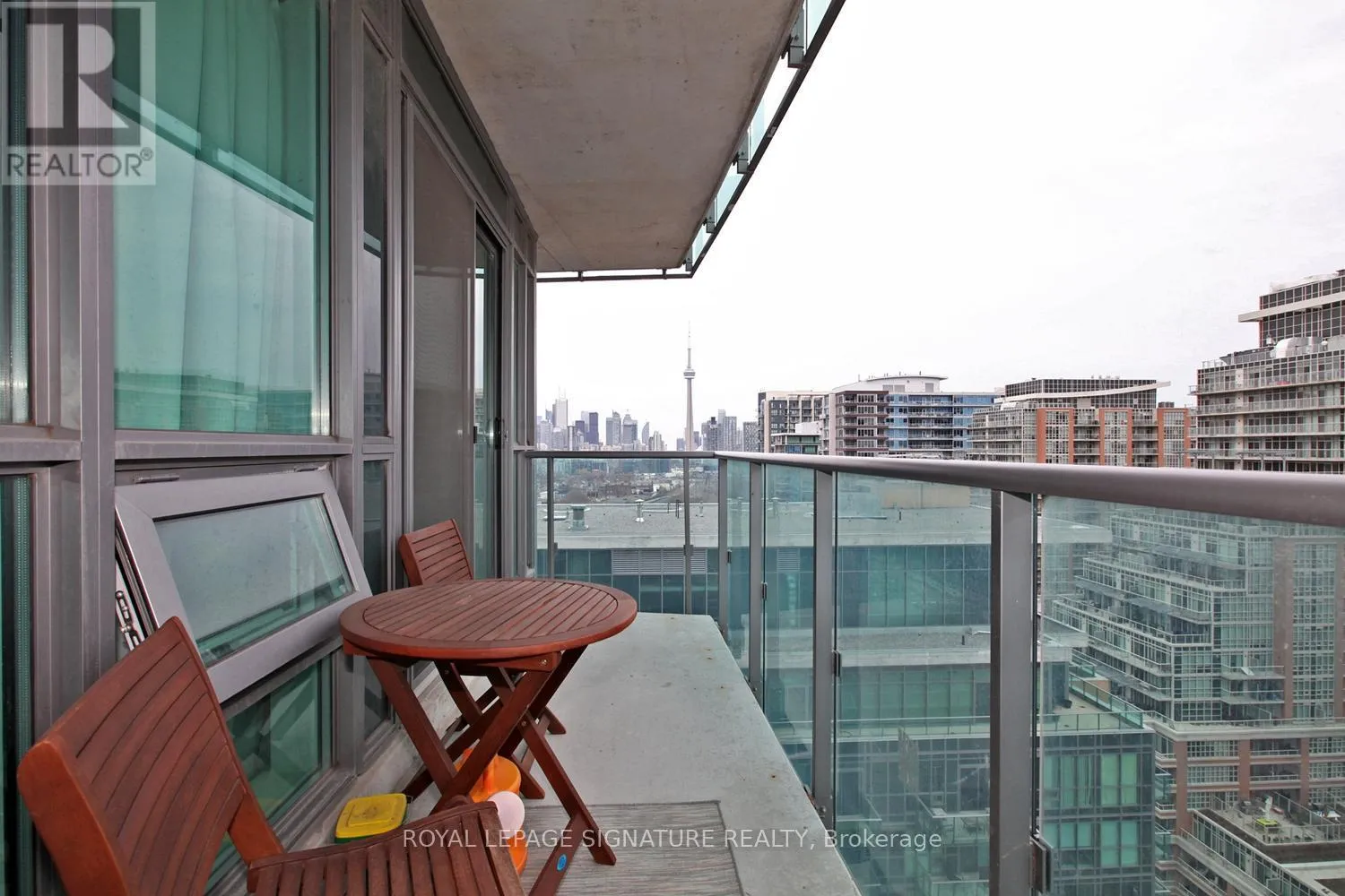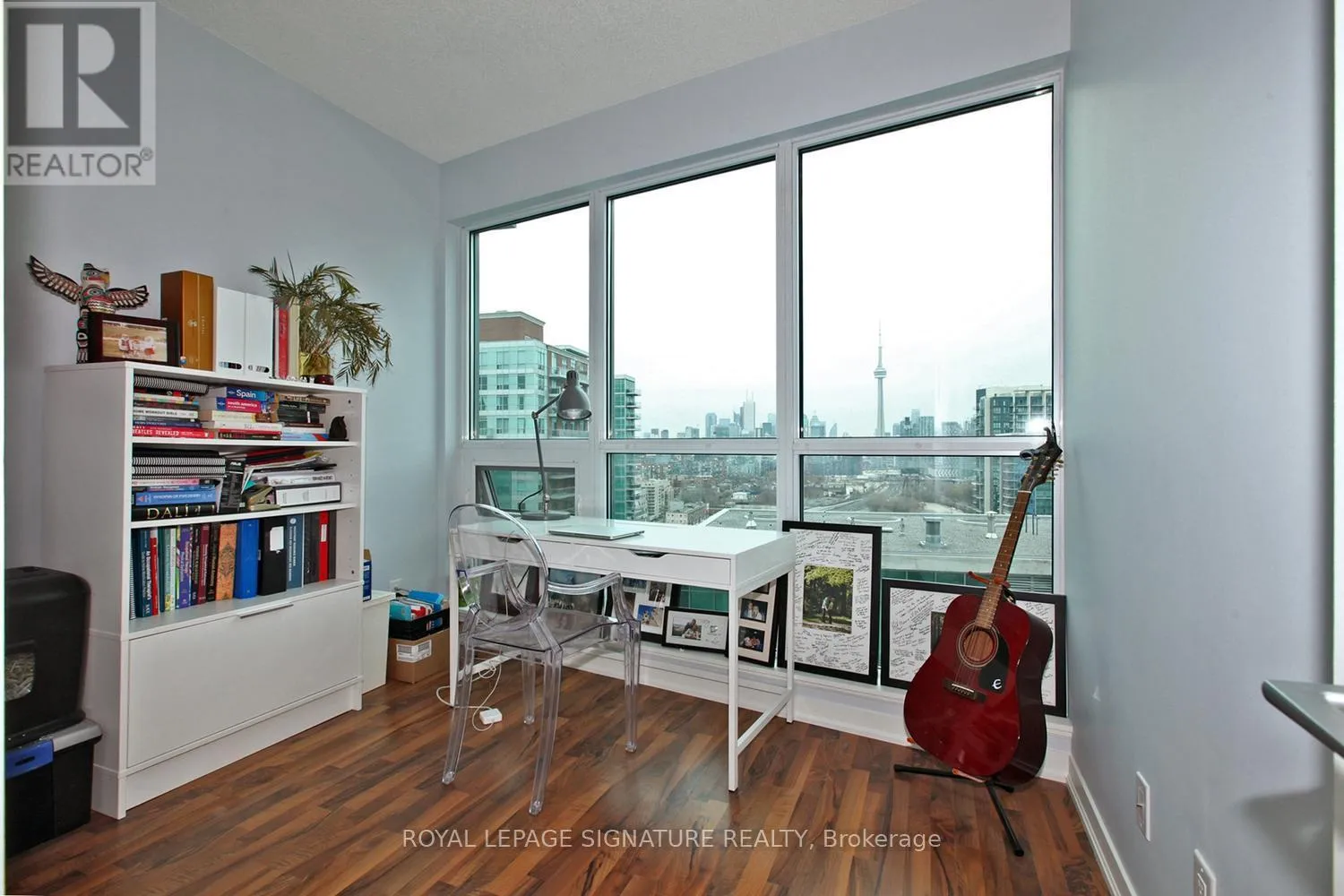 Cross Streets: East Liberty St/Strachan Ave. ** Directions: Main lobby entrance with concierge is off of East Liberty St; Garage parking entrance for visitor parking is off of Lynn Williams St through the 69 Lynn Williams St garage entrance - buildings are connected underground. This Stunning South/East Corner Loft Offers Soaring 9Ft Ceilings, Floor-To-Ceiling Windows, Exposed Concrete Columns & Unobstructed Views Of The CN Tower & Lake! The Welcoming, Extra-Large Foyer Doubles As A Den With A Double Closet & Can Be Used As A Home Office Or For Extra Storage Space. The Gourmet Kitchen Features Granite Counters, A Breakfast Bar, Full-Sized Stainless Steel Appliances & Lots Of Cabinetry. The Living/Dining Room Is Surrounded By Floor-To-Ceiling Windows, Framed By Exposed Concrete Columns & Is The Perfect Entertaining Space. The Over-Sized Primary Has Floor-To-Ceiling Windows, A Generous Walk-In Closet & 3Pc Spa Ensuite. The Light-Filled 2nd Bedroom Can Be Used As A Guest Bedroom, Home Office, Gym Or Yoga Studio - Enjoy More Floor-To-Ceiling Windows, A Double Closet & 4Pc Spa Bath Across The Hall. Relax On Your Oversized 112+ Sqft Private Balcony 19 Floors Up With Breathtaking Unobstructed Views Of The CN Tower & Lake. Ensuite Laundry! Includes TWO Storage Lockers & 1 Parking Spot! (id:27476)