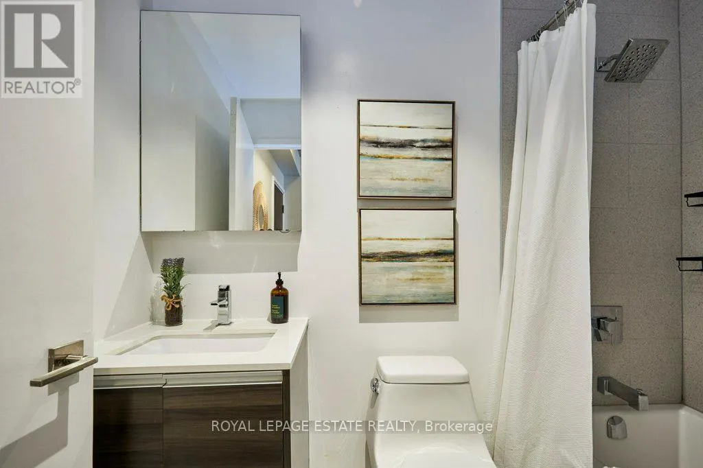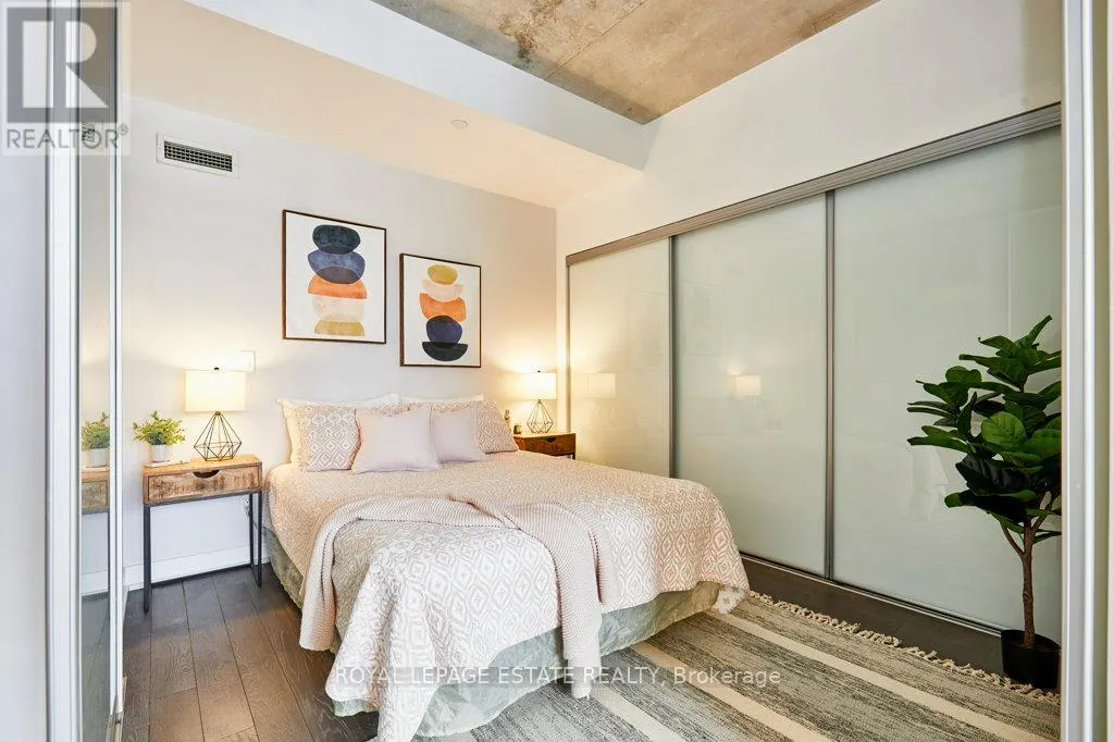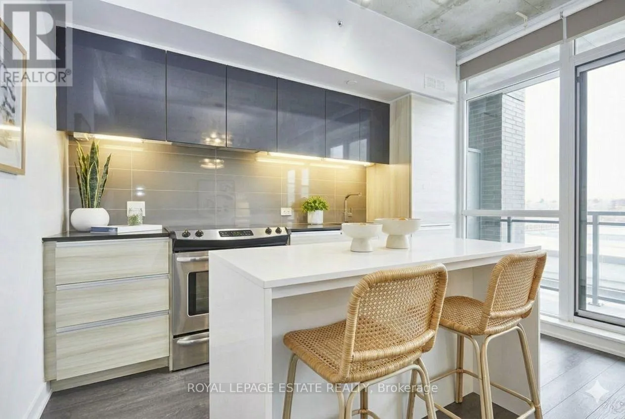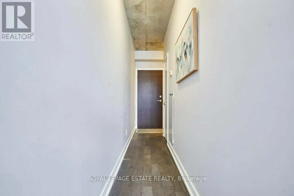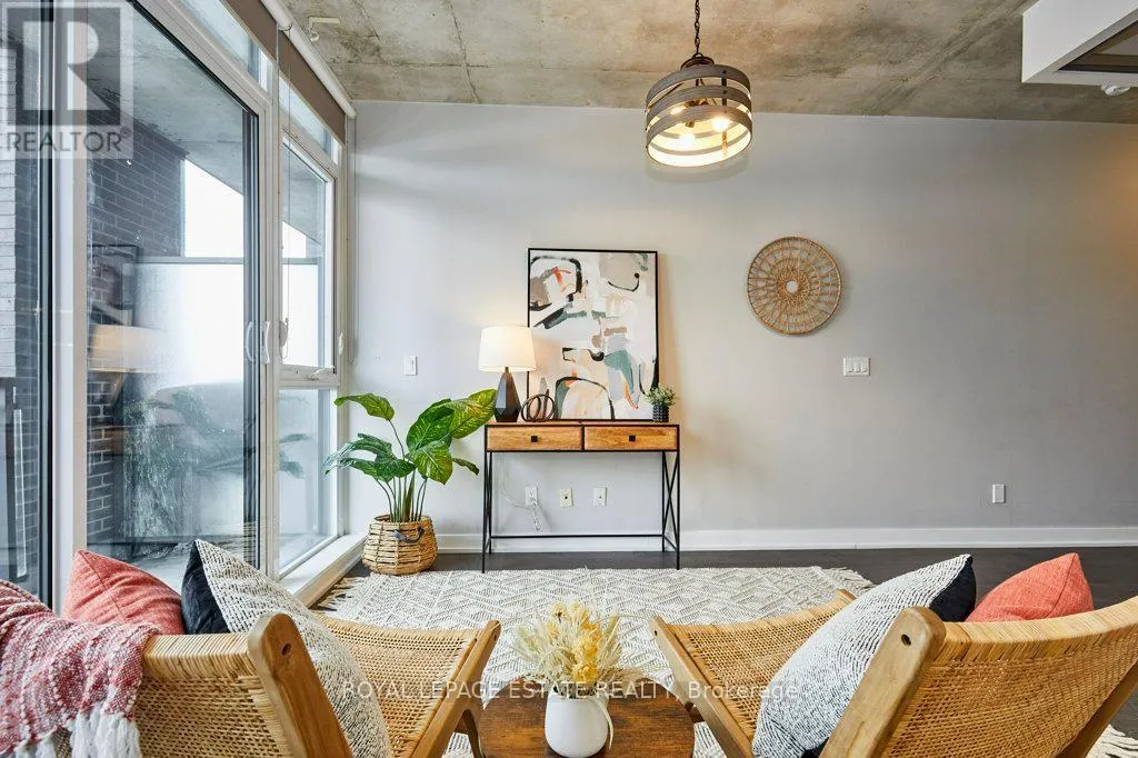 Cross Streets: Dundas & Carlaw. ** Directions: North East Corner. Welcome to The Carlaw - an impeccably designed condo-loft that offers a bright, efficient footprint and the perfect entry point into Leslieville. This suite features 9-foot exposed concrete ceilings, floor-to-ceiling windows, and engineered hardwood throughout an open-concept layout optimized for modern living. The sleek kitchen has integrated appliances, quartz countertops, and under-cabinet lighting, while practical details like a proper entry hall closet and a separate laundry room with extra storage enhance the home's daily functionality. Step outside to your private, covered balcony - equipped with a Gas BBQ hookup-offering year-round usability and a quiet escape. Residents enjoy premium amenities including a 24-hour concierge, a fully equipped gym, and a rooftop terrace with breathtaking city skyline sunsets. With Piano Piano and Crow's Theatre at your doorstep, and the best shops and cafes of Riverside and Leslieville are just a short stroll away, this location offers a completely walkable lifestyle in one of Toronto's most coveted pockets. This property is priced for immediate action, this suite is the Leslieville entry point you've been waiting for! (id:27476)