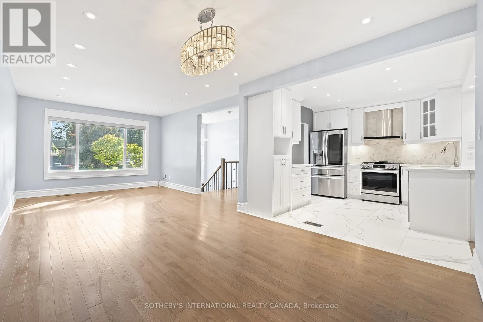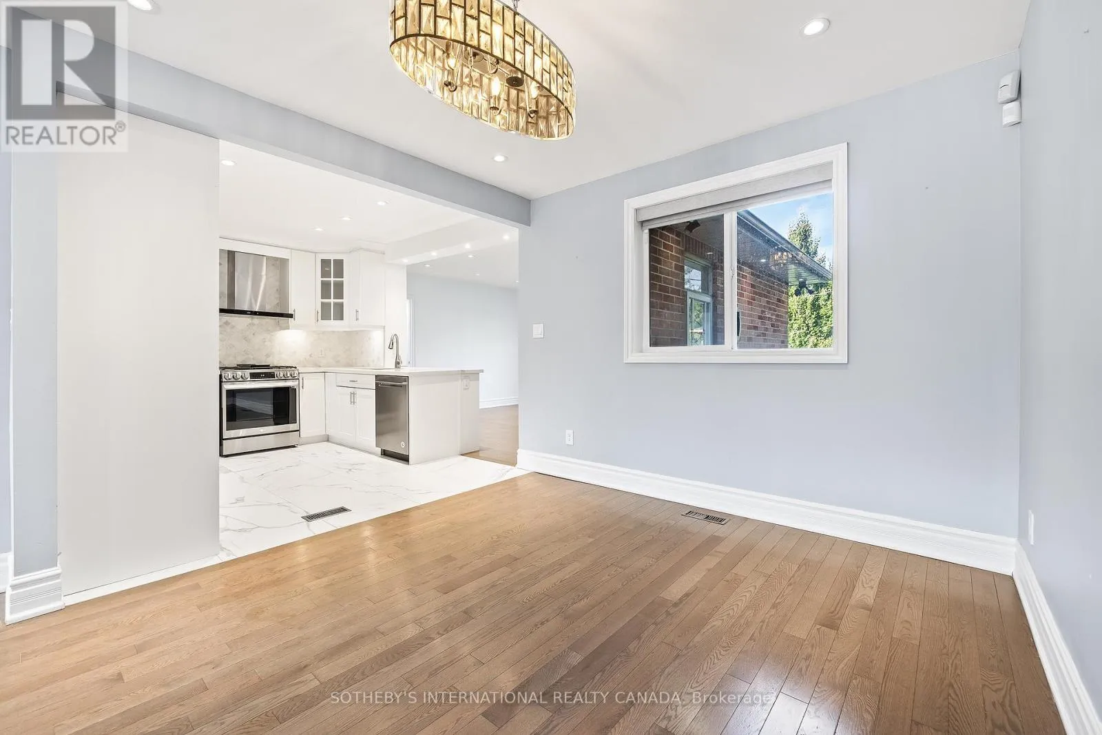 York Mills / DVP Stunning Family Bungalow in Prime Location, featuring three inviting bedrooms upstairs, each designed for comfort and privacy. The upper level also boasts modern pot lights that add a touch of elegance and brightness throughout. The main floor offers an open-concept living room, dining room, and family room with walk-out to the backyard, all adorned with rich hardwood floors that enhance the home's warmth and character. The 3-bedroom home features a master suite with walk-in closet and 4-piece modern bathrooms. The fully finished basement is a versatile space, complete with a side entrance, providing added convenience and privacy. It includes three additional bedrooms with comfortable laminate flooring, and two full bathrooms, making it ideal for guests, extended family, an in-law suite or extra living space. Relax in the fully fenced backyard, ideal for kids, pets, or entertaining. Move-in ready, this home blends style, comfort, and functionality in a sought-after neighbourhood. This bungalow perfectly combines style, comfort, and functionality, offering a welcoming environment for any home owner. (id:27476)