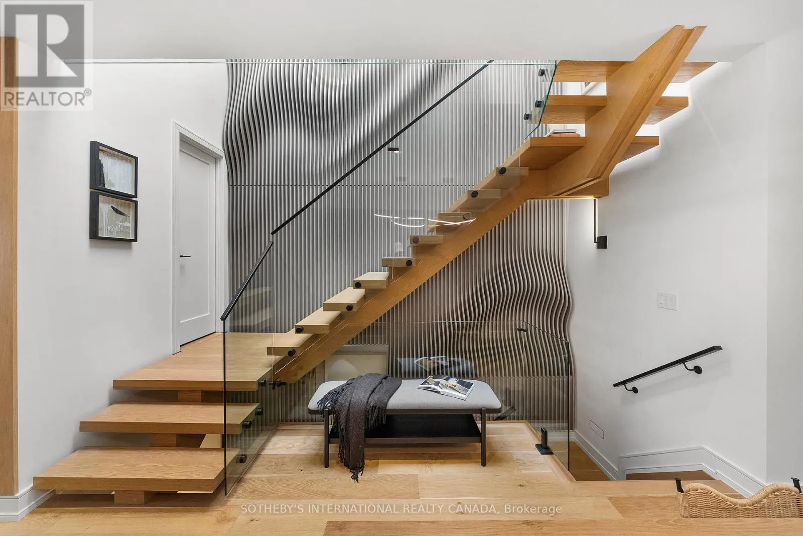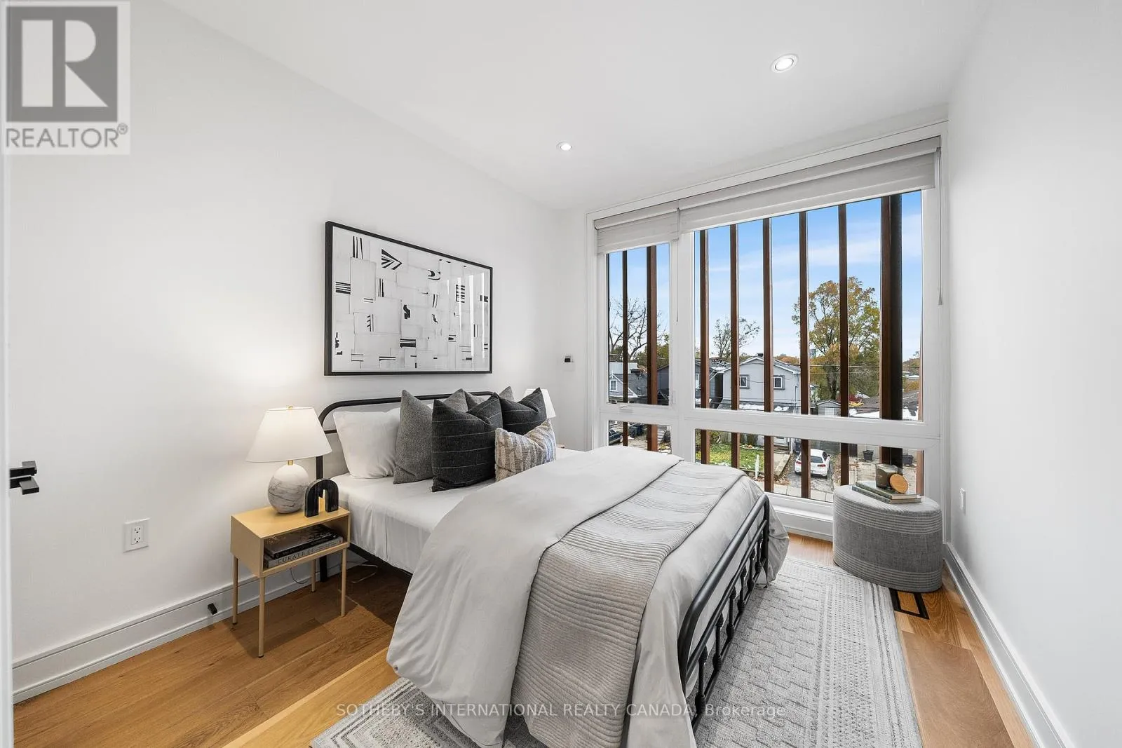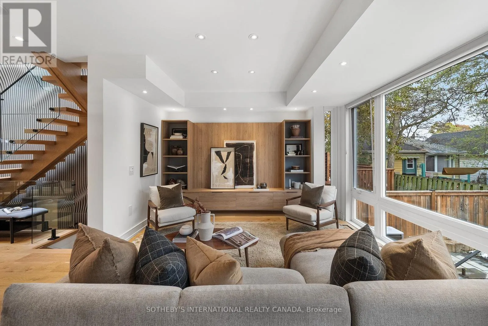 Cross Streets: Coxwell Ave & Cosburn Ave. ** Directions: Please, follow your GPS. From the moment you arrive, 83 Virginia Avenue stands apart with its striking wood façade and carefully considered design. Inside, the spaces are filled with light, natural materials, and a sense of balance that makes the home both sophisticated and comfortable.The main floor flows effortlessly between living, dining, and kitchen areas framed by floor-to-ceiling windows and rich hardwood flooring. A gas fireplace adds warmth, while the custom kitchen combines quartz counters, integrated dining, and built-in cabinetry designed for everyday living. At the rear of the home, the family room features warm custom-built-ins and opens through a glass door to a lovely private garden with a beautiful garden shed. A sculptural staircase ascends beside a dramatic 27-foot feature wall crowned by a skylight, drawing natural light deep into the home. Upstairs, the primary suite offers a calm retreat with custom wall-to-wall built-in closets, floor-to-ceiling windows, and a spa-inspired ensuite with a walk-in shower and deep soaking tub. Three additional generously sized bedrooms and a well-appointed laundry room- illuminated by its own skylight- complete the second level. The lower level extends the living space with a bright recreation room featuring a wet bar, built-in storage, and a large glass door that opens directly to the backyard. A convenient side-door entry enhances functionality, and a private guest bedroom and full bath provide comfort and flexibility for visitors. A built-in garage and private drive offer parking for three vehicles. Every finish, fixture, and proportion reflects careful thought- creating a home that feels both refined and welcoming. (id:27476)