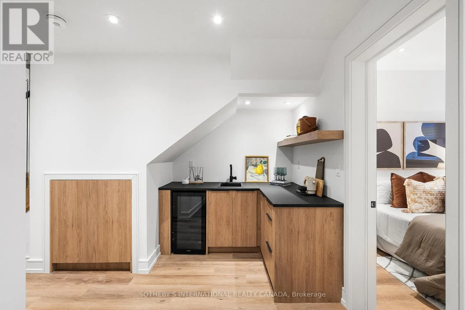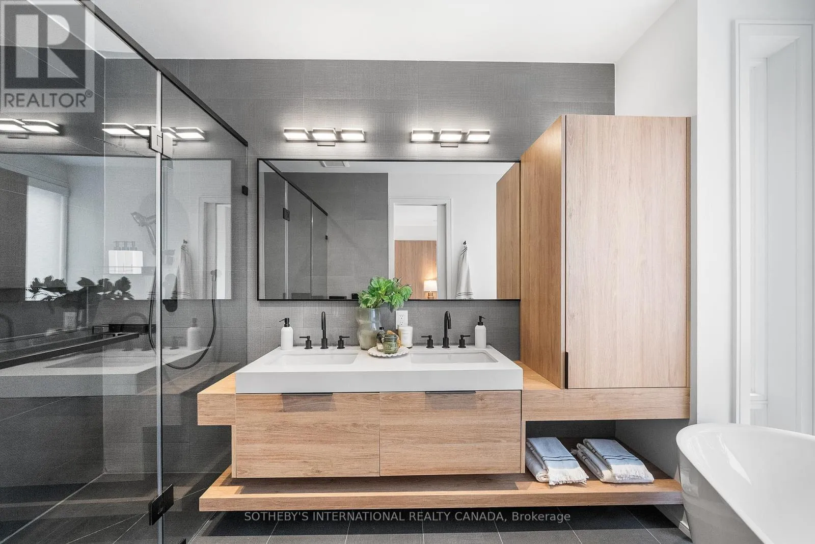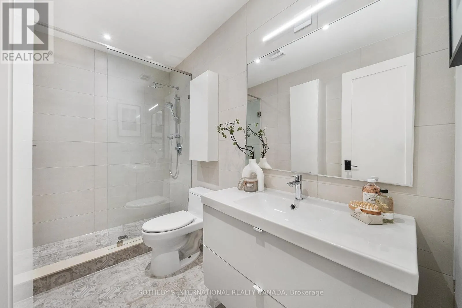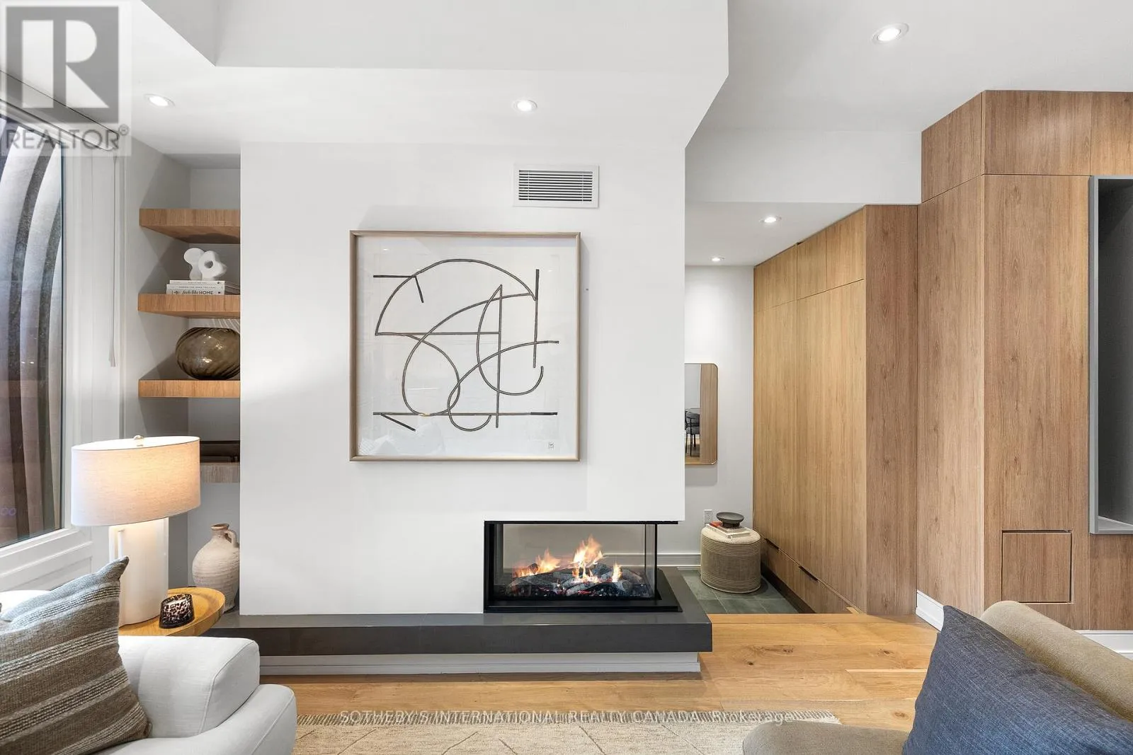 Cross Streets: Coxwell Ave & Cosburn Ave. ** Directions: Please, follow your GPS. From the moment you arrive, 83 Virginia Avenue stands apart with its striking wood façade and carefully considered design. Inside, the spaces are filled with light, natural materials, and a sense of balance that makes the home both sophisticated and comfortable.The main floor flows effortlessly between living, dining, and kitchen areas framed by floor-to-ceiling windows and rich hardwood flooring. A gas fireplace adds warmth, while the custom kitchen combines quartz counters, integrated dining, and built-in cabinetry designed for everyday living. At the rear of the home, the family room features warm custom-built-ins and opens through a glass door to a lovely private garden with a beautiful garden shed. A sculptural staircase ascends beside a dramatic 27-foot feature wall crowned by a skylight, drawing natural light deep into the home. Upstairs, the primary suite offers a calm retreat with custom wall-to-wall built-in closets, floor-to-ceiling windows, and a spa-inspired ensuite with a walk-in shower and deep soaking tub. Three additional generously sized bedrooms and a well-appointed laundry room- illuminated by its own skylight- complete the second level. The lower level extends the living space with a bright recreation room featuring a wet bar, built-in storage, and a large glass door that opens directly to the backyard. A convenient side-door entry enhances functionality, and a private guest bedroom and full bath provide comfort and flexibility for visitors. A built-in garage and private drive offer parking for three vehicles. Every finish, fixture, and proportion reflects careful thought- creating a home that feels both refined and welcoming. (id:27476)