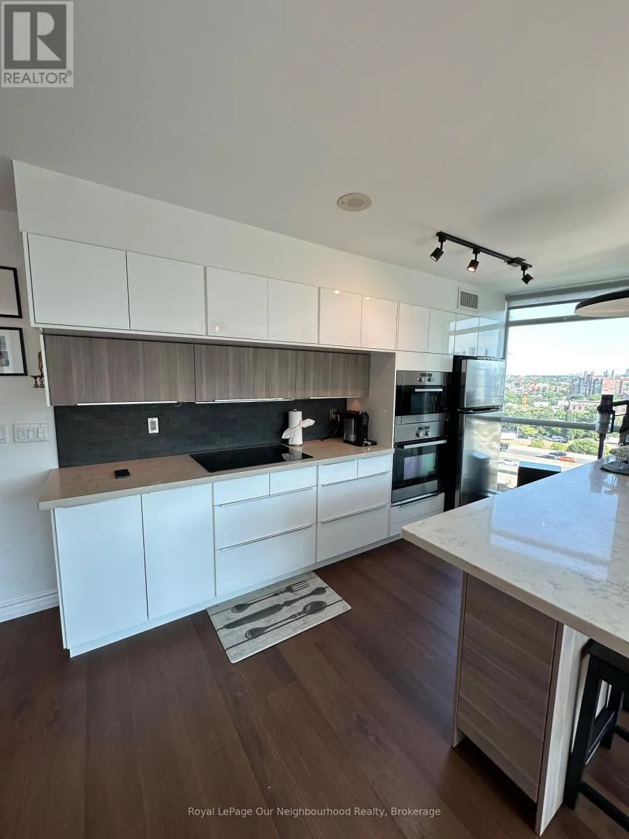 Cross Streets: Bathurst/Lakeshore. ** Directions: Use google maps. Exceptionally bright & very spacious 2Bdrm/2Bth corner unit. Imagine entertaining in the renovated chef's kitchen With open concept layout, views of the CN Tower, skyline, and out over Fort York, as well as a partial view of the lake/Billy Bishop airport! Plenty of storage. Engineered hardwood floors in the bedrooms, luxury vinyl plank (newer) in the living/dining/kitchen spaces,, no carpeting. Updated bathrooms, 2nd bathroom with stand up shower. Popcorn ceilings have been removed for a more modern look. Walk out to the private balcony with North East views of the city skyline and Fort York. Custom 2 Layer Solar Shades And Blackout Shades For Privacy. 2nd Bdrm is spacious, perfect for use as an office or bedroom with a closet and floor to ceiling windows. Thousands Spent On Renovations, living space floors and kitchen backsplash recently done, as well as newer, large size washer and dryer. Be part of this central but peaceful Fort York Neighborhood! Close To Parks, Trails, Grocery shopping And Entertainment like the Bentway. Includes 1 Parking Spot. Pictures are from previous listing. (id:27476)