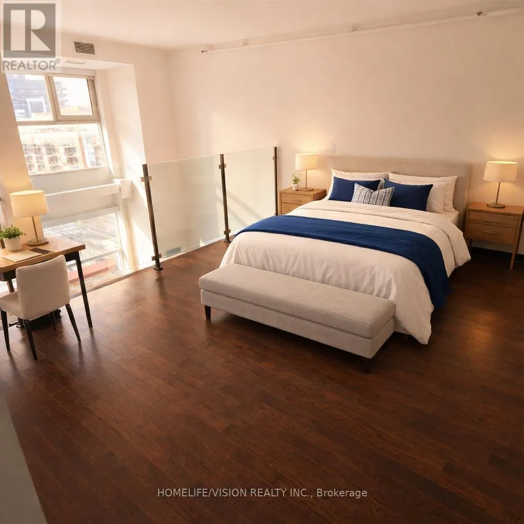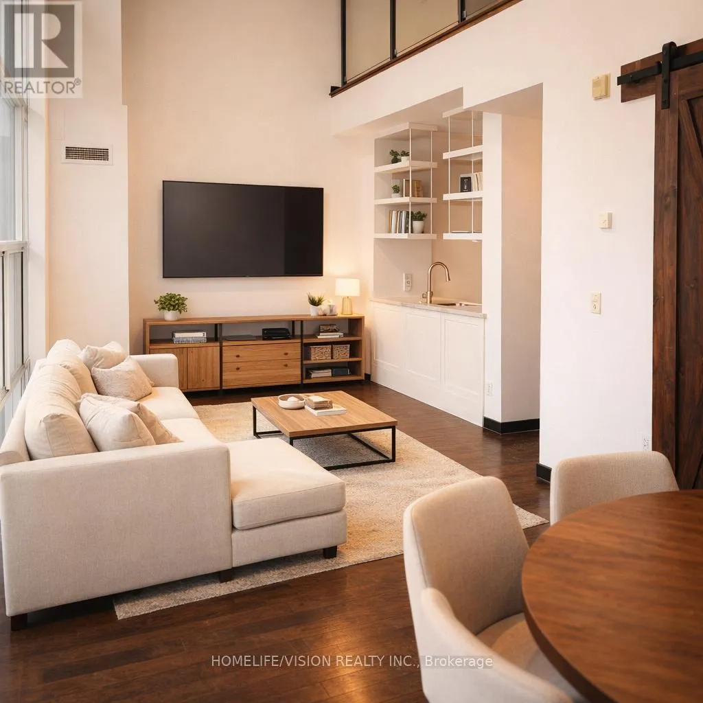 King Street West / Strachan Experience the Height of Urban Living in This Stunning Penthouse at the Coveted Massey Harris Lofts. This Rare Two-Storey Hard Loft Features Soaring 18-foot Ceilings and Floor-to-Ceiling Windows That Flood The Space With Natural Light. Nestled In The Heart Of The City, This Penthouse Offers A Massive West Facing Private Terrace Overlooking The Park, Hardwood Floors With Radiant Heating, Sliding Barn Doors, Custom Hardwood Staircase, 1 Bed + Den, two Full Baths and Storage Locker. The Den Can Be Used for Guests/Office/Nursery. Spacious Master With Separate Bathtub And Glass Shower. Parking is Located at 100 Strachan Ave. Some Images Virtually Staged. (id:27476)