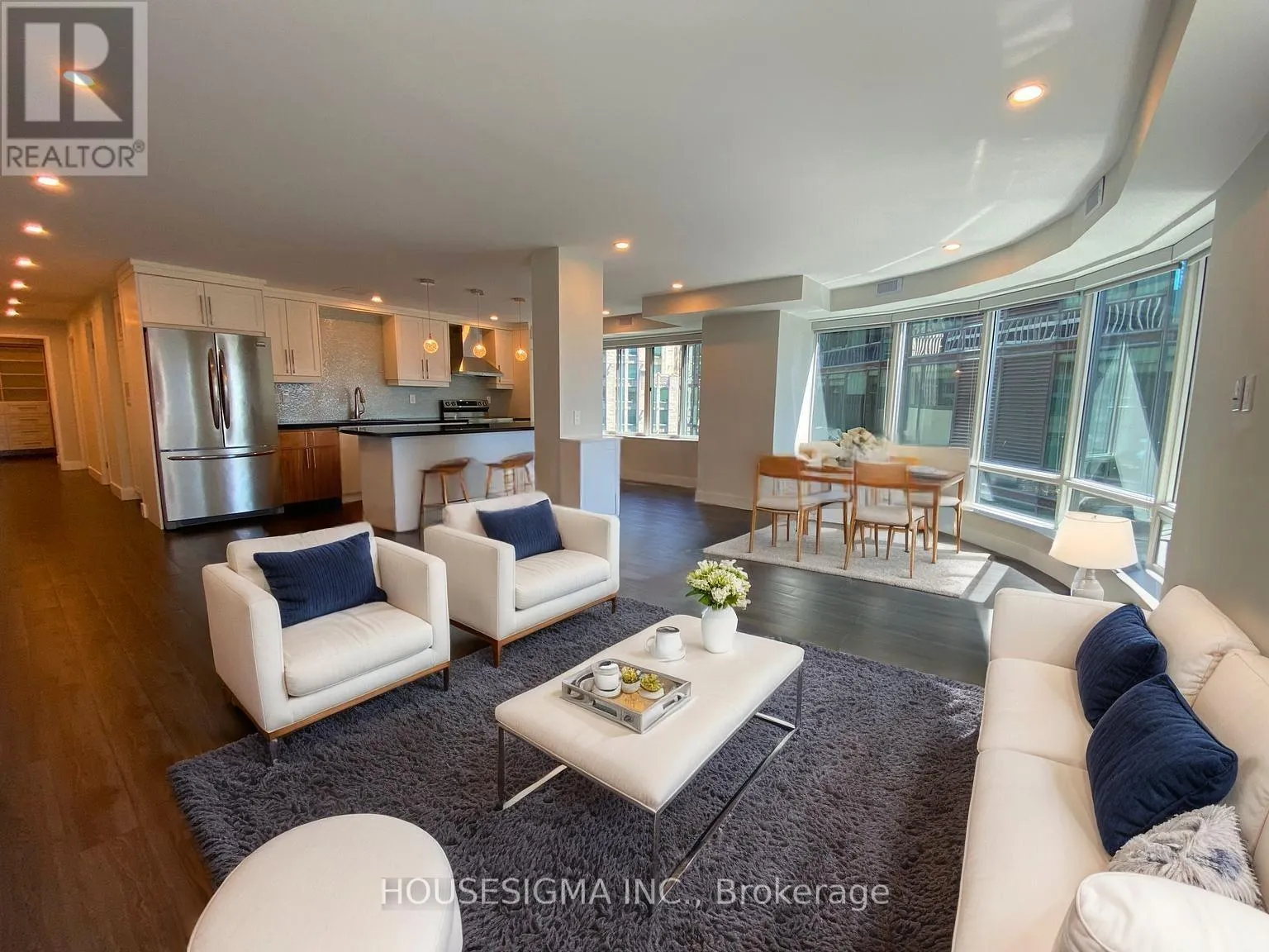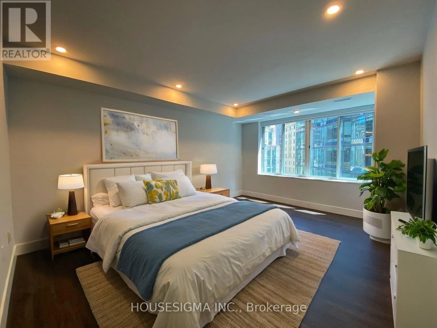University Ave and Wellington St W Spacious, fully renovated 3-bedroom, 2-bath corner suite offering approximately 1,400 sq ft of thoughtfully designed living space, complete with parking, an oversized locker, and two bike storage mounts at the parking spot. Exceptionally well-managed building with all utilities included in the condo fees.This sun-filled suite features a bright southwest exposure and expansive wrap-around windows throughout the open-concept living and dining area. Refined finishes include smooth ceilings, an abundance of pot lights, laminate flooring, and marble tile in the foyer and second bath. Solar privacy roller blinds enhance the living and dining areas, while blackout blinds provide comfort and privacy in all bedrooms.The contemporary kitchen is both stylish and functional, showcasing quartz countertops, a large island with breakfast bar, undermount sink with pull-down spray faucet, glass tile backsplash, under-cabinet lighting, and designer pendant lights-perfect for entertaining and everyday living.An impressive amount of custom built-in storage sets this suite apart, including closet organizers in every bedroom, a foyer bench, and additional hallway storage solutions.The spacious primary retreat features a luxury 4-piece ensuite with double sinks, quartz counters, ceramic flooring, and a spa-inspired shower with rain showerhead and separate hand sprayer.Ideally located in the Financial District, just steps to the PATH, Union Station, Eaton Centre, Scotiabank Arena, Rogers Centre, world-class dining, theatres, and everything downtown Toronto has to offer. A rare 3-bedroom offering, also highly attractive to investors - previously leased in just one day at excellent rental rates, reflecting strong demand in this prime location. (id:27476)