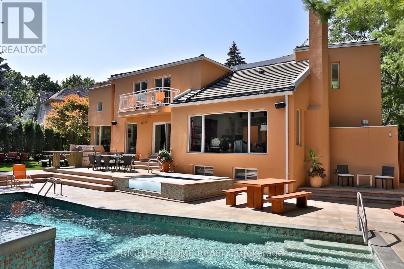 Cross Streets: Islington Ave. & Rathburn Rd. ** Directions: West of Islington Ave. & North of Rathburn Rd. If You're Searching For A Cookie-Cutter Home With No Personality, This Is Not It. But If You Want A Truly One-Of-A-Kind Architectural Statement In One Of The Most Sought-After Pockets Of Etobicoke, Welcome Home! Privately Nestled On A Quiet Cul-De-Sac In Thorncrest Village, This Extraordinary 5+1 Bedroom Residence Is An Architectural Masterpiece Designed By Renowned Architect Rocco Maragna. Originally Built In 1992 And Later Re-Imagined Through An Extensive Renovation And Expansion Personally Supervised By The Architect, The Home Blends The Warmth And Elegance Of Spanish-Revival Architecture With Bold, Avant-Garde, Mid-Century Modern Design. Offering Over 7,500 Square Feet Of Interior Living Space, The Home Features Soaring 17-Foot Ceilings, Expansive Windows And An Open-Concept Layout Filled With Natural Light. Premium Materials Imported From Europe Elevate Every Detail, Including Italian Granite Flooring, Italian Black Lacquer Interior Doors, European Vanities, Porcelain Bathroom Finishes, And A Breathtaking Murano Glass Chandelier Anchoring The Dining Room.The Resort-Style Backyard Is Nothing Short Of Spectacular. Fully Fenced And Professionally Landscaped, It Features An Award-Winning Inground Pool And Spa, Outdoor Kitchen With Two Built-In Lynx Barbecues, And Multiple Entertaining Areas Surrounded By Mature Trees And More Than Ten Varieties Of Rare Japanese Specimens, Including A Prized Shishigashira Maple. Outdoor Stone Imported From Arizona Completes The Setting. Additional Highlights Include A Private Elevator Serving All Three Levels, Two Staircases, A Finished Basement With Above-Grade Windows, Integrated Home Audio, Heated Front Stone Patio, Generator, Irrigation System, Circular Driveway With Parking For Up To Ten Cars, And An Attached Two-Car Garage. Minutes From Transit, Parks, Shops, Schools, Golf Clubs, And Less Than Fifteen Minutes From Pearson Airport, This Is A Rare Offering For Those Who Value Architectural Distinction Without Compromise. (id:27476)