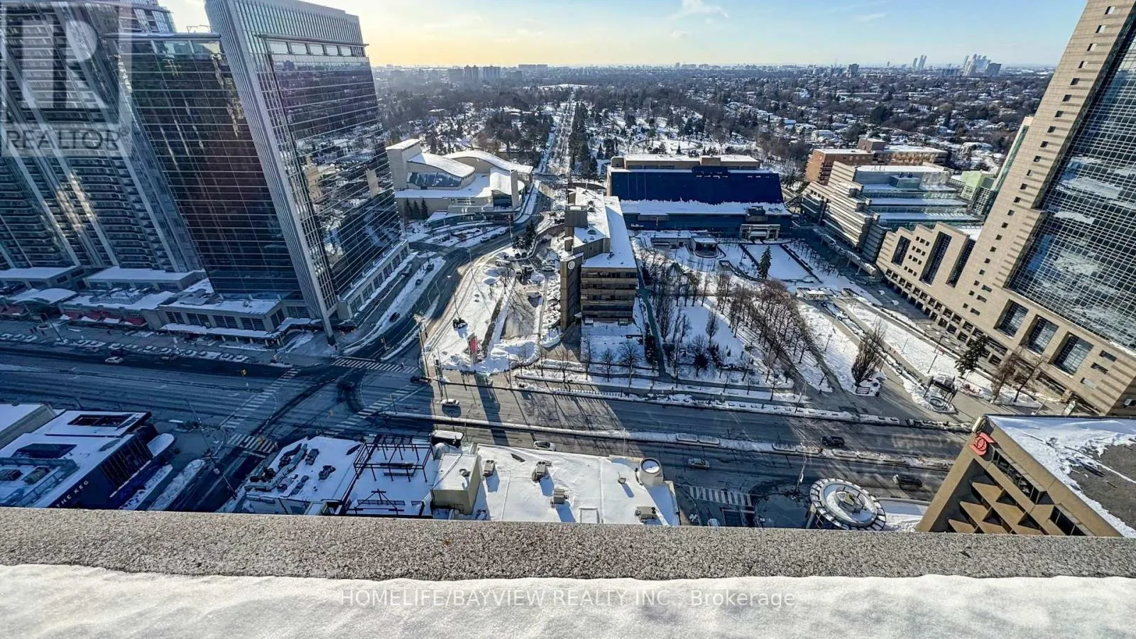 Yonge & Hillcrest Prime North York Location. Rare opportunity for a bright, spacious, one of a kind unit in a luxury Monarch building. High-floor, 9 foot ceilings, suite features a unique layout with unobstructed skyline views overlooking Mel Lastman Square and the skating rink. Enjoy sunny floor-to-ceiling windows, and a large wraparound terrace with walk-outs from both the living room and bedroom. Freshly painted throughout and offers upgraded granite countertops, laminate flooring, brand-new never-used washer and dryer, and all new window blinds. Exceptional resort-style amenities include 24-hour concierge, indoor pool, hot tub, fully equipped gym, movie theatre, party room, car wash, internet cafe, and garden BBQ area. Unbeatable location With a walking Score of 100, just a 2-minute walk to North York Subway Station, Empress Walk, restaurants, shops, supermarkets, library, pharmacy, The Keg, Cineplex, and with quick access to Highway 401. Some photos have been virtually staged (id:27476)