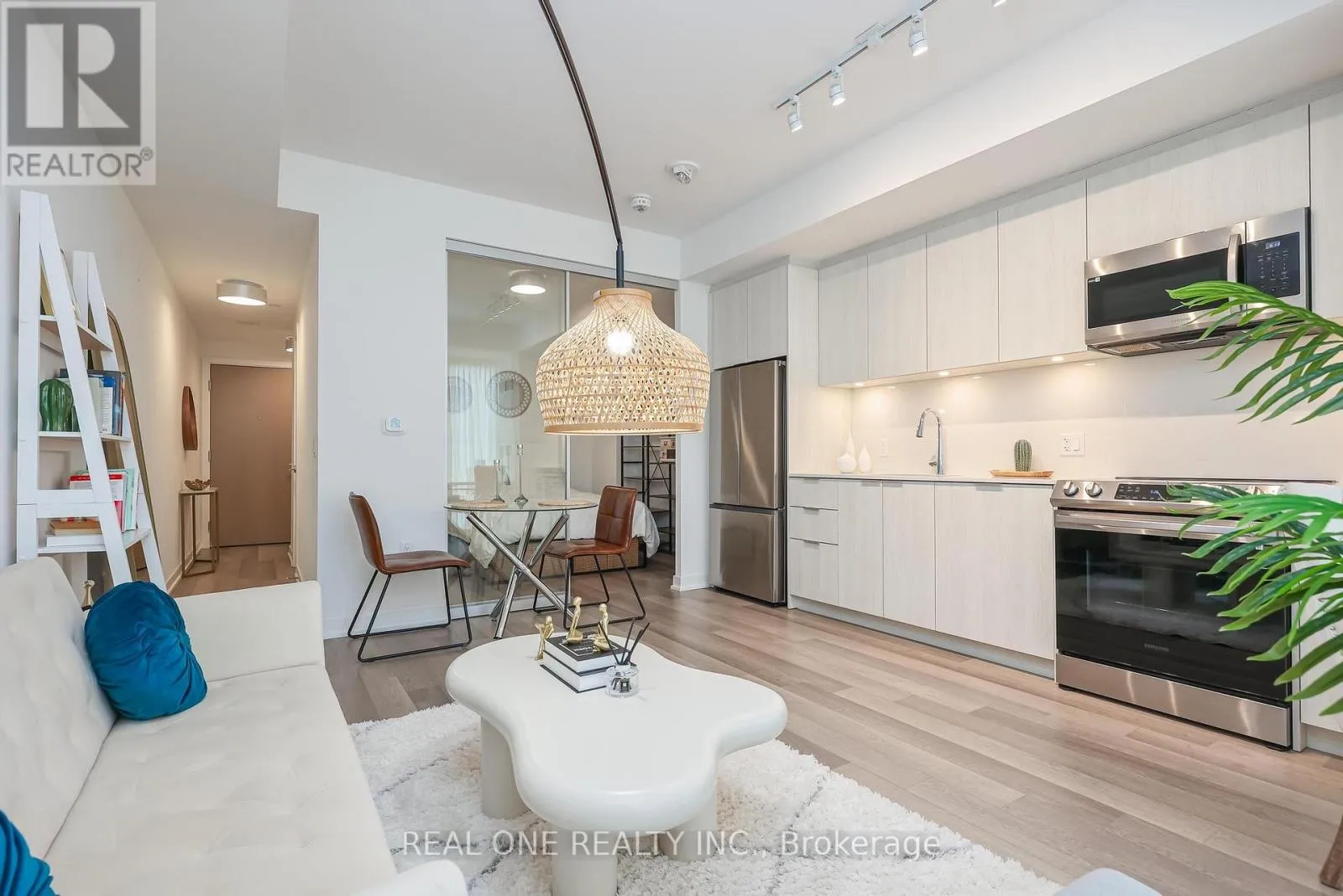 King/Blue Jays 2 Years Old Luxury 1B1B Corner Unit. The suite features 9-foot ceilings, floor-to-ceilingwindows, and an open-concept layout. The living and dining areas are spacious, and the kitchen is equipped withstainless steel appliances, All Wide-Plank Laminate Throughout, Contemporary Slab Door Kitchen Cabinets W/ Stone Countertop, and Ample cabinet space. Extremely convenient transportation with easy access to the Financial District,the University of Toronto, and the CN Tower. Light-filled 3rd floor with a state-of-the-art fitness centre and relaxing yoga studio. Unique amenities include bike lockers, parcel pick-up service, meeting rooms,and communal workspaces. 42nd floor features stylish lounges for socializing and private dining room with afully equipped catering kitchen. Indoor and outdoor spaces ideal for both formaldinners and casual gatherings. (id:27476)
