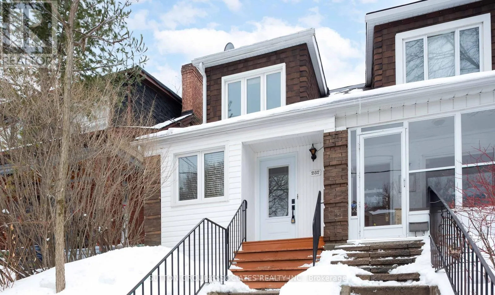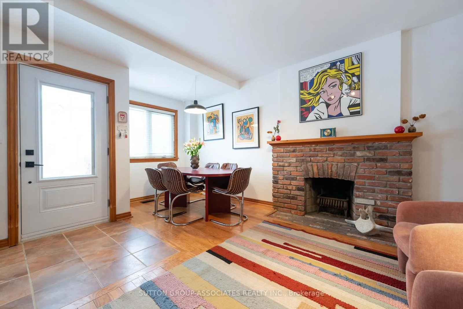Benson Ave & Winona Drive This charming two-bedroom home in prime Wychwood is an exceptional condo alternative - ideal for buyers seeking the affordability of a condo price point while enjoying the freedom of your own front door, private outdoor space, and the everyday convenience of ground-floor living, especially for dog owners. The bright open-concept main floor features hardwood floors and a cozy living and dining space anchored by a wood-burning fireplace. The modern eat-in kitchen with terrazzo counters leads to a private deck and backyard - a rare extension of living space ideal for entertaining, relaxing outdoors, or letting pets out with ease. Upstairs, two well-proportioned bedrooms with built-in storage and large windows are complemented by a stylish four-piece bathroom. The finished lower level adds flexible recreation space, laundry, and additional storage. Located in the heart of Wychwood, just moments to Wychwood Barns, the popular Saturday Farmers' Market, neighborhood parks, local cafés, and the vibrant St. Clair West corridor - offering a strong sense of community and walkable city living. (id:27476)