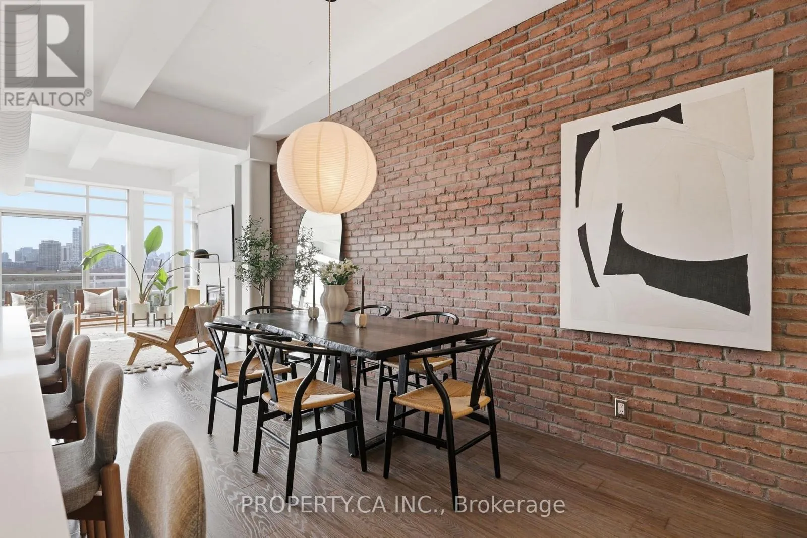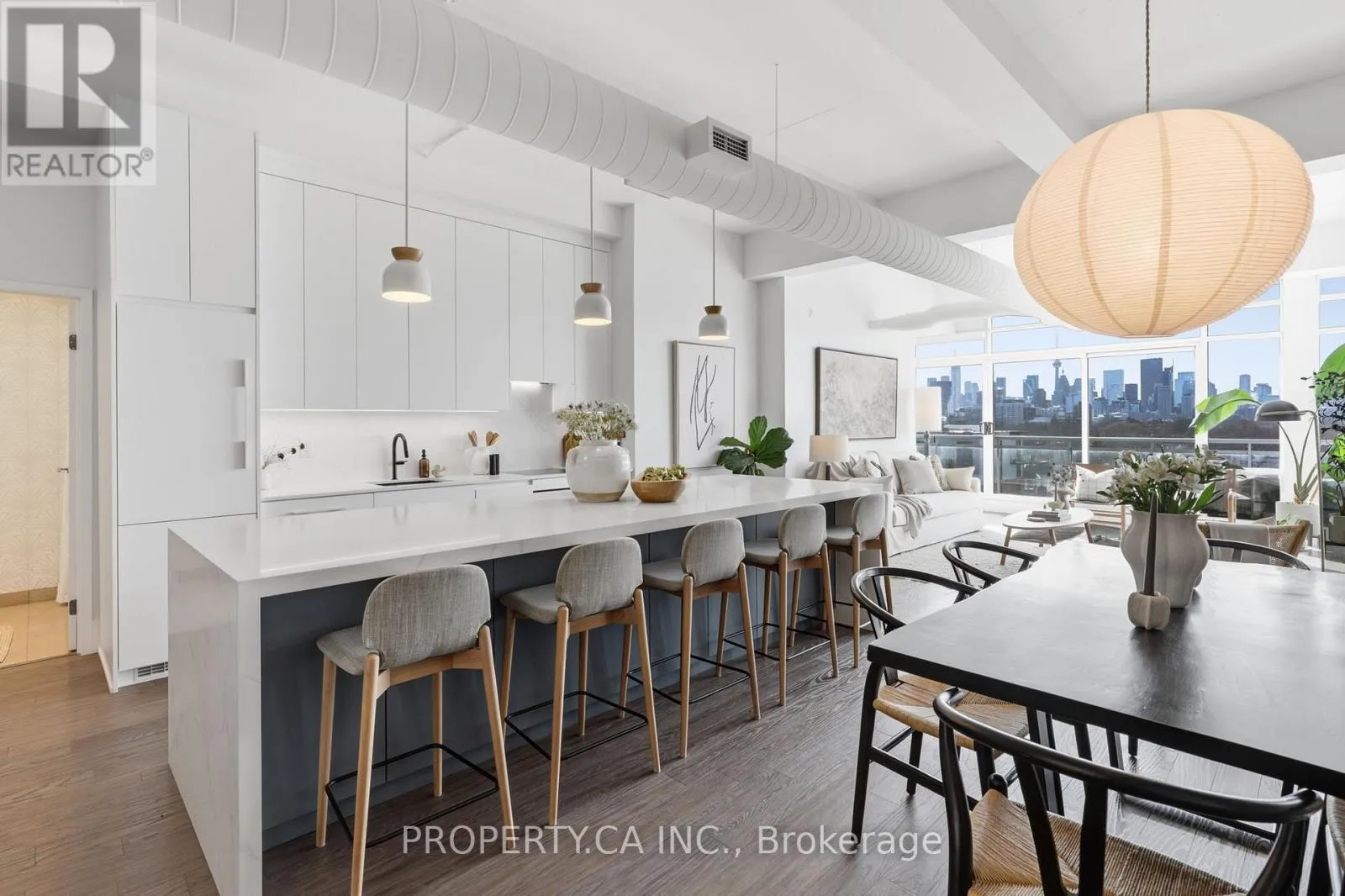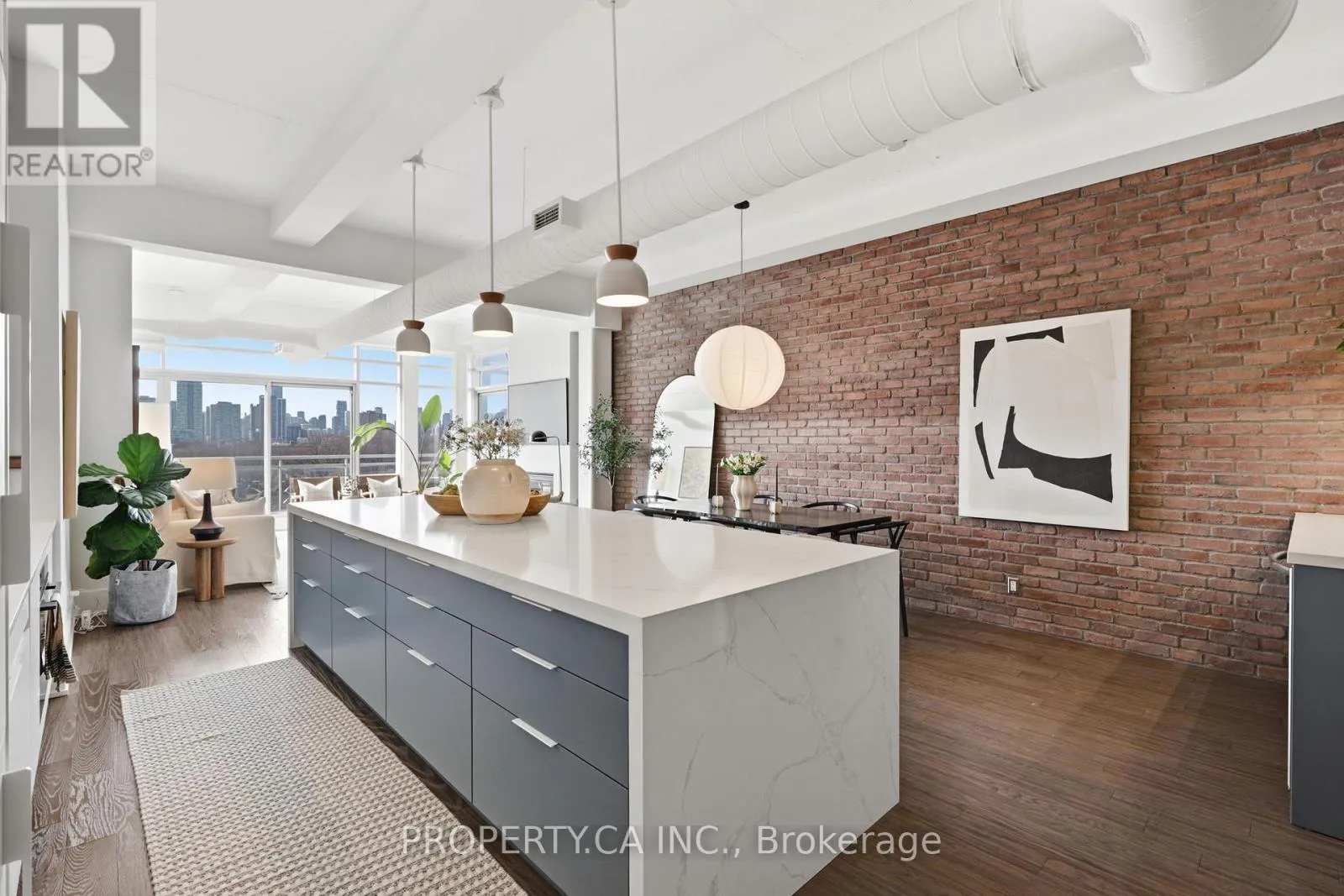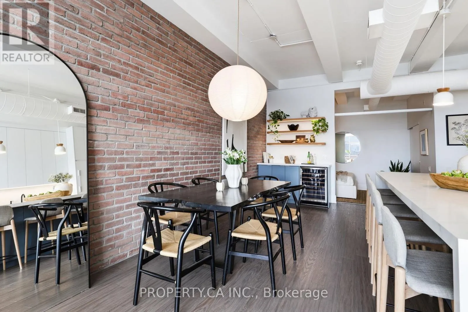 QUEEN ST E & CARLAW AVE Positioned atop the coveted Garment Factory Lofts in Toronto's Leslieville neighbourhood, this stunning penthouse corner loft delivers an exceptional blend of scale, light, and authentic urban character. Spanning 1,286 square feet, the open-concept layout blends classic loft details including an eye catching brick feature wall, exposed ductwork, and soaring 10-foot ceilings with striking contemporary design. Floor-to-ceiling windows with custom roller blinds frame sweeping, unblocked west-facing skyline views opening to a sun-drenched walk-out balcony. The custom-designed and bespoke fabricated kitchen features premium integrated Fisher & Paykel appliances flowing seamlessly into a dining space highlighted by the bespoke dry bar with wine fridge, ideal for entertaining. A gas fireplace anchors the living area, while two generously sized bedrooms and two full 4-piece baths offer comfort and privacy. The primary retreat boasts ample storage with walk-through closets leading to a stylish ensuite. Complete with one titled parking space and steps to the Queen Street streetcar, this is elevated Leslieville living at its finest. (id:27476)