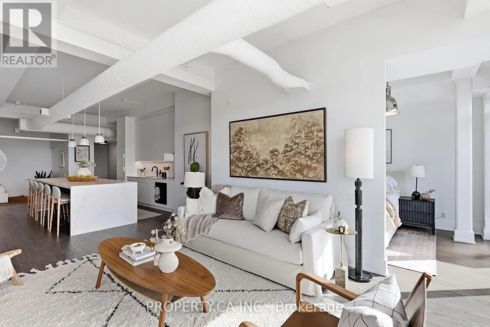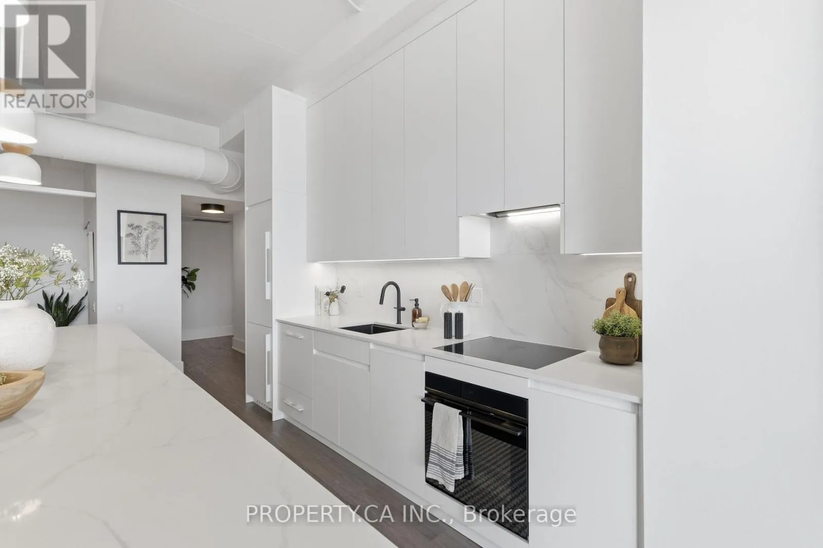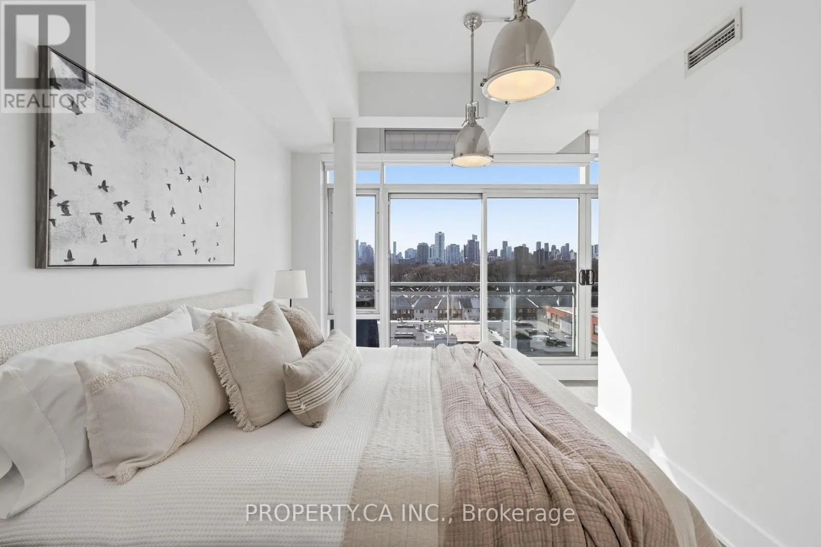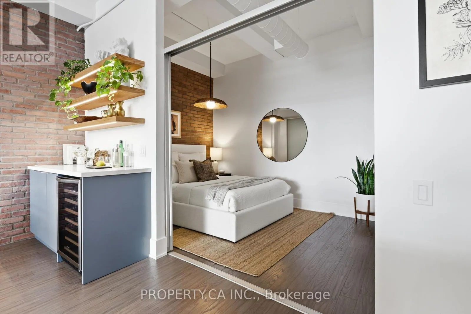 QUEEN ST E & CARLAW AVE Positioned atop the coveted Garment Factory Lofts in Toronto's Leslieville neighbourhood, this stunning penthouse corner loft delivers an exceptional blend of scale, light, and authentic urban character. Spanning 1,286 square feet, the open-concept layout blends classic loft details including an eye catching brick feature wall, exposed ductwork, and soaring 10-foot ceilings with striking contemporary design. Floor-to-ceiling windows with custom roller blinds frame sweeping, unblocked west-facing skyline views opening to a sun-drenched walk-out balcony. The custom-designed and bespoke fabricated kitchen features premium integrated Fisher & Paykel appliances flowing seamlessly into a dining space highlighted by the bespoke dry bar with wine fridge, ideal for entertaining. A gas fireplace anchors the living area, while two generously sized bedrooms and two full 4-piece baths offer comfort and privacy. The primary retreat boasts ample storage with walk-through closets leading to a stylish ensuite. Complete with one titled parking space and steps to the Queen Street streetcar, this is elevated Leslieville living at its finest. (id:27476)