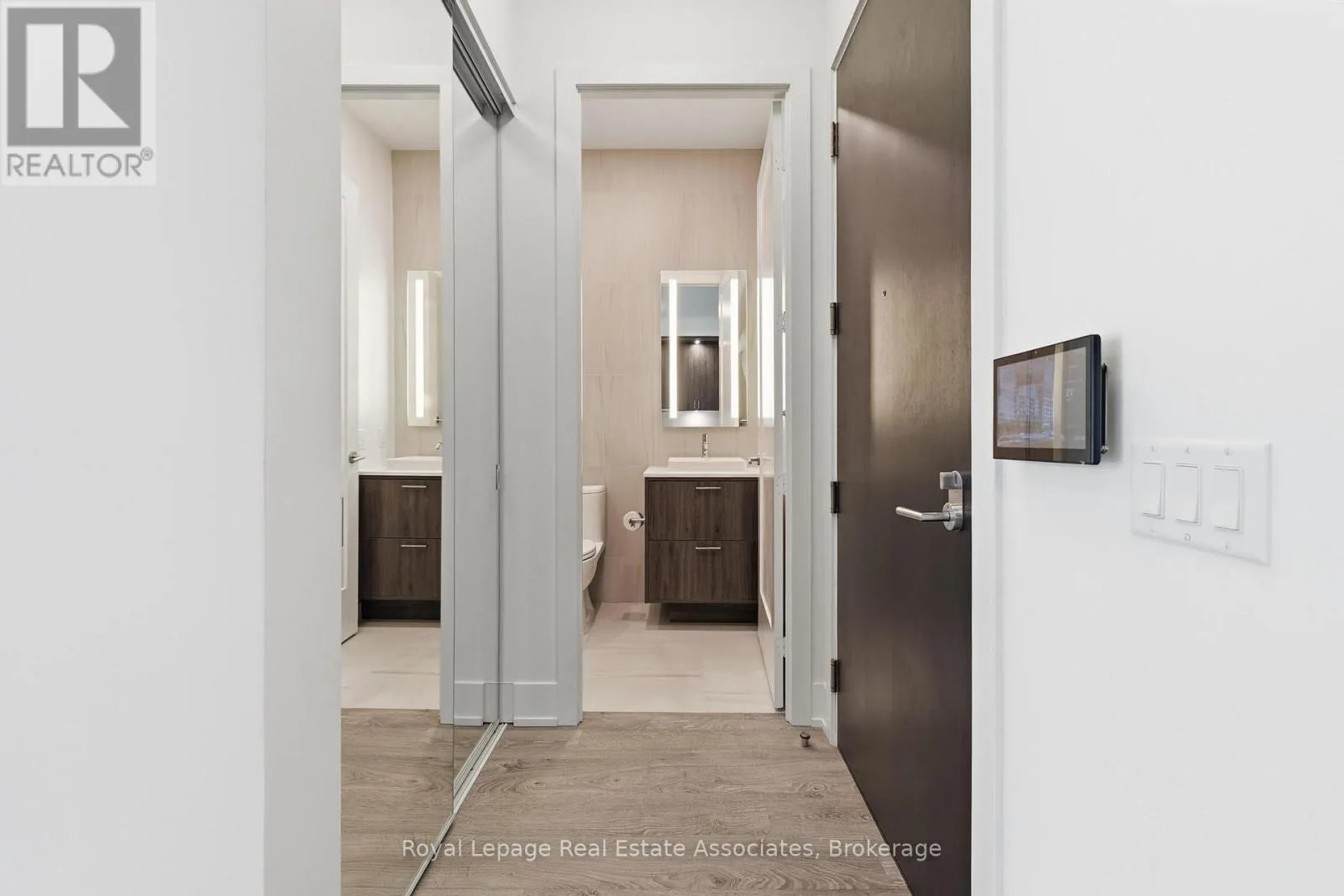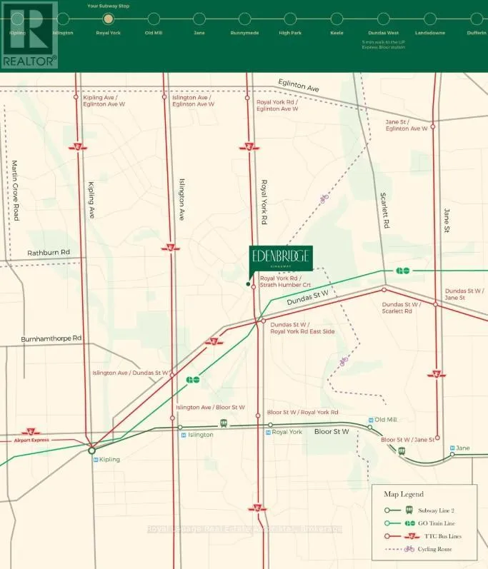 Royal York / Dundas St W **WITH PARKING & LOCKER **Welcome to Edenbridge on the Kingsway, where refined design meets boutique-style living in the prestigious Edenbridge-Humber Valley community. This brand-new 2-bedroom, 2-bathroom suite offers approximately 818 sq. ft. of thoughtfully designed interior space, featuring a bright, carpet-free layout and contemporary finishes throughout. The modern kitchen is equipped with built-in stainless steel appliances and sleek cabinetry, flowing seamlessly into the combined living and dining area. A walk-out from the living space leads to a private terrace with east exposure, extending the living area outdoors and creating an inviting setting for relaxation or entertaining. The primary bedroom includes a walk-in closet and private 3-piece ensuite, while the second bedroom features its own closet and easy access to a separate 4-piece bathroom. In-suite laundry is conveniently integrated into the layout. One exclusive underground parking space and an exclusive locker are included. Residents enjoy access to premium amenities including an indoor pool, fitness centre, sauna, rooftop deck and garden, guest suites, and concierge service. Ideally located near parks, golf courses, transit, and the shops and dining of The Kingsway, this residence offers elevated urban living in one of Etobicoke's most desirable communities. (id:27476)