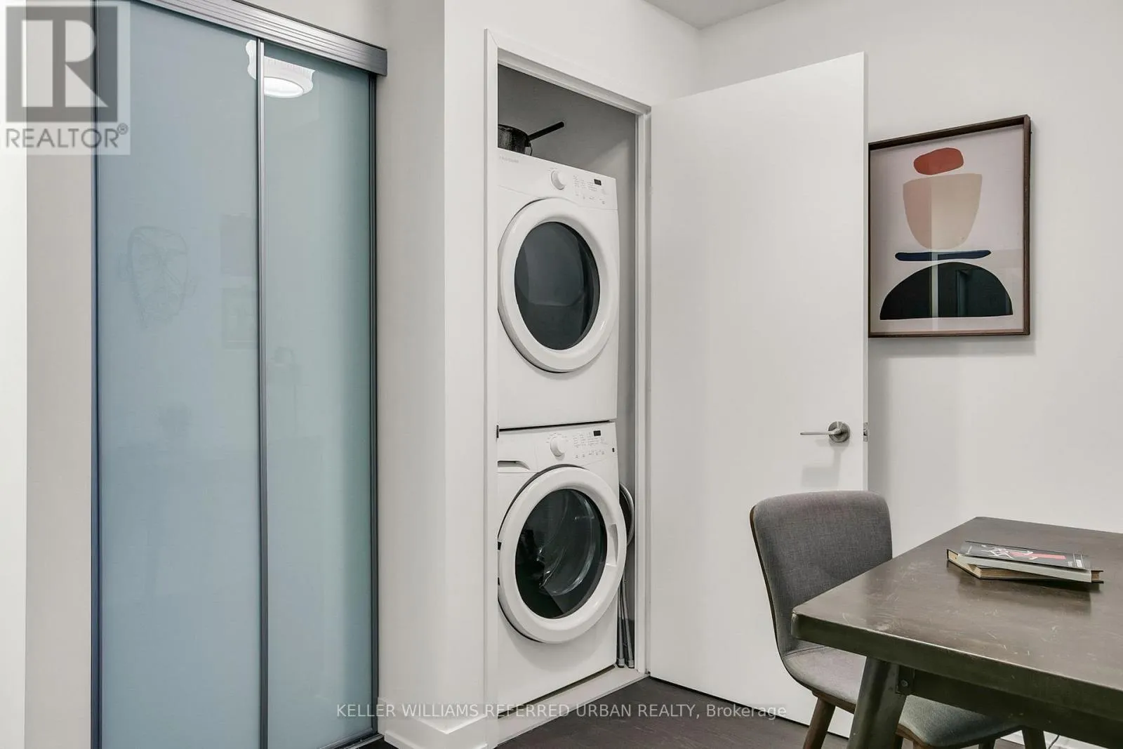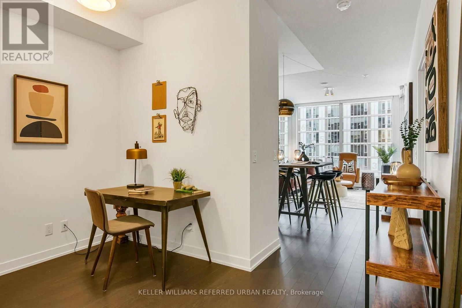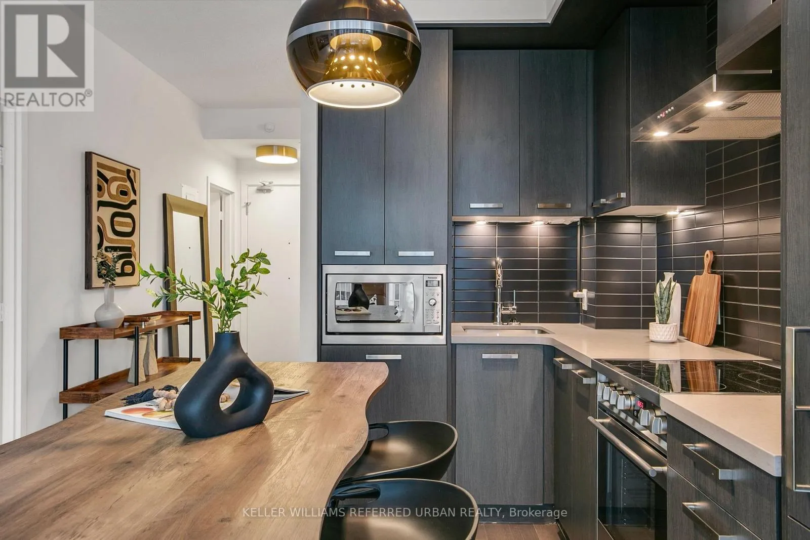 Front St E & Cherry St Welcome to 455 Front St E, a modern condominium located in Toronto's east downtown Canary District. This bright and functional 1+den, 2 full bath suite features an open-concept layout with contemporary finishes throughout. The combined living and dining area offers excellent natural light and flows seamlessly into the modern kitchen, ideal for both everyday living and entertaining. The primary bedroom includes a private ensuite bathroom and walk in closet, while the den provides flexible space for a home office or guest area. Extra perks of this unit are the large parking spot and unlimited internet included in the maintenance fees. Residents enjoy access to a full range of building amenities, including a fully equipped gym, games room, party room, rooftop terrace with BBQs, and 24-hour concierge. Conveniently located steps to Corktown Common, the Distillery District, TTC transit, A brand-new YMCA, shops, cafes, and everyday essentials such as a pharmacy, grocery store, dentist, and vet, the location doesn't get any better. Enjoy a quieter but well-equipped residential community with quick access to the downtown core and major commuter routes. A well-appointed suite in a connected and growing community, ideal for professionals, investors, or first-time buyers. (id:27476)