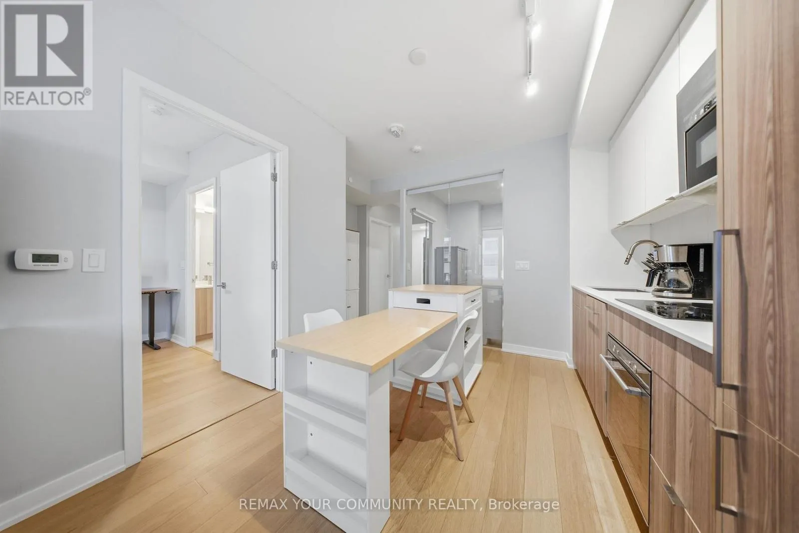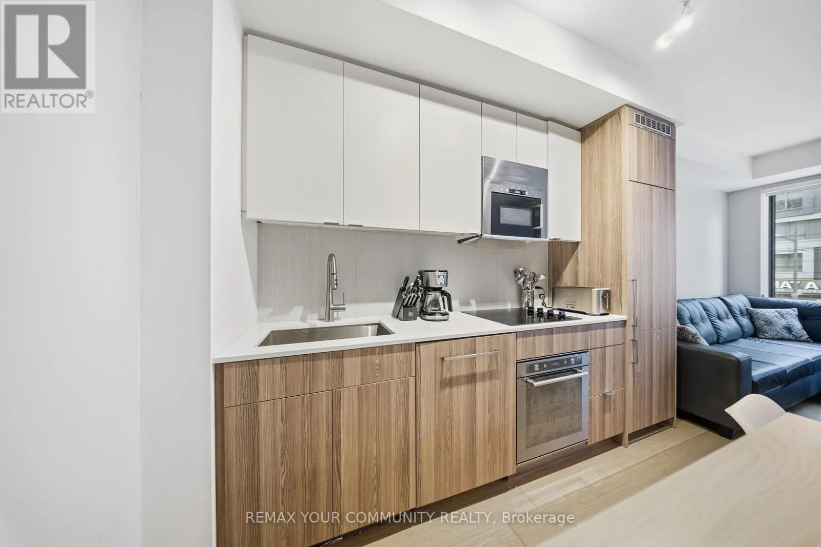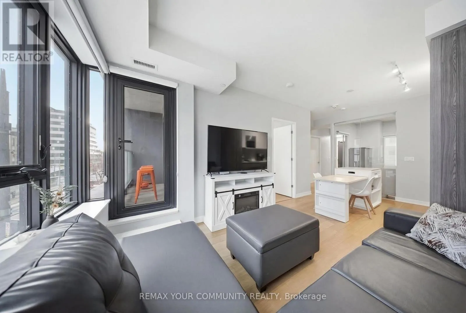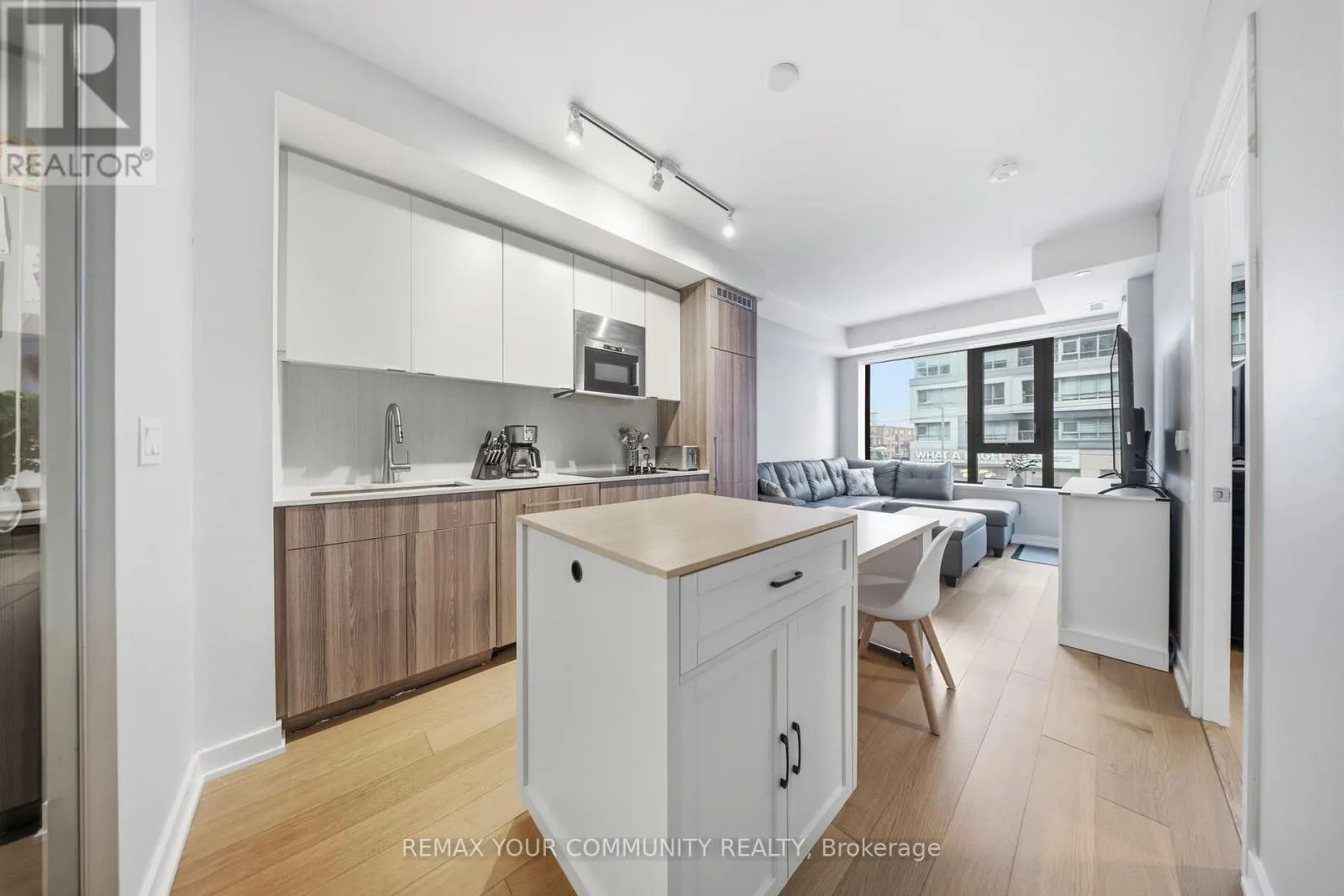 St. Clair & Oakwood Welcome to Eight Forty in the heart of St. Clair West - where vibrant city living meets neighbourhood charm. This beautifully appointed 2-bedroom, 2-bath suite features an ideal split-bedroom layout, soaring 9-ft ceilings, and a bright south-facing exposure that fills the space with natural light all day long. Thoughtfully upgraded, the unit showcases engineered flooring throughout and a sleek Euro-contemporary kitchen with striking two-tone cabinetry, quartz countertops, and a custom-added pantry for enhanced storage and functionality. Every detail has been curated for both style and everyday comfort. The second bedroom offers exceptional versatility with its modern glass wall and roll-down blinds - perfect as a private home office, guest room, or stylish den. This boutique, low-rise residence offers an intimate, community-focused feel while placing you steps from the very best of St. Clair West Village -acclaimed restaurants, cozy cafés, local boutiques, and lively nightlife. With a streetcar stop at your doorstep and quick subway access, commuting downtown is seamless. ***Wifi internet is included in the maintenance fees, adding even more value and convenience.*** (id:27476)