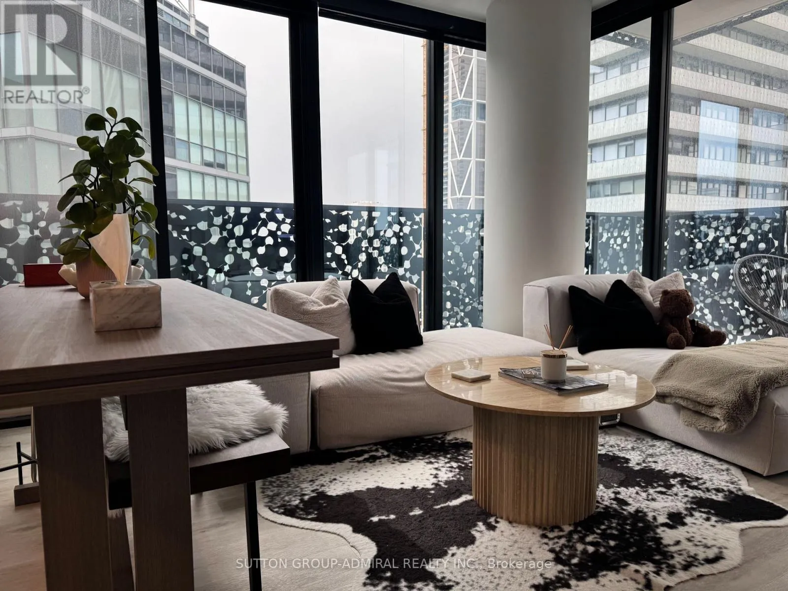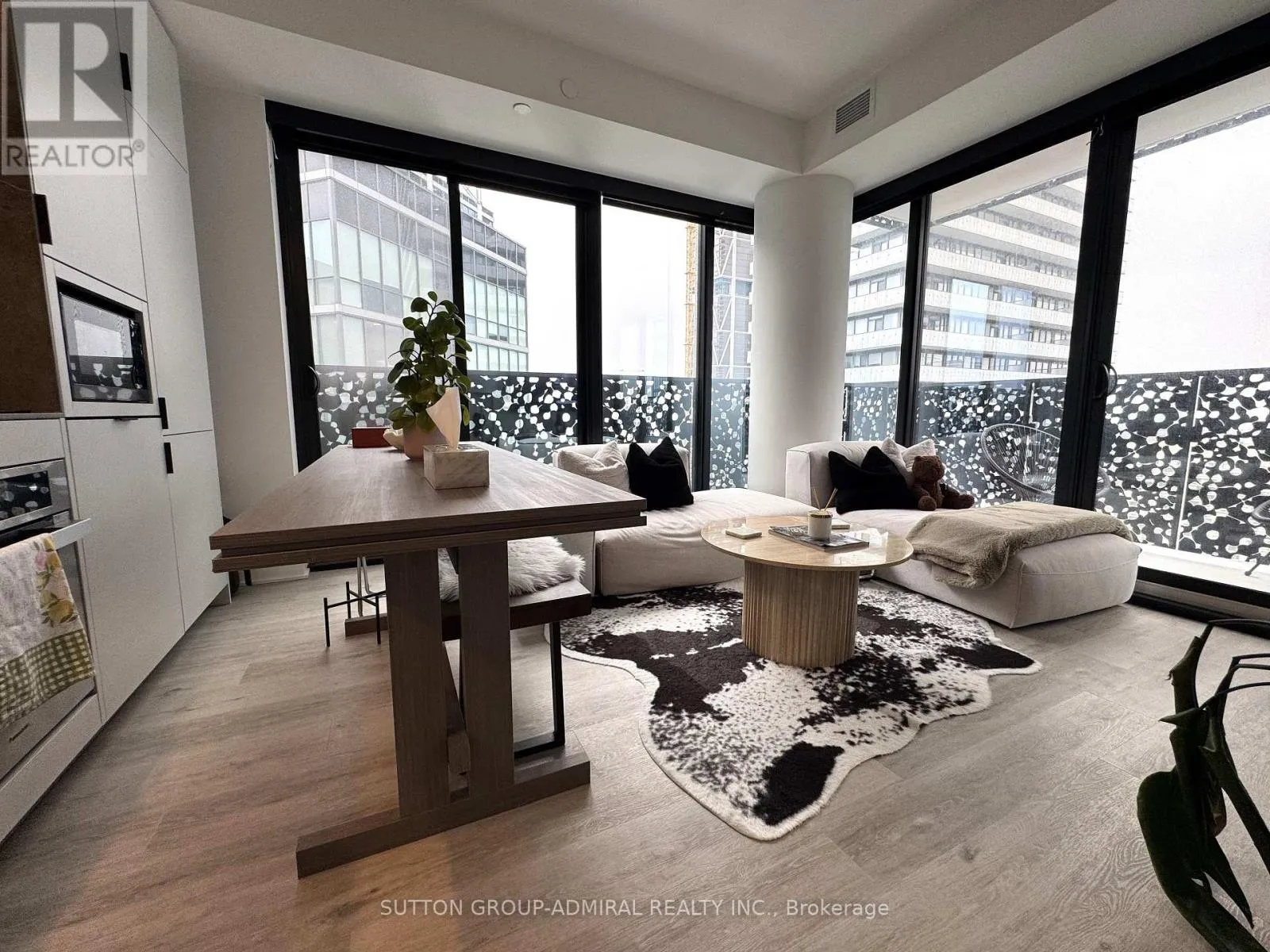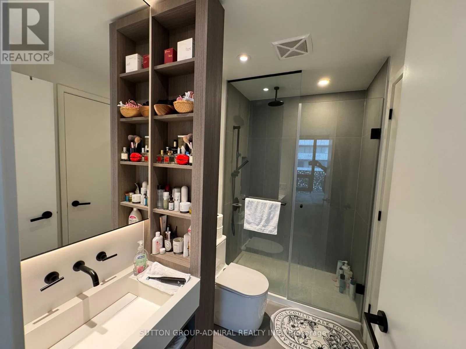 CHARLES ST EAST OF CHURCH WEST OF YONGE ST Stunning one plus den condo in Prestigious Yorkville at 55 Charles Residence. Steps to Yonge & Yorkville to enjoy the luxury shopping only minutes away. This well-designed suite with partly lakeview features 9' smooth finish ceilings, floor to ceiling windows, motorized blinds, wide plank laminate flooring. Modern and open concept, spacious layout and functional with beautiful chef' kitchen with high quality soft-close Italian cabinets, porcelain slab counter and backsplash. Upgraded to high end built-in appliances, backsplash, and innovative movable table. Primary bedroom with large windows and blackout motorized blinds. The signature bathroom has two doors easy for use and features functional shelving and drawers, backlit mirror and soft-close drawers. Spa-inspired rain shower head with separate handheld extension, frameless glass shower. The den has window and sliding door, perfect for guests or an office. Amenities including a large fitness studio, co-work/party rooms, and a serene outdoor lounge with BBQs and fire pits. The top floor has C-Lounge. (id:27476)