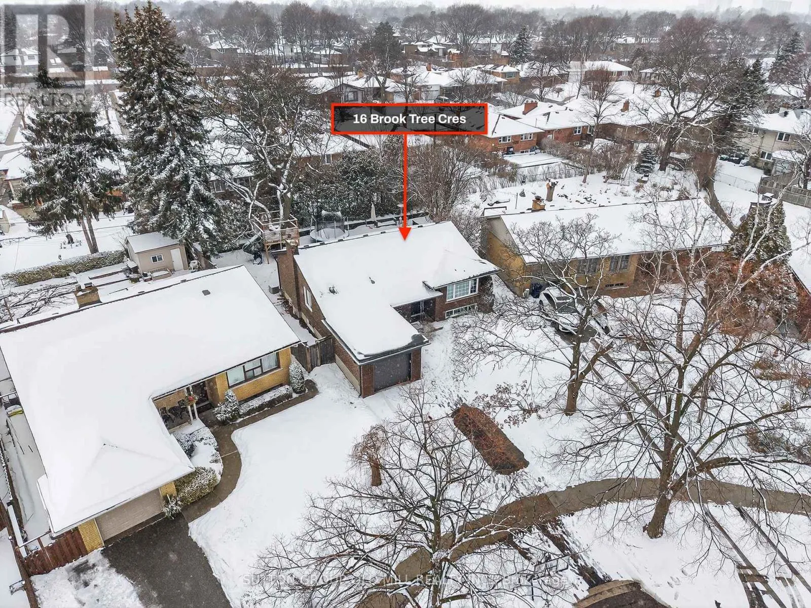 Islington / The Westway Welcome to 16 Brook Tree Crescent! Completely Renovated from top to bottom, features 3 + 1 Bedrooms and Rare 3 full Bathrooms. Everything is Updated: Renovated Kitchen, Bathrooms (including Steam shower), All Appliances, Flooring, Front Entrance, Newer Windows, Furnace (2024) & Water heater (2022), Roof (2025), Eavestroughs/Downspouts/Siding (2022), Electric panel (2020), Window covers (2019), Pot lights, Garage epoxy floor (2025), Waterproofing and new Sump pump (2019), new Paint, and the list goes on. Highly sought-after Location: Pie-shaped Lot on a Quiet, Family-friendly Crescent; with easy access to Major Highways 401, 427, 400, QEW, and Eglinton LRT; Close to highly rated Schools, Parks, and many local Amenities. The large private Backyard is ready to entertain Children and Grown-ups. Just Move In & Enjoy! (id:27476)