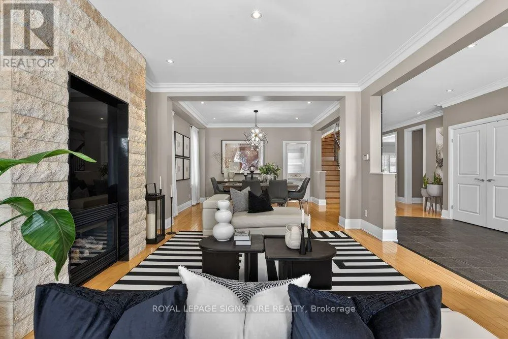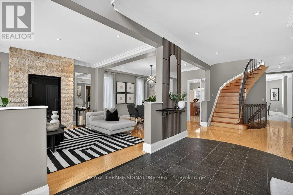 St. Clair Ave. E. and Kennedy Discover elevated living at 27 Cleta Dr with over 5,000 SQ.FT of living space, this sophisticated 4+2 bed, 5-bath home is set on a premium 54x183 ft lot with a double garage and six-car driveway! A grand double-door entry unveils a dramatic foyer with soaring ceiling. The open-concept living and formal dining areas exude timeless elegance, with rich hardwood floors, crown moulding, and expansive windows that bathe the home in natural light. The living room features a striking gas fireplace with sleek stone and granite feature, creating a warm yet polished focal point! The kitchen is stylish and functional, complete with stainless steel appliances, granite countertops, a large centre island with seating and walkout to the patio ideal for indoor-outdoor living. The bright and massive breakfast area is surrounded by windows, offers the perfect place to start your day, flowing seamlessly into the generous family room, a warm and inviting space for everyday living with custom stone feature walls. Main floor powder room, access to the garage and a main floor laundry room add convenience with ample storage. A spiral staircase with designer iron railing leads to the second level, where a loft-style mezzanine overlooks the foyer below. The primary suite is a serene retreat, complete with floor-to-ceiling windows, a walk-in closet, and a spa-inspired 7-piece ensuite featuring gorgeous tiles, dual vanities, a glass shower, and a deep jacuzzi tub. A generously sized second bedroom offers its own private 4-piece ensuite, while two additional grand bedrooms with large closets and a well-appointed bath complete the upper level. The finished basement is perfect for rental income or additional living space with a large recreation area, full kitchen, walk-up access to the backyard, two additional bedrooms, and a 3-piece bath! Outdoors, the private backyard offers a tranquil escape, with a large interlocked area and expansive greenery that is hard to find in the City! (id:27476)
