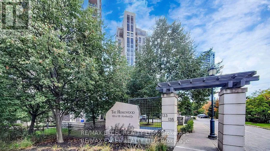 DVP & Wynford Dr Welcome to Suite 1204 at The Rosewood-a chic 1-bedroom + den retreat nestled in one of Toronto's most sought-after communities. This beautifully designed unit features a spacious, open-concept design, imbued with natural light from its south exposure and unobstructed views, creating an elevated everyday living experience. The sleek kitchen is outfitted with stainless steel appliances, granite countertops, and generous cabinetry-ideal for everything from quick bites to gourmet meals. The combined living and dining area offers a welcoming space to entertain or unwind, while the private balcony provides a serene escape with picturesque vistas. The primary bedroom includes a roomy closet and direct access to the balcony, and the flexible den is perfect for a home office, creative studio, or guest room. Just moments from the Shops at Don Mills and with seamless access to the Don Valley Parkway and TTC, this condo delivers the perfect balance of peaceful living and urban convenience. (id:27476)