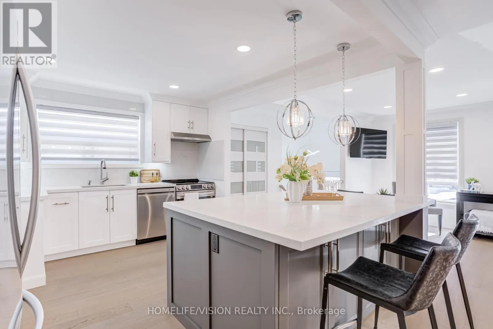 Sheppard and Victoria Park Av Welcome to this beautifully renovated semi-detached home in the highly sought-after Pleasant View neighbourhood. Bright and spacious, this home offers the perfect blend of modern comfort and functionality - ideal for families and investors alike. The main floor features an inviting open-concept layout with large windows that fill the space with natural light. The modern kitchen showcases a large quartz island with matching backsplash, stainless steel appliances, and fully upgraded cabinetry with high-quality finishes. Engineered hardwood flooring flows seamlessly throughout the main level. The finished basement with separate entrance offers excellent income potential or extended family living options. Roof was replaced in 2021. (id:27476)