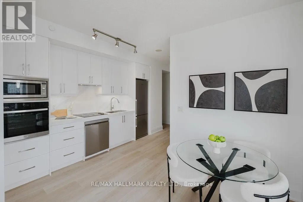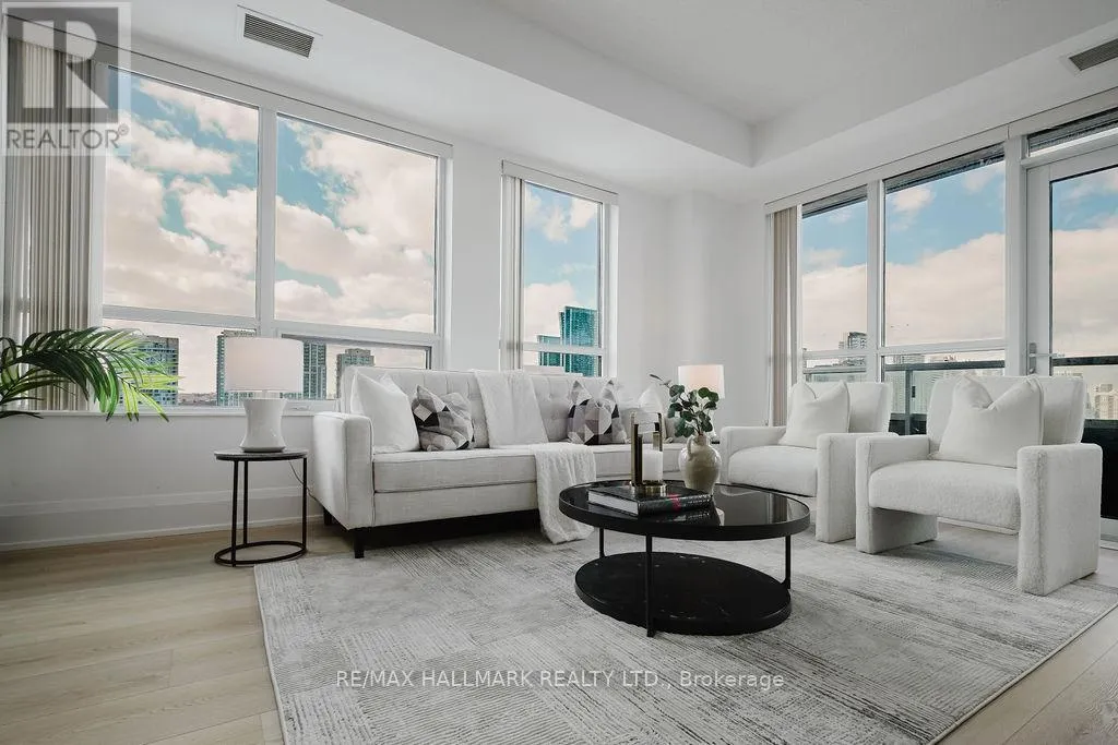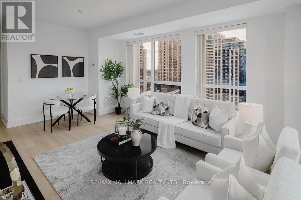 Cross Streets: Yonge/401. ** Directions: East of Yonge North of 401. Welcome to Aristo at Avonshire by Tridel, an exceptional residence in the prestigious Harrison Garden community of North York. This stunning renovated top to bottom 2-bedroom suite offers breathtaking park views and refined finishes throughout - a rare opportunity to experience sophisticated urban living. Featuring 2 spacious bedroom, the suite is enhanced by soaring 9-foot ceilings, brand new laminate flooring throughout (except washrooms), and expansive windows that flood the space with natural light. Walkouts from the living room lead to a generous size private balcony. New modern chef's kitchen is appointed with mostly brand new stainless steel appliances, upgraded cabinetry, and elegant countertops, combining functionality with refined design. The suite also includes a full size stacked front-load washer and dryer, one parking space and one locker. Residents of Aristo enjoy access to an array of world-class amenities, including fully equipped fitness centre, sauna, party and entertainment rooms, meeting room, BBQ terrace and theatre. Ideally situated just minutes from Hwy 401, 404, 400, subway station, restaurants, shops, and schools, this residence also offers easy access to downtown Toronto. This is a rare opportunity to own or live in one of North York's most desirable communities - combining luxury, comfort, and convenience in one exceptional address. (id:27476)