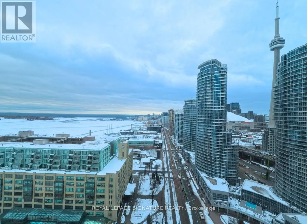 York & Queens quay Live above it all in this beautifully renovated, fully furnished one-bedroom condo with breathtaking southwest lake and island views. Soak in sweeping skyline vistas - including the CN Tower - from your high-floor suite. Turnkey and stylish with ensuite laundry.Maintenance fees include heat, hydro, and water. Resort-style amenities: indoor & outdoor pools, gym, sauna, squash court with basketball, library, business centre, billiards room, self-service car wash, 24-hour concierge & security, and generous visitor parking. Just steps to parks, waterfront trails, shopping, the Financial District, and transit. Quick access to the Gardiner Expressway and Don Valley Parkway makes commuting effortless. Perfect for professionals seeking elevated waterfront living. (id:27476)