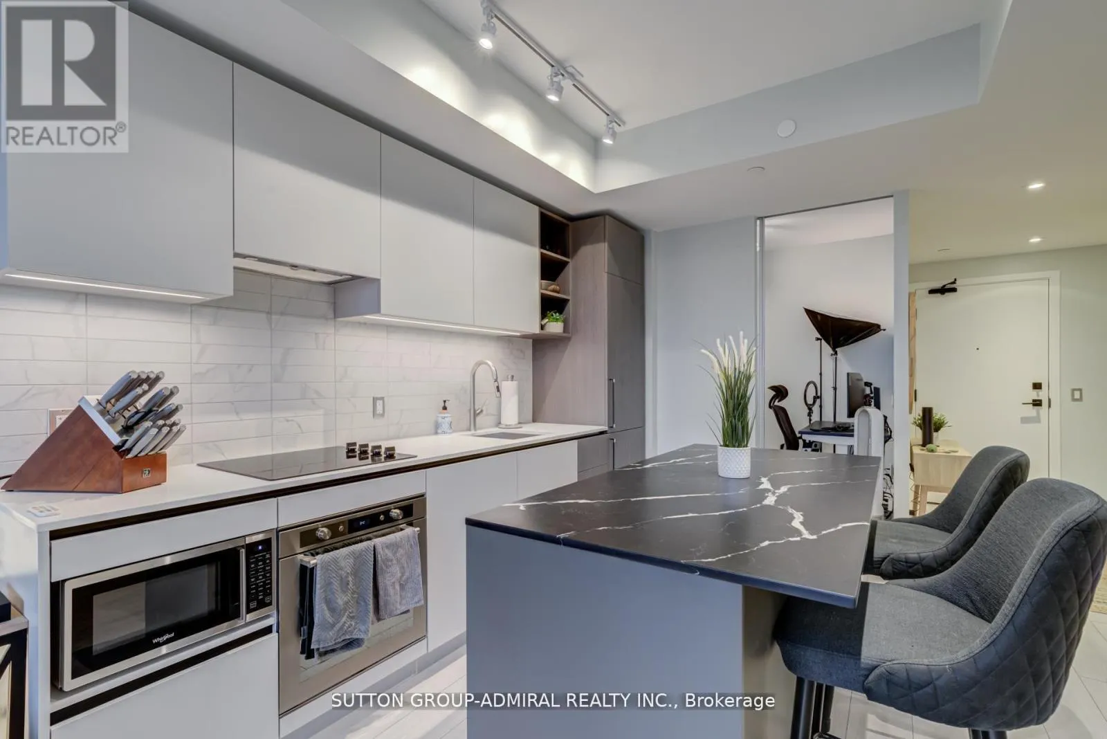 Blue Jays Way & Mercer St This modern boutique condo, located on a high floor, offers a sleek and open concept layout with a large den featuring a sliding door that can easily serve as a second bedroom. The custom kitchen includes a stylish island, integrated appliances, and custom countertops and backsplash, perfect for both cooking and entertaining. With wide plank flooring and floor-to-ceiling windows, the space feels expansive and bathed in natural light, showcasing stunning city views. Located in Toronto's vibrant Entertainment District, this condo boasts a 100 Walk Score and 100 Transit Score, placing you just steps from the CN Tower, Rogers Centre, and top-tier restaurants. Building amenities include a BBQ, gym, party room, and 24-hour security, adding convenience and luxury to daily living. With Union Station, David Pecaut Square, Thomson Hall, and essential services like banks, restaurants, and supermarkets all just 10 minutes away, this condo offers the perfect blend of modern living and urban accessibility. (id:27476)