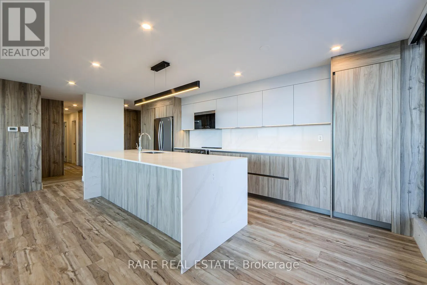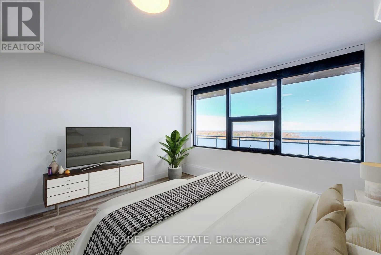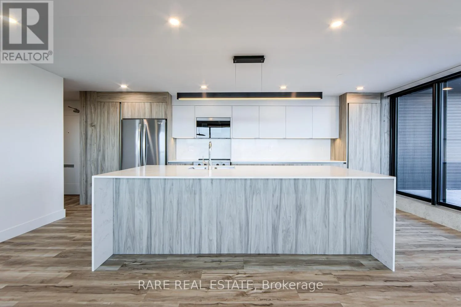 Cross Streets: Kingston Rd. and Guildwood Pkway. ** Directions: South of Kingston Rd and Guildwood Pkwy. Welcome to an exceptional penthouse residence, fully renovated from top to bottom and offering a modern, luxurious retreat overlooking protected conservation land and the waters of Lake Ontario. This spacious 1,420sf three bedroom, two bathroom home features a refined primary suite with a three piece ensuite and walk in closet. Throughout the home are brand new windows, radiant heating, individual heat pump AC units for year round comfort, and parking available through the building on a monthly rental basis. The open concept living, dining, and Italian designed kitchen form the heart of the home, complete with full size stainless steel appliances, an oversized waterfall quartz island, and a striking tiled feature wall. A dedicated laundry room with custom shelving adds everyday functionality, while new vinyl flooring flows throughout the home, aside from the bathrooms. Roller shades with safety cords finish every window. The expansive northeast facing terrace spans over 512sf and serves as an extension of the living space during warmer months, offering power outlets, BBQ capability, and rare unobstructed views of Lake Ontario and preserved green space. Residents enjoy an impressive selection of amenities including an outdoor pool, tennis court, gym, sauna, EV charging, bike storage, and a dedicated outdoor BBQ area. Twenty four seven emergency service and upcoming common area upgrades add to the appeal. Notably, this is not a condo building, offering added stability for long term tenants. Located in the highly sought after Guildwood Village community, the area blends natural beauty with urban convenience. Enjoy nearby dining, shopping, excellent transit connections, golf clubs, and kilometers of scenic walking paths. This is lakeside living at its finest in one of Toronto's most picturesque neighborhoods. (id:27476)