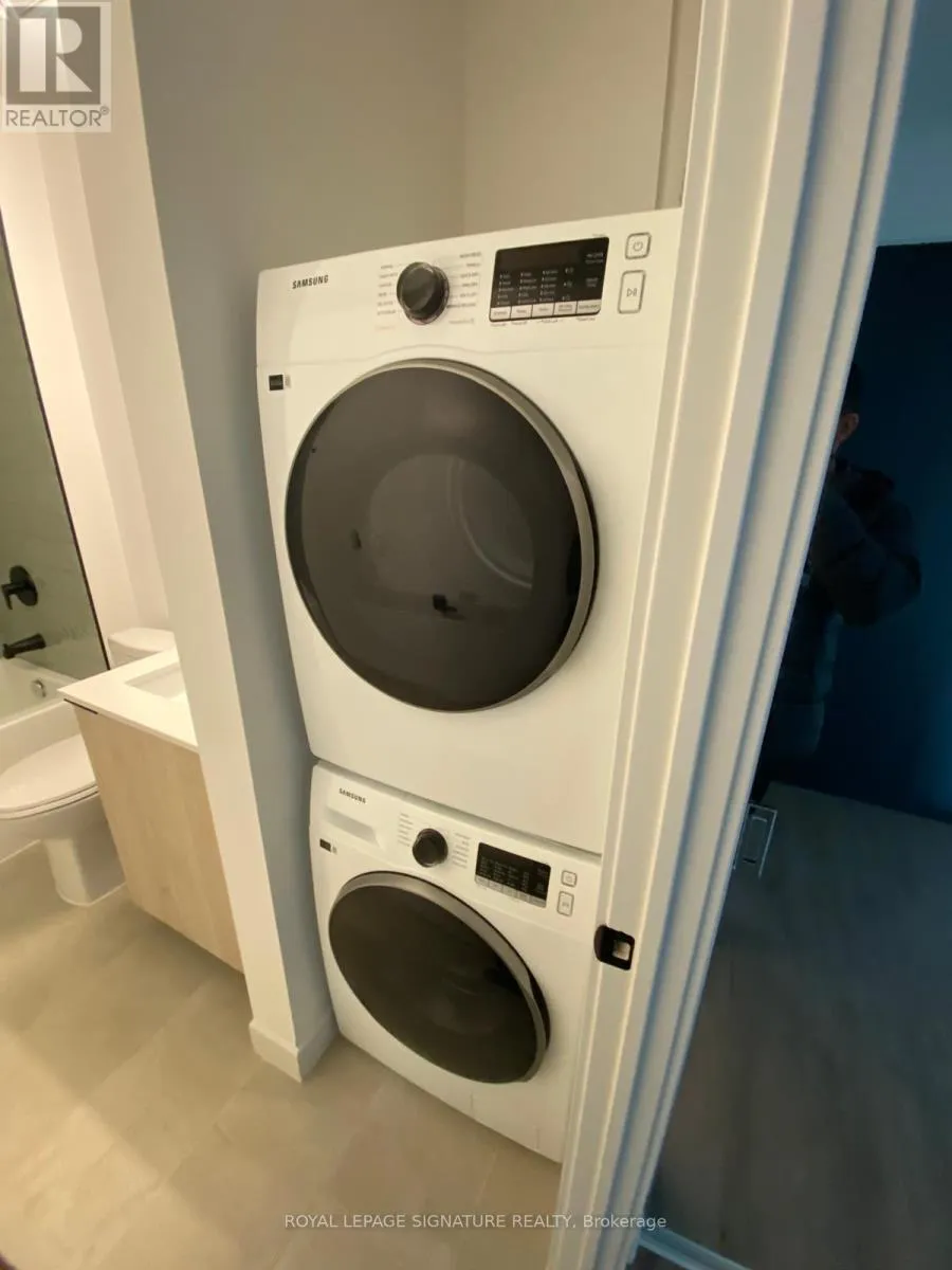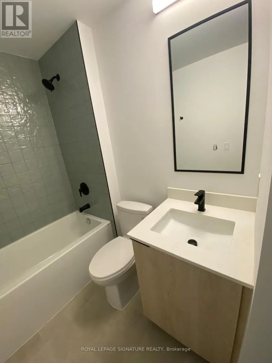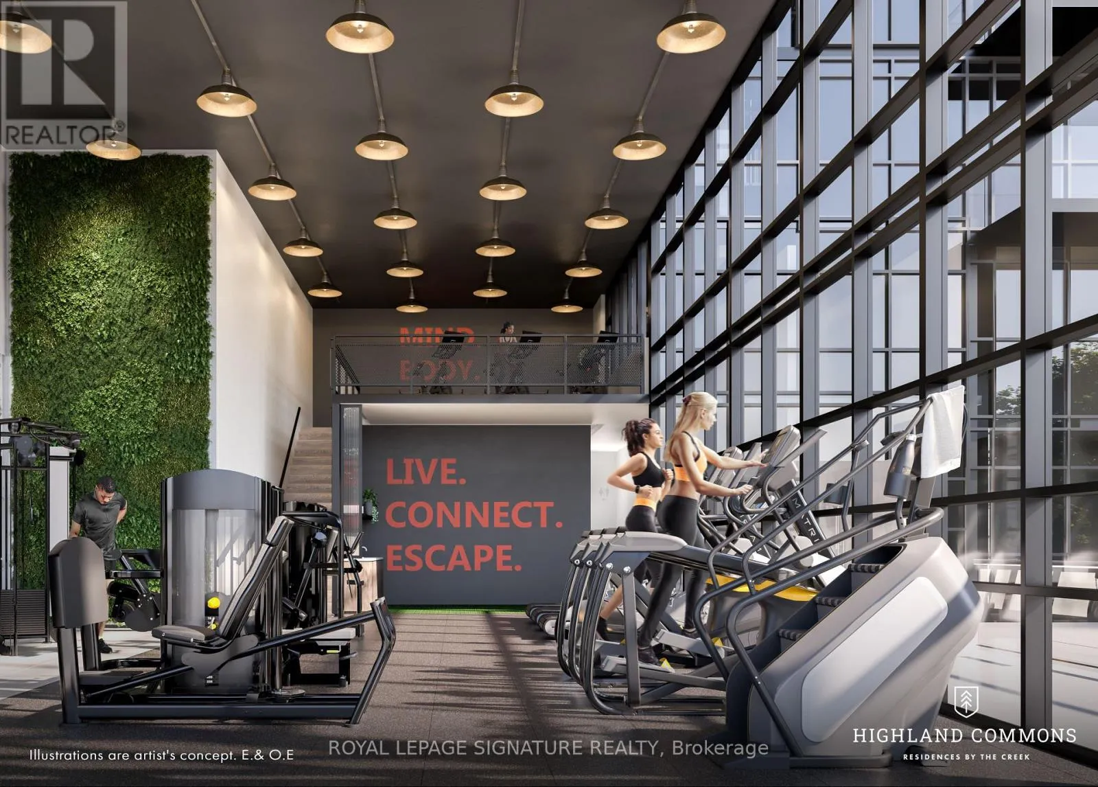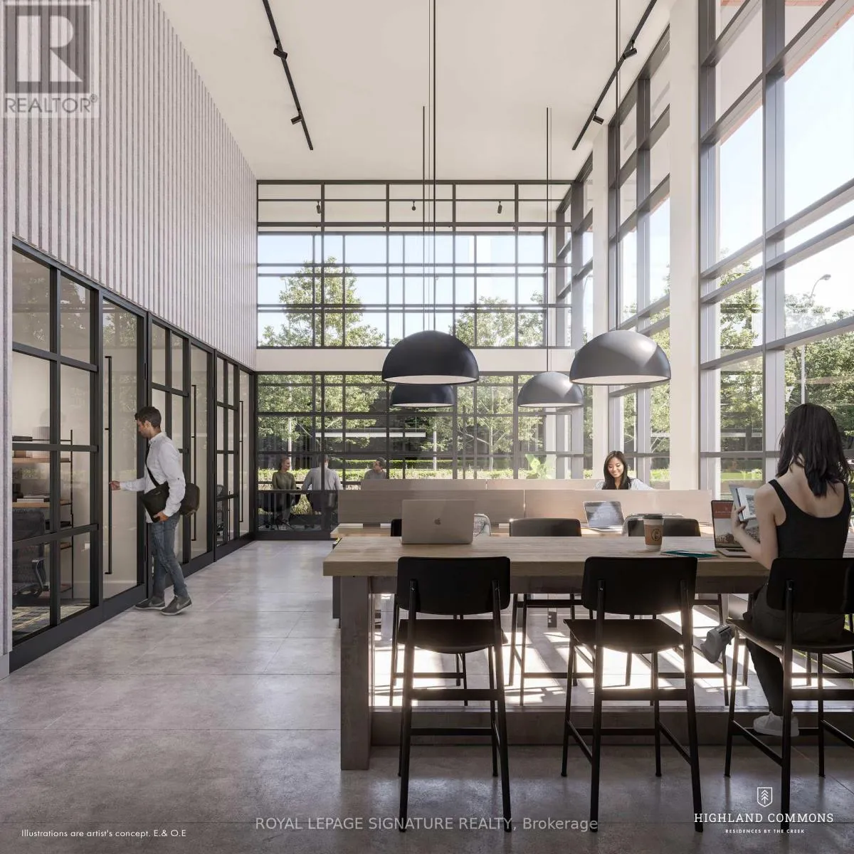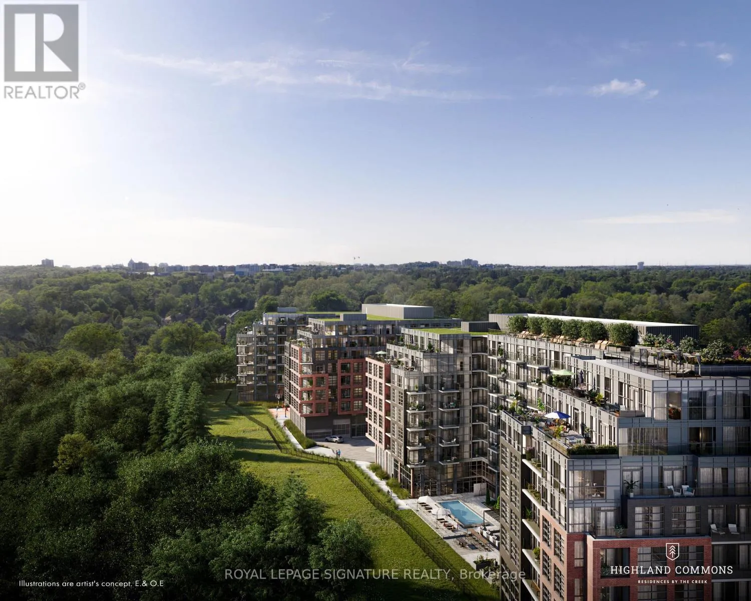 Cross Streets: Military Tr/Kingston Rd. ** Directions: Access going west on Kingston Rd, enter off Militiary Tr. Be the first to live in this sleek 1+1 bedroom, 2-bath suite at Highland Commons by Altree Developments, offering 622 sq ft of thoughtfully designed interior space plus a 51 sq ft balcony, with an open-concept living/dining area, modern kitchen with integrated appliances and contemporary cabinetry, spacious den ideal for a home office or guest space, a bright bedroom with large closet, two spa-inspired bathrooms with matte black fixtures and glass shower, wide-plank flooring throughout, floor-to-ceiling windows, in-suite stacked laundry, 1 EV parking space and locker, all in a brand new midrise community steps to UTSC, Centennial College, ravine trails, parks, transit and quick access to Hwy 401, with impressive building amenities including 24/7 concierge, co-working space, dual-level gym, party room, outdoor pool, rooftop terrace, basketball court, games room and more for a complete urban-meets-nature lifestyle in Highland Creek (id:27476)