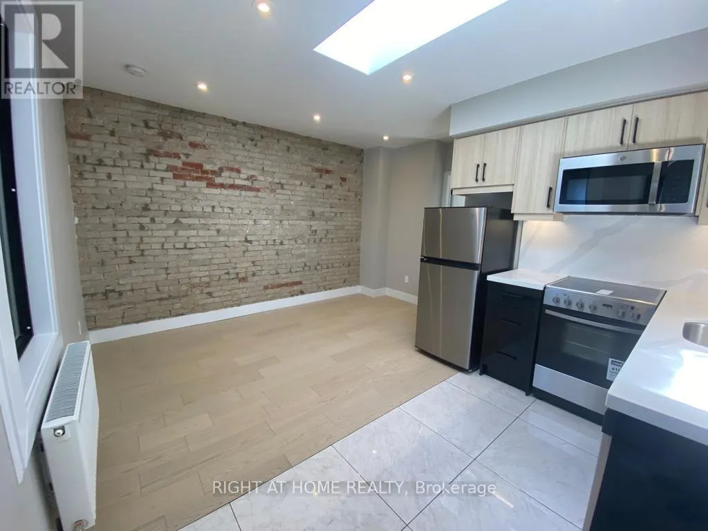 Haward Park Drive Bright 2 bedroom Apartment in the heart of Roncesvalles: this beautiful Two bedroom has it all, High ceiling, modern kitchen, living room, exposed brick walls, and tons of light. The kitchen has a skylight and is equipped with Stainless steel appliances (dishwasher, built-in microwave, etc), backsplash, hardwood floor and pot lights throughout. Shared Laundry and Backyard.Street car is one minute from the door! Many trendy cafes and restaurants around, 10 minutes Walk to High Park. (id:27476)