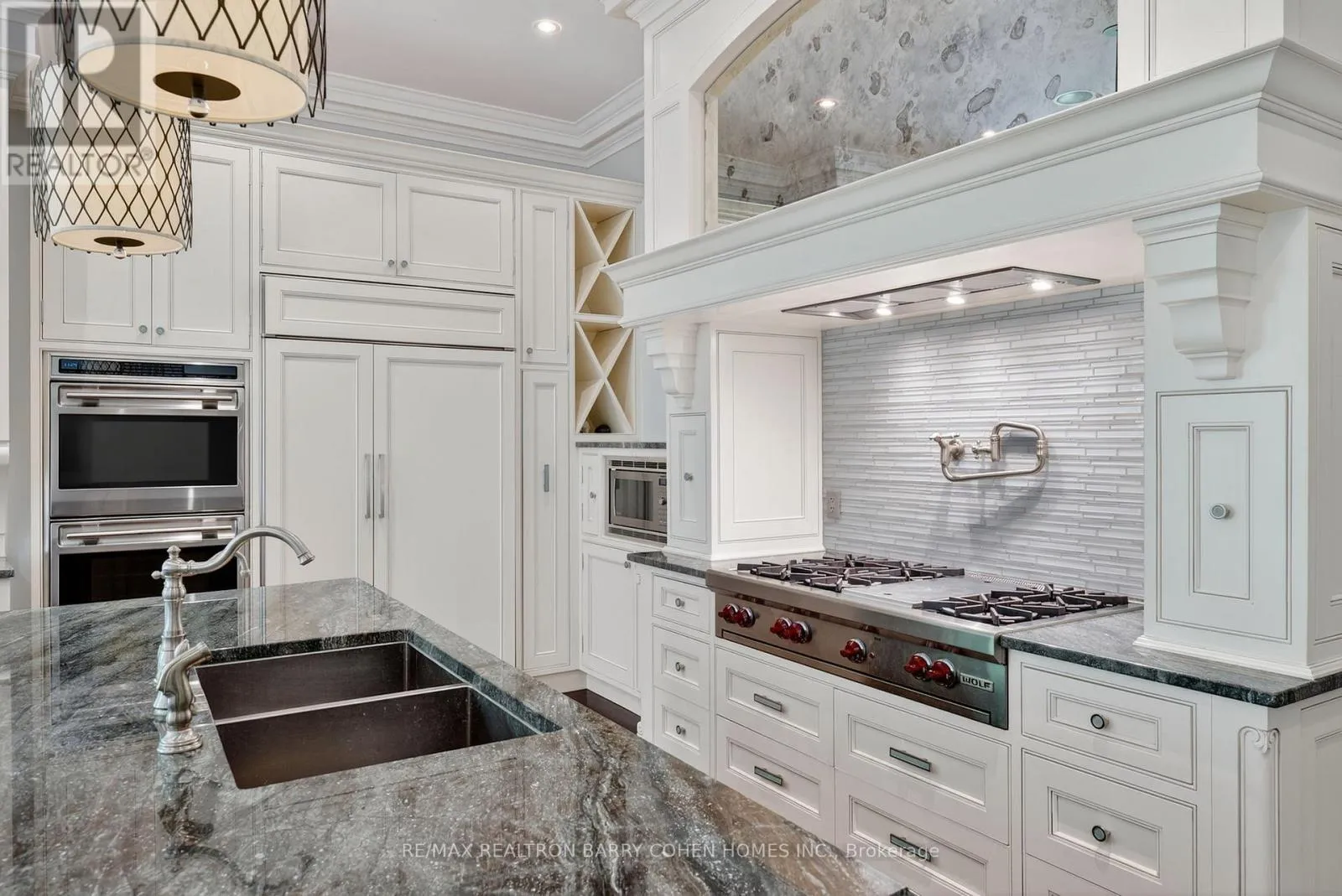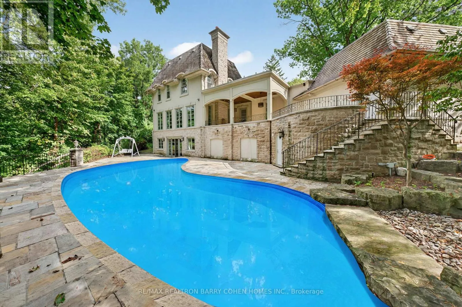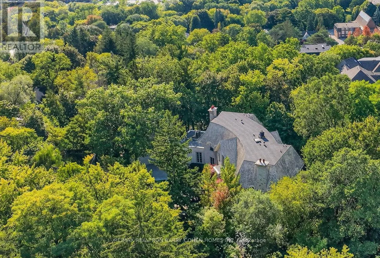 Yonge & York Mills Backs Onto Ravine! Perched gracefully at the highest point of Hoggs Hollow, this French Château inspired masterpiece sits on a spectacular 239.08 x 207.81 ft ravine lot (approx. 1.14 acres). Designed by Dee Dee Taylor Hannah and built by award-winning builder Michael Rossini, this timeless stone estate offers over 10,000 sq.ft. of luxurious living space, blending European elegance with modern comfort. The homes distinctive curved and symmetrical design showcases architectural artistry rarely seen today. Featuring 4 bedrooms with ensuites, 9 washrooms, and a 3-car garage with a circular driveway accommodating up to 15 cars, all principal rooms face west, overlooking the serene ravine. A grand marble foyer, curved hallways, and custom millwork opens to elegant living and dining rooms that walk out to the ravine and garden. Two libraries on main floor, five fireplaces, built-in speakers, 10-ft ceilings, and hardwood floors throughout. The gourmet kitchen with double granite islands and an open-concept family room with motorized curtains creates a warm and inviting space for entertaining.Step out to a 700 sq.ft. patio with outdoor fireplace and panoramic ravine views. The primary suite features a lavish 9-piece ensuite, his & her walk-in closets, and heated bathroom floors. The walk-out lower level wth heated floors includes a home theatre, wine cellar, sauna, wet bar, nanny/guest ensuite, and a recreation room with fireplace opening directly to the backyard oasis.The heated concrete pool with cascading waterfall, framed by mature trees, creates a private, resort-like retreat. A rare offering combining elegance, privacy, and tranquility, just moments from the Granite Club, top private schools (Crescent, TFS, Havergal, UCC, BSS), fine dining, and Rosedale & Don Valley Golf Clubs.A true statement of taste, craftsmanship, and enduring luxury in one of Torontos most prestigious enclaves. (id:27476)