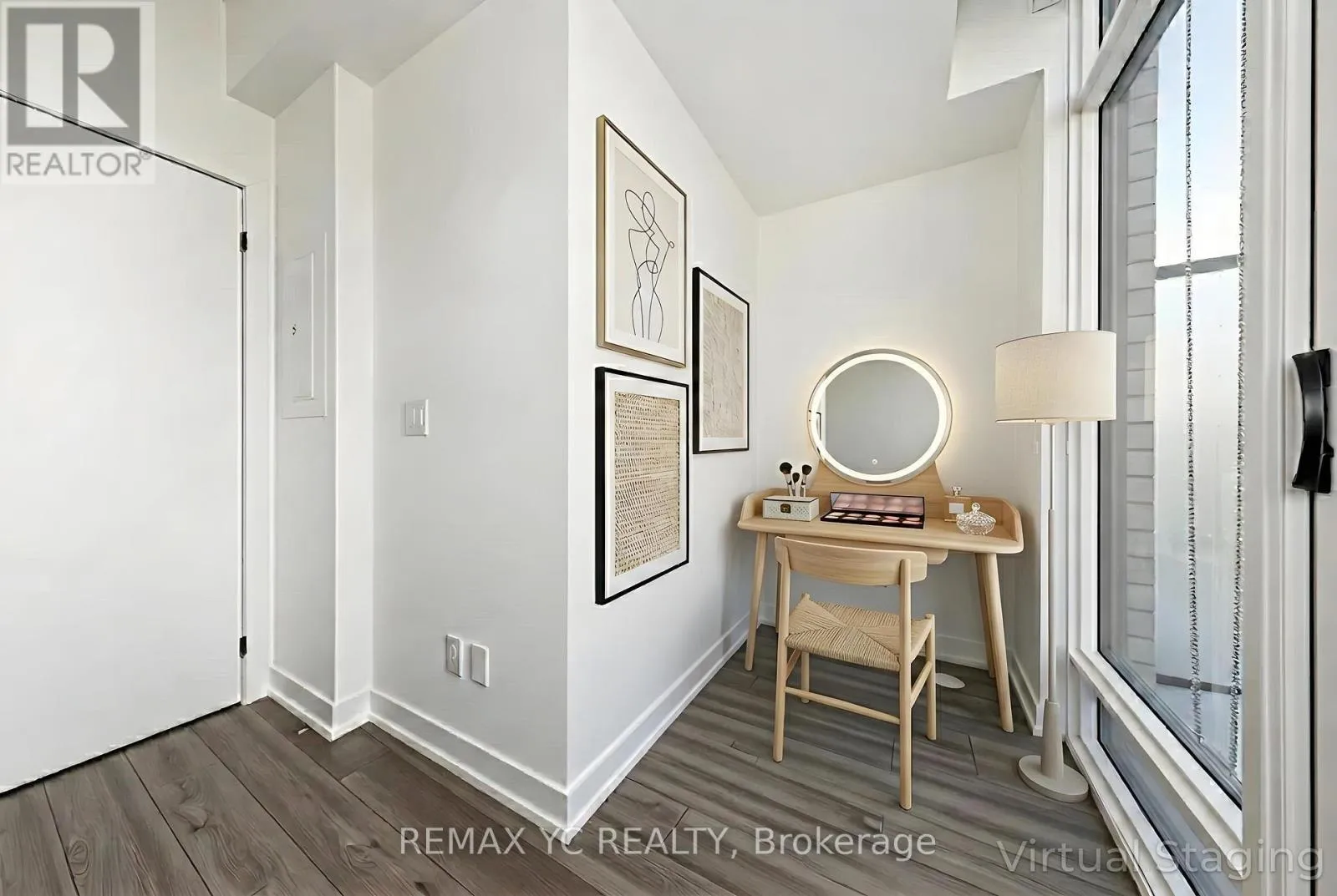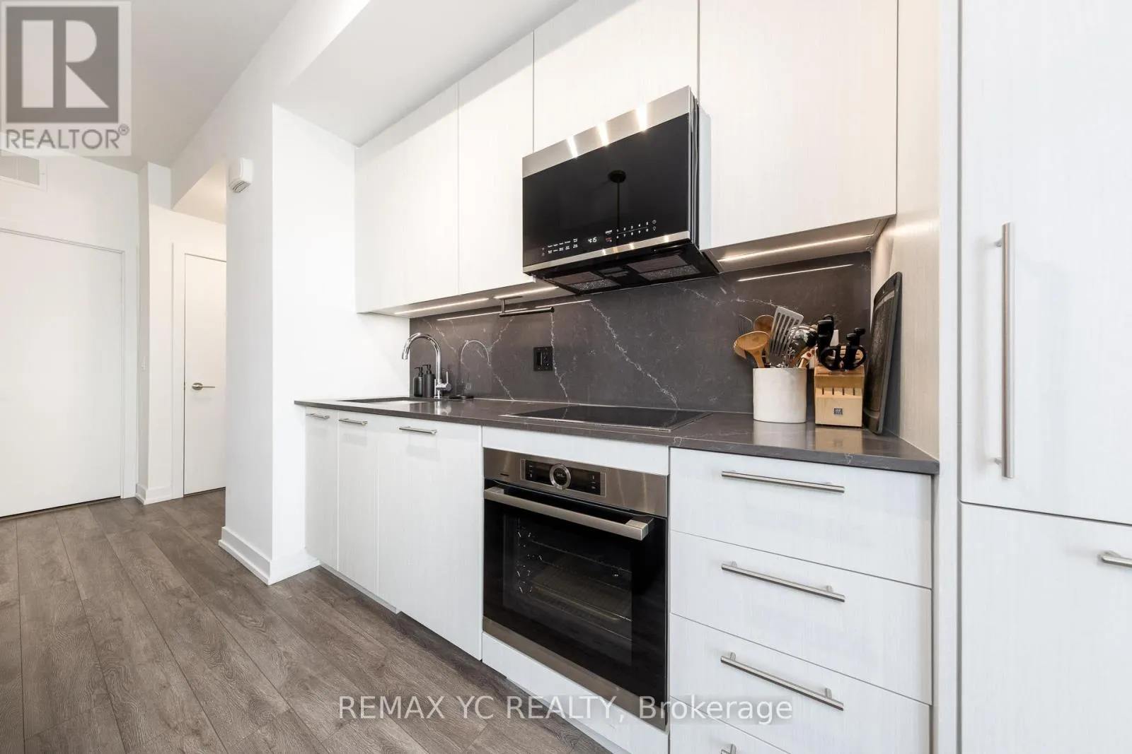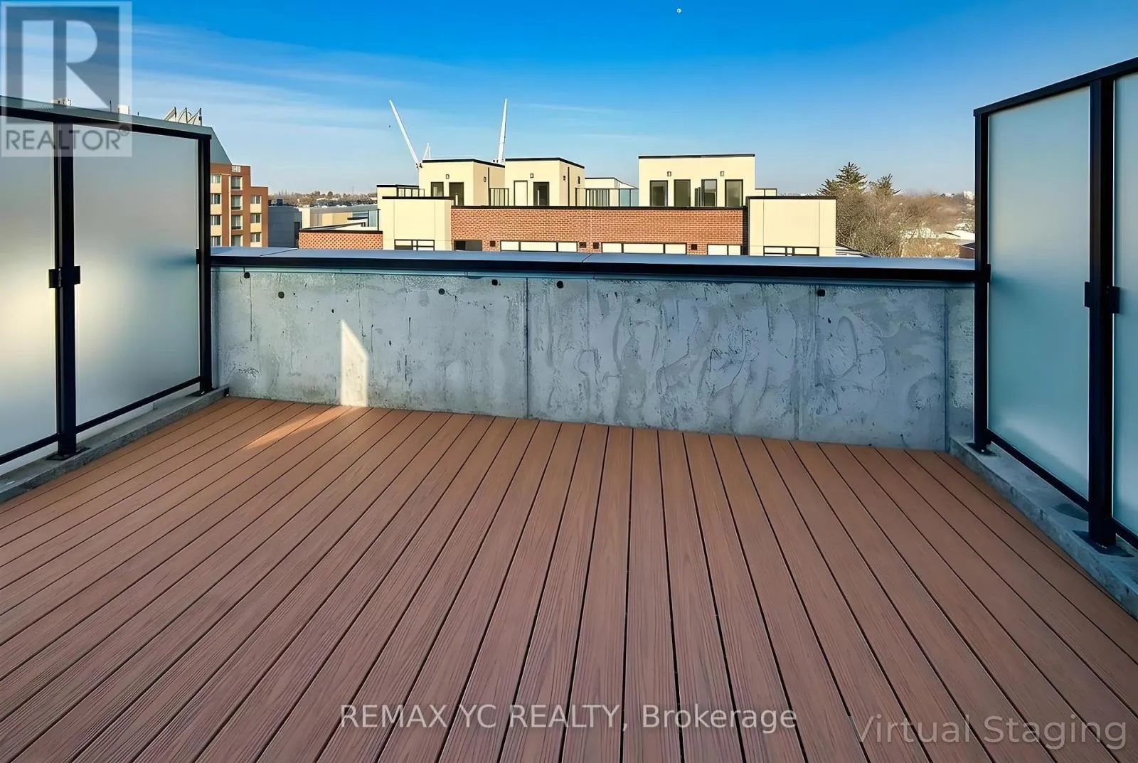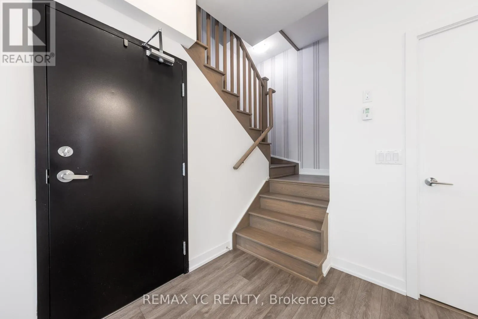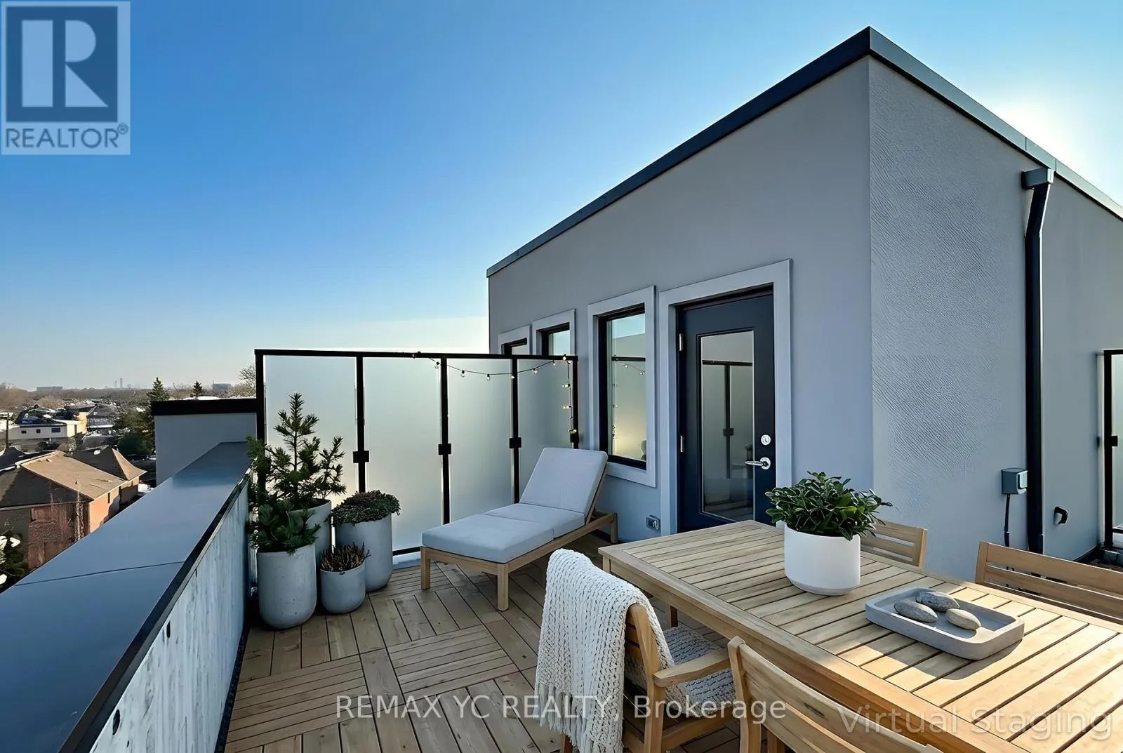 Sheppard/Wilson Heights Welcome to Greenwich Village, a modern cast-in-concrete community offering a rare opportunity to own a low-maintenance two-bedroom residence that stands apart from a typical condo by featuring a private rooftop terrace and two separate balconies totaling 251 sq.ft., delivering an exceptional indoor-outdoor lifestyle rarely available in this price range, complemented by approximately 1,060 sq.ft. of thoughtfully designed interior space with two bedrooms, two bathrooms including one powder room, a bright upper-level layout, and a skylight in the second bedroom that brings in abundant natural light and added architectural character, further enhanced by approximately $70,000 in premium builder upgrades including elegant oak stained stairs, an upgraded shower room, a high-end Bosch stainless steel appliance package, upgraded kitchen cabinetry, sleek quartz countertops with matching backsplash, and upgraded vinyl flooring throughout, all finished with 9-foot smooth ceilings and individually metered utilities for efficiency and cost control, while underground parking and a private locker are included for everyday convenience and strong long-term value, all ideally located just five-minute walk to Sheppard West Subway Station with bus access at your doorstep and easy access to Highway 401, making this a distinctive, move-in-ready opportunity in a highly desirable transit-oriented neighborhood. (id:27476)