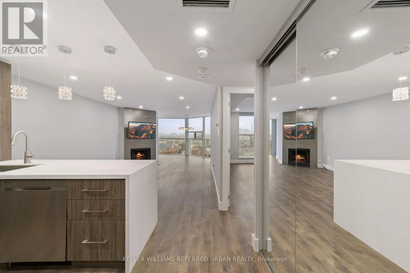 King and Bathurst Step inside this Beautiful, Spacious One Bedroom plus Den Condo in the Heart of King West. Renovated to suit Modern Tastes, this condo has so much great living/working space to enjoy living Downtown. The Kitchen Features Granite Counters, Modern Cabinetry ,Stainless Steel Appliances and Breakfast Bar. The Living Room is Open Concept and features a Woodburning Fireplace and extends to the Open Den. Modern Bathroom, with Deep Soaker Tubs, Ceramic Floors. (id:27476)