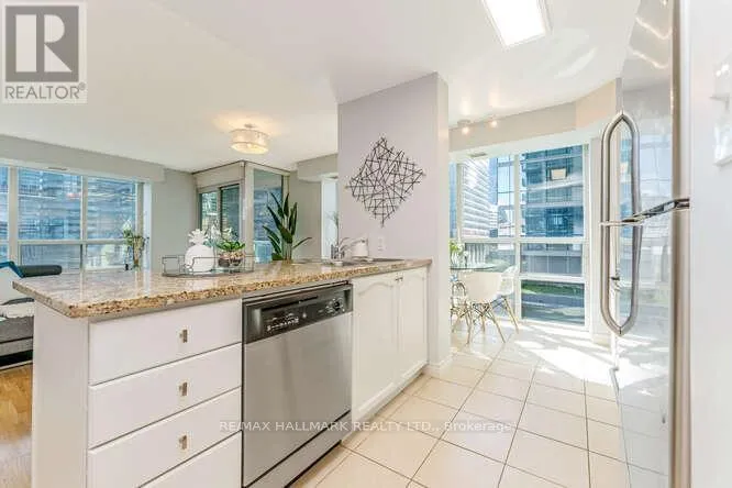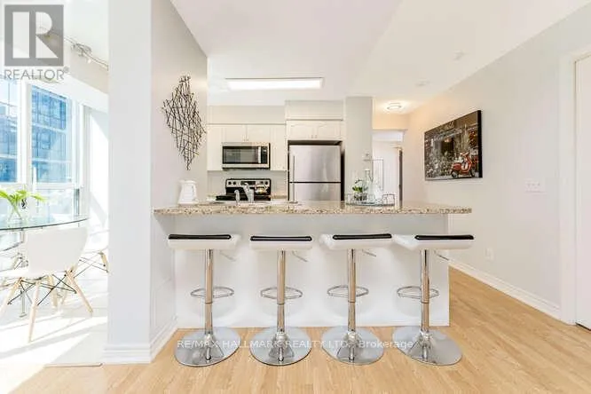 Cross Streets: York/Bremner. ** Directions: North East on Grand Trunk. Simply spectacular 2-bedroom, 2-bathroom condo in a prime downtown location! This stunning, move-in-ready corner suite features gorgeous wood floors throughout and an abundance of natural light. Enjoy sun-filled mornings in the spacious dining area just off the beautifully renovated kitchen, complete with a modern centre island and clean, contemporary finishes.Take in sweeping views from every room, including iconic sights of the CN Tower and Scotiabank Arena. Perfectly situated just 300 metres from the Gardiner Expressway ramp and the lakefront, this unbeatable location is only a 2-minute walk to the UP Express, GO Trains, Union Station, restaurants, Longo's, banks, coffee shops, and offices.Enjoy the convenience of being on the same floor as the BBQ and lounge area, with direct access to the PATH system for seamless year-round connectivity. The oversized parking spot is ideally located right in front of the elevator, and parking and utilities are all included.A perfect home for professionals, a couple, or roommates seeking style, comfort, and exceptional convenience in the heart of the city. (id:27476)