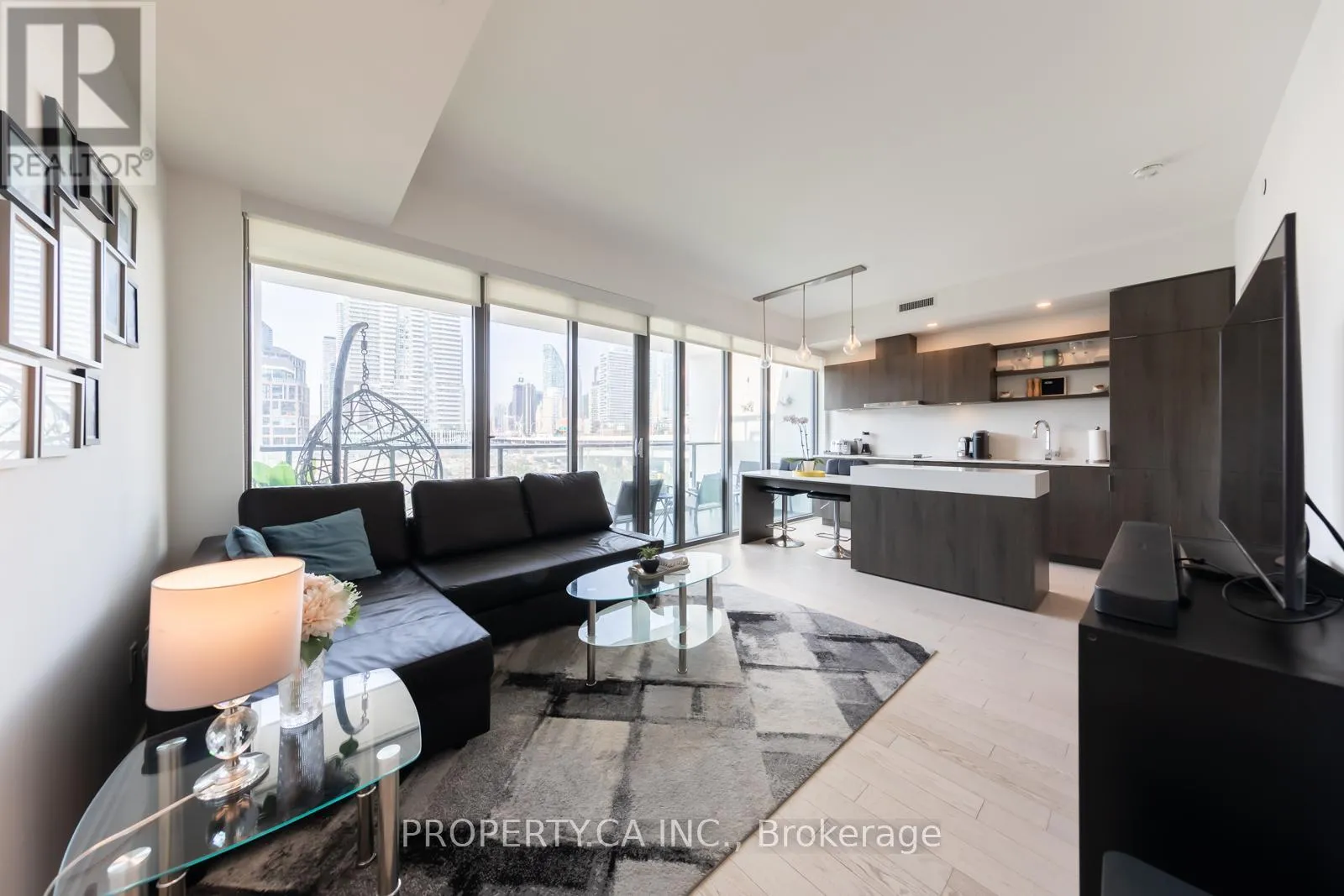 Queens Quay & Lower Sherbourne Extremely rare EV charging parking spot included! Oversized 1+den unit with 2 full bathrooms. 778 sqft of living space. Tons of upgrades! Den is big enough to be used as a 2nd bedroom or office. West exposure brings a ton of light into the unit. Large balcony to enjoy the summer weather! Building amenities include: outdoor swimming pool overlooking the lake, gym, concierge, BBQ & more. (id:27476)