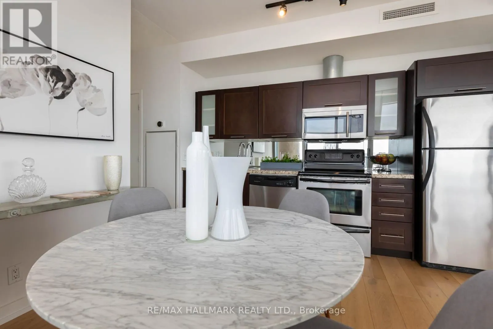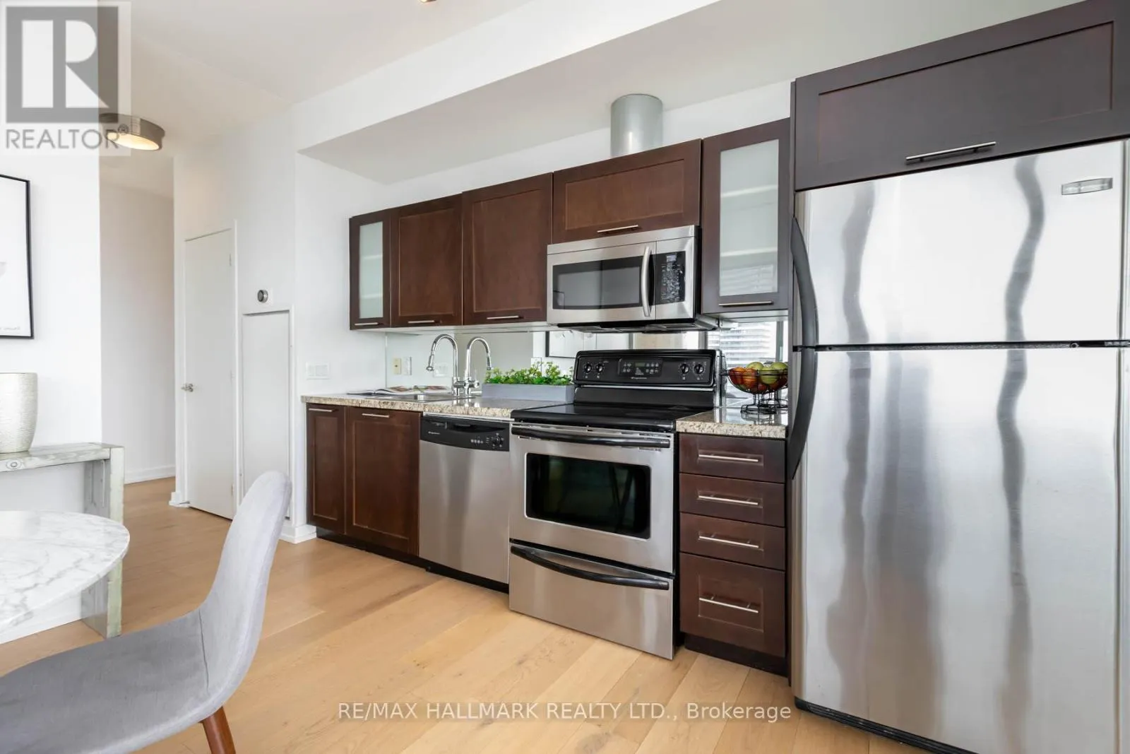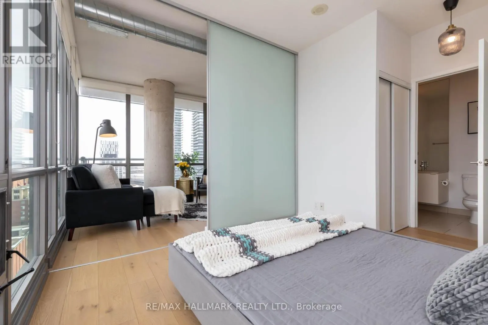 Cross Streets: Mill / Parliament. ** Directions: 1 way west along Mill St/East Parliament. Space, Light + Outdoor Living ~ come and claim a truly unforgettable corner residence perched high above the cobblestone streets in the heart of Toronto's iconic Distillery District. #1502 - 33 Mill Street, once you see it, you'll know this is the one! Sunlight streams through Floor-to-Ceiling windows that wrap around the entire suite, filling every room with warmth and showcasing breathtaking northeast views over the historic Distillery District and urban city vistas beyond. The open-concept kitchen, living, and dining area was made for hosting - seamless, spacious, and effortlessly stylish - with rich hardwood floors running throughout to create a polished, cohesive feel. Then there's the showstopper, an extraordinary 758-square-foot wraparound balcony that completely transforms how you live. Morning coffee at sunrise, summer dinners under the open sky, evening drinks with the city lights glowing around you - this is outdoor space on a scale that's almost impossible to find downtown. The thoughtfully designed split-bedroom layout offers privacy and flexibility. The primary suite is a calming retreat with 2 closets and a spa-inspired 4PC ensuite. The second bedroom, enclosed with sliding frosted doors and complete with a generous closet, easily doubles as a sophisticated work-from-home office or guest space. With one underground parking space (Level B, #91) and one storage locker (P3, #173), convenience is built in. Step outside and everything you need is at your doorstep - 24-hour TTC service, the newly opened Shoppers Drug Mart at Cherry and Front, the renowned St. Lawrence Market, and the vibrant Financial District, along with countless shops, cafés, and restaurants. "#1502 - where home + community beautifully converge, and charm, culture, cafés, and city energy make this the perfect place to live, love, and emerge." (id:27476)