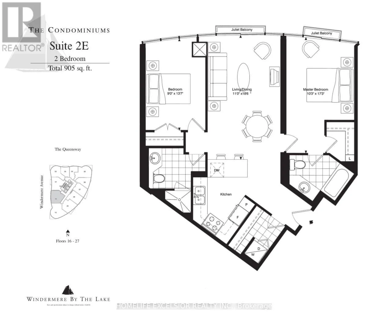 Cross Streets: Windermere /The Queensway. ** Directions: Windermere Ave. Luxurious Condo * Windermere By The Lake * New Painting, Split Two Bedroom (905 SQ FT) open-concept living area Floor-to-ceiling windows Minutes To QEW, Lakeshore, Across Street is High Park, Walking Distance To Beach And TTC. One Parking Included (id:27476)