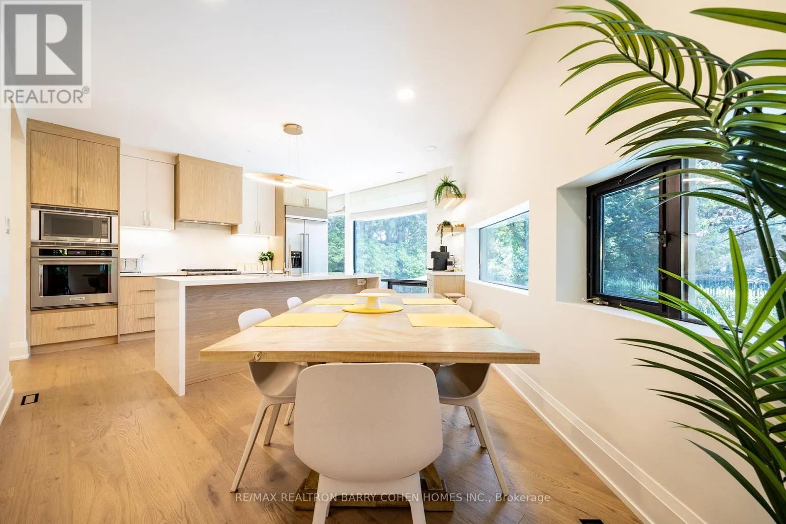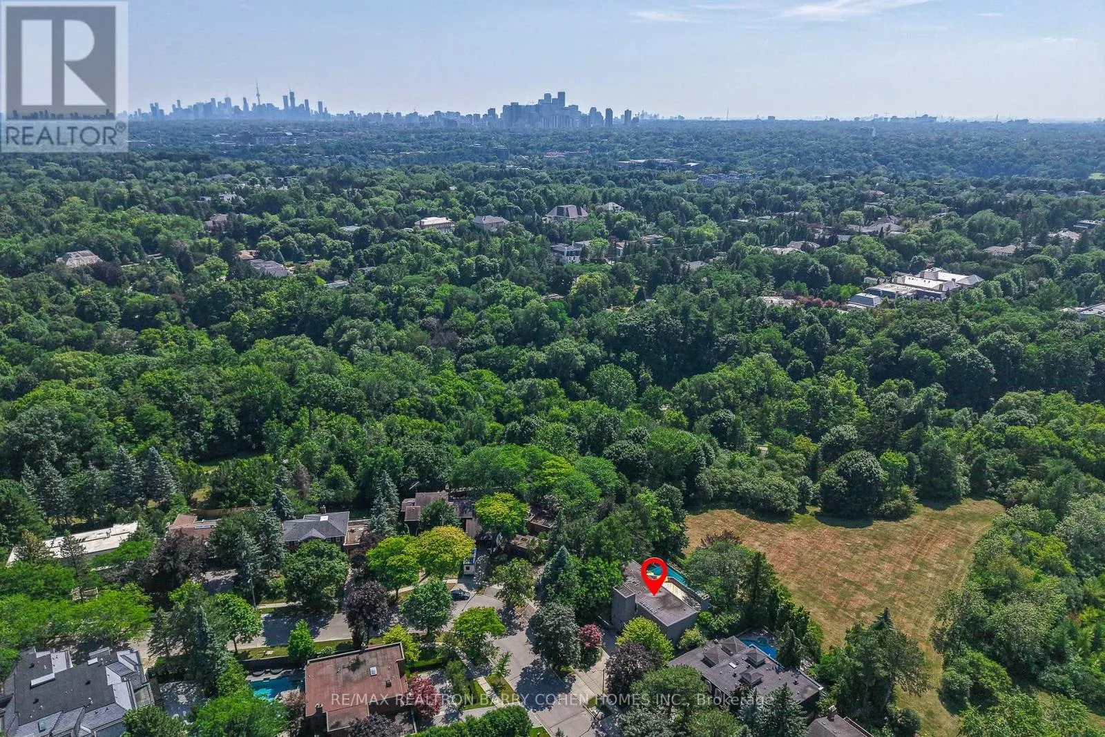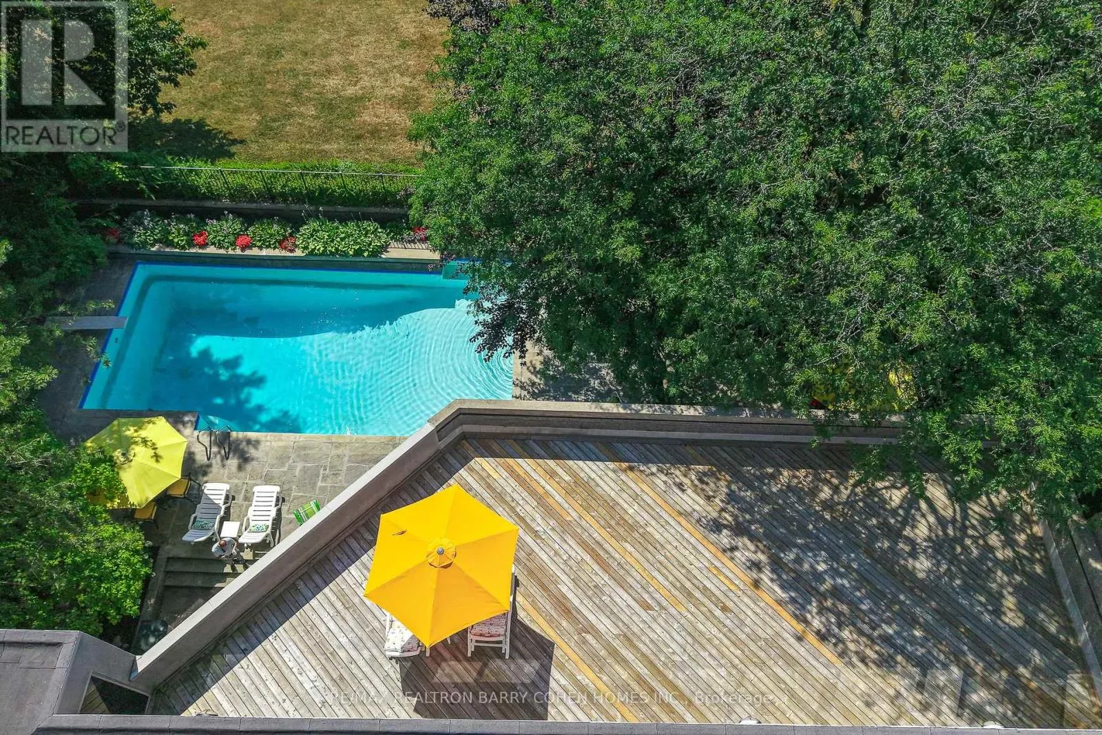 Bayview/York Mills An iconic showcase of refined design, upgraded and perfectly positioned in the prestigious Windfields neighbourhood, this exceptional residence offers unparalleled privacy and a seamless connection to the natural beauty of Windfields Park. Bold Brutalist architecture creates a dramatic, light-filled interior with floor-to-ceiling picture windows on every level, adorned with custom Belgian linen window coverings. An expansive second-floor sundeck provides sweeping park views and is accessible from all four bedrooms, while the lower level opens effortlessly to lush rear gardens. The main floor is designed for elegant entertaining, featuring formal living and dining areas, a sunken family room, a chef's kitchen with servery, and walk-outs to a flagstone patio and shimmering concrete pool. A sculptural open-riser staircase enhances the flow of natural light throughout the home. The lower level offers a luxurious retreat with a fifth bedroom, wet bar, recreation room with wood-burning fireplace, sauna, and floor-to-ceiling garden views with walk-up access to the patio. A three-car garage and circular driveway accommodating 8+ vehicles provide ultimate convenience, while proximity to top schools, 401/404/DVP, and the exclusive Granite Club ensure unparalleled lifestyle ease. A rare urban sanctuary, this home combines dramatic design, refined luxury, and a serene parkside setting for a truly extraordinary living experience. (id:27476)