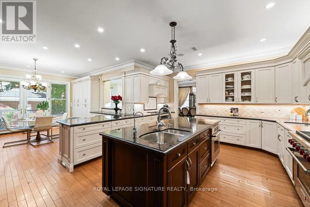 Bathurst St/Lawrence Ave W Truly one of a kind, an extraordinary residence on a rare 66' wide lot, crafted by renowned architect Richard Wengle. This expansive home offers 7 bedrooms and 10 bathrooms, thoughtfully designed for multi-generational living. The main floor features two full kitchens with premium appliance, including a separate kosher kitchen, a large island, and seamless flow to the dining and family rooms. French doors lead to the private backyard with a gated inground pool and cabana with bathroom and outdoor shower. The upper level showcases a luxurious primary suite with walk-in closet, private office, and a 7-piece spa ensuite, along with six additional spacious bedrooms and 4 bathrooms. The lower level is perfectly suited for extended family or rental opportunities, offering two fully equipped in-law suites/apartments with private kitchens, living spaces, and separate entrances. Additional amenities include multiple laundry rooms, custom storage, and direct garage access. With its rare lot size, thoughtful design, dual kitchens, and in-law potential, this home is a truly unique offering in the market, perfect for large families and those seeking both luxury and practicality. (id:27476)