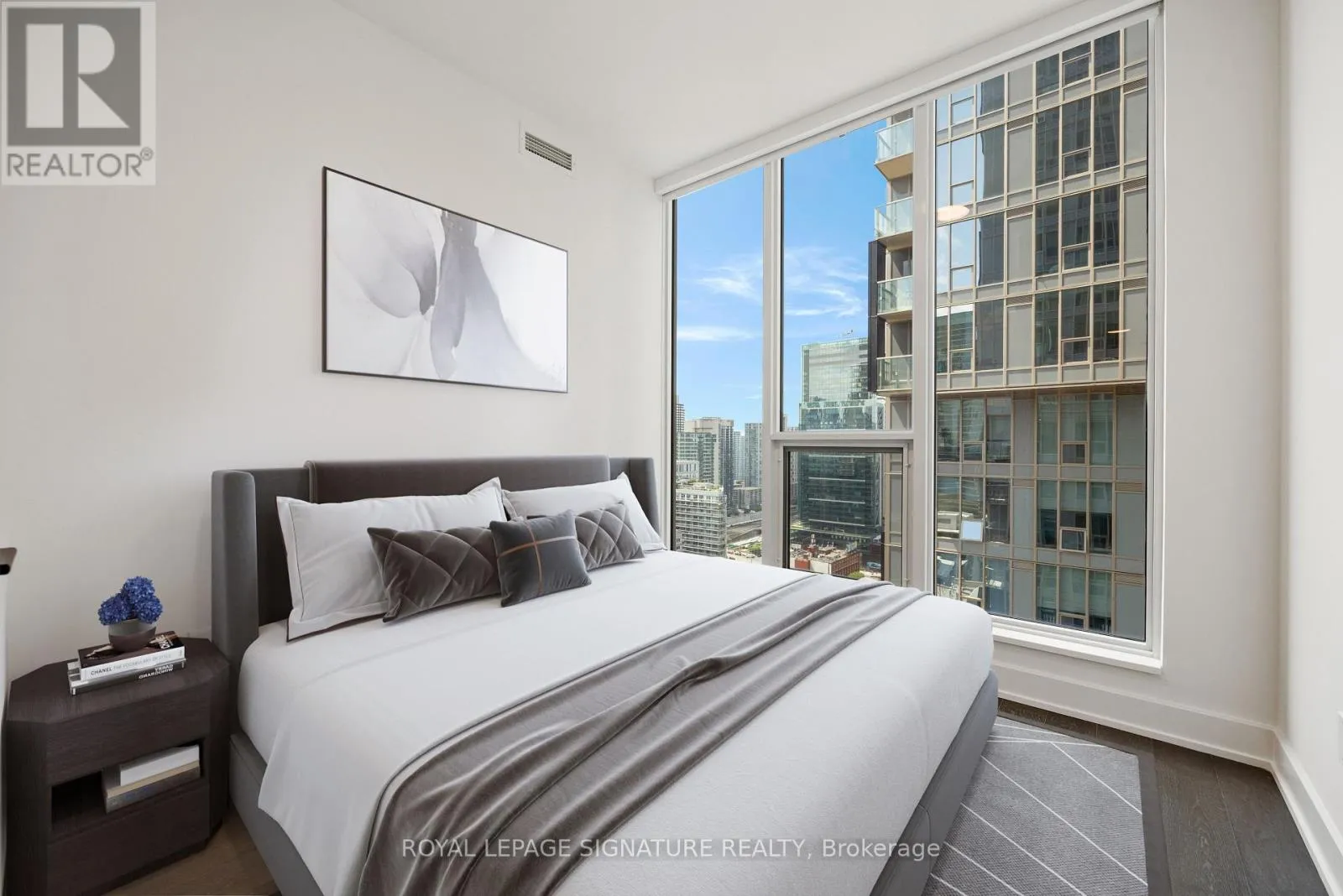 Blue Jays Way & Mercer St Welcome to the prestigious Nobu Residences, where luxury, design, and lifestyle come together in the heart of downtown.This exceptional 2 bedroom + den, 2 bathroom suite offers an unparalleled blend of sophistication and comfort. Tons of upgrades throughout, the residence features an expansive open concept layout with dramatic floor to ceiling windows that flood the space with natural light and showcase breathtaking, unobstructed views of the Rogers Centre and the iconic CN Tower, a true Toronto skyline experience. This isn't just a view, it's a statement.The sleek, modern kitchen is a showpiece, complete with top of the line built in appliances, premium finishes, and a large island perfect for entertaining. The spacious primary bedroom offers custom closet organizers and a spa inspired ensuite adorned with designer fixtures and elegant detailing. A versatile den provides the ideal space for a home office or additional living area. Residents of Nobu Residences enjoy world-class amenities, including a state of the art fitness centre, stunning outdoor terrace, 24-hour concierge service, and exclusive lifestyle offerings designed for elevated urban living. Perfectly situated steps from premier shopping, fine dining, entertainment, and transit, this remarkable suite delivers the ultimate downtown lifestyle. Property is digitally staged. (id:27476)