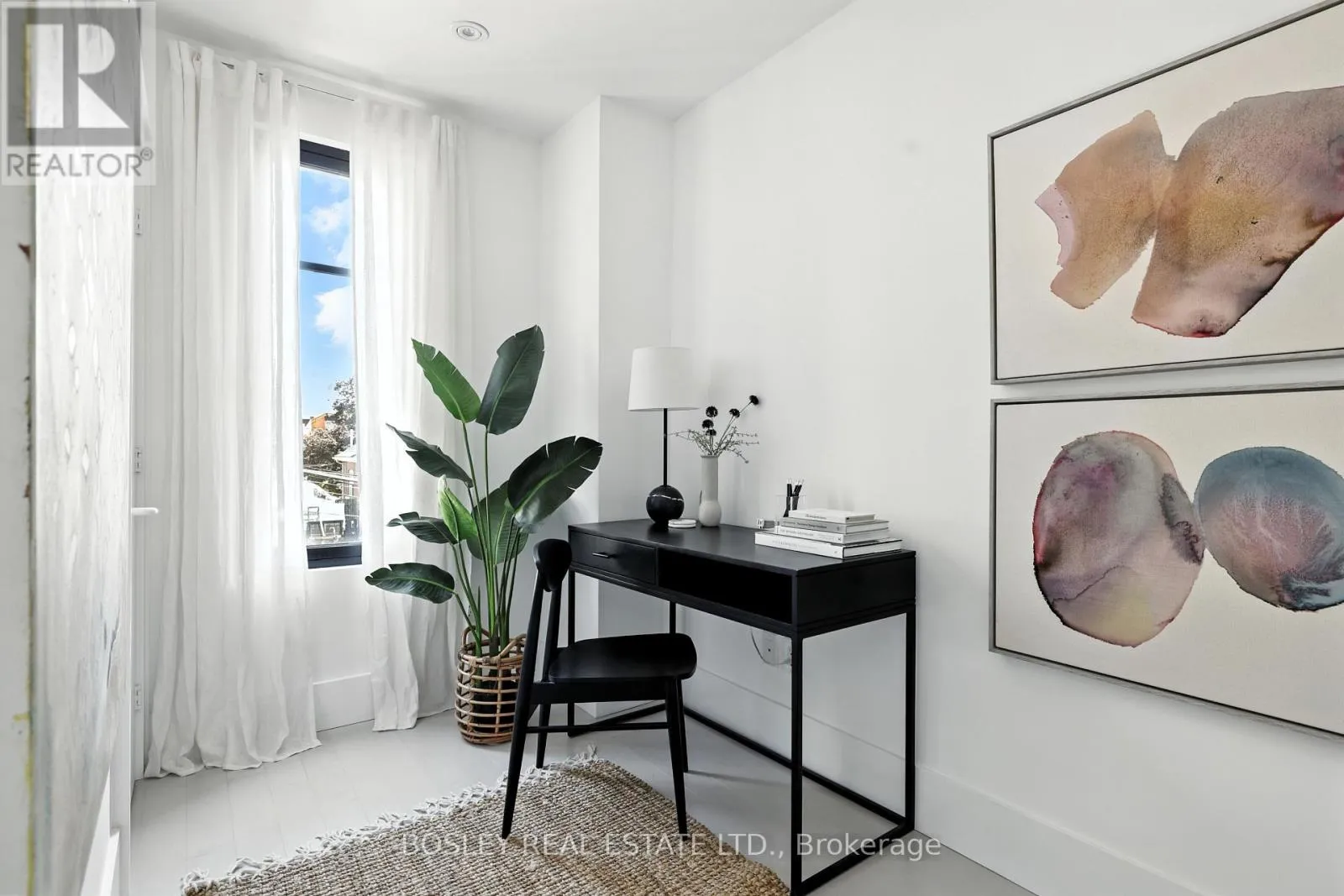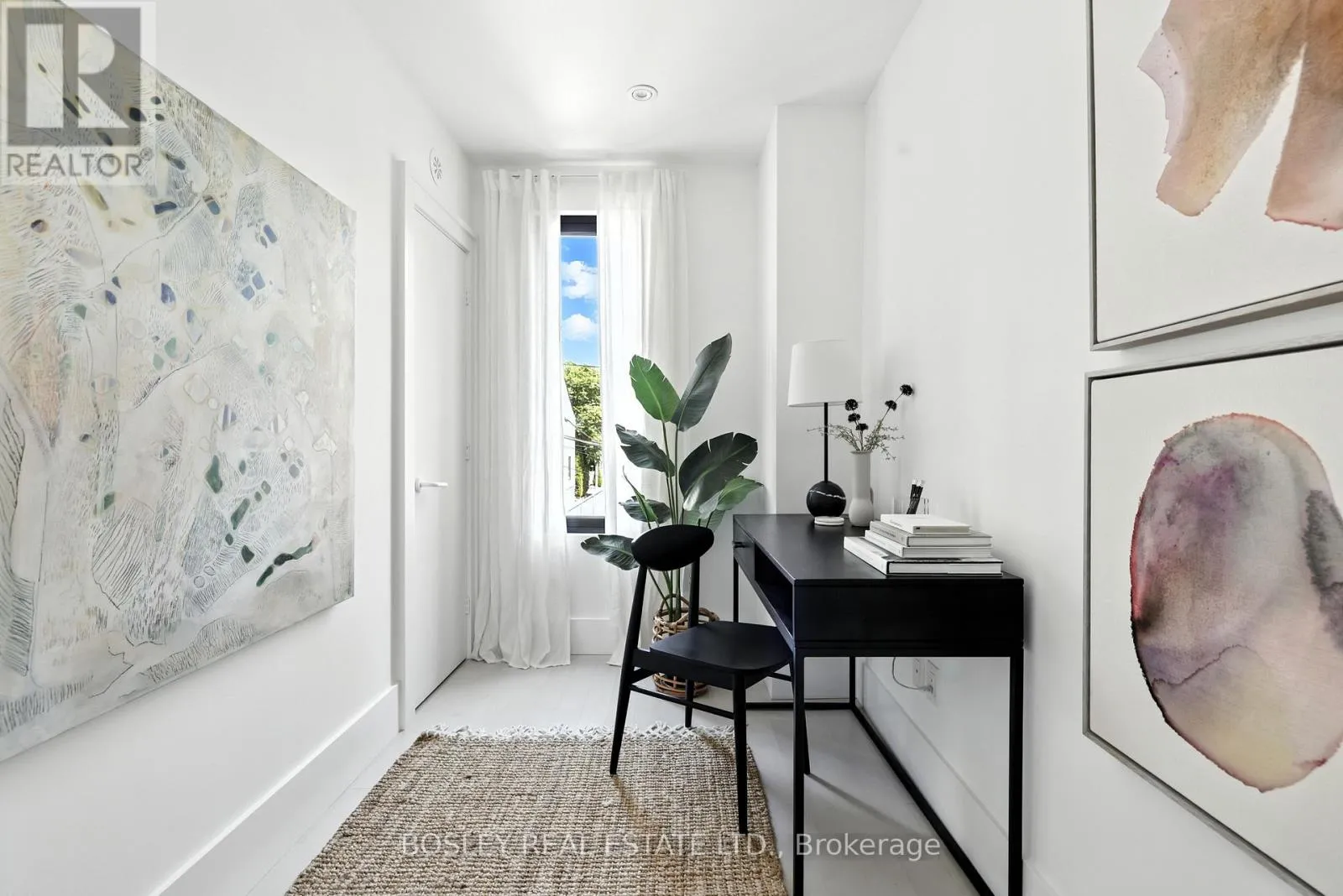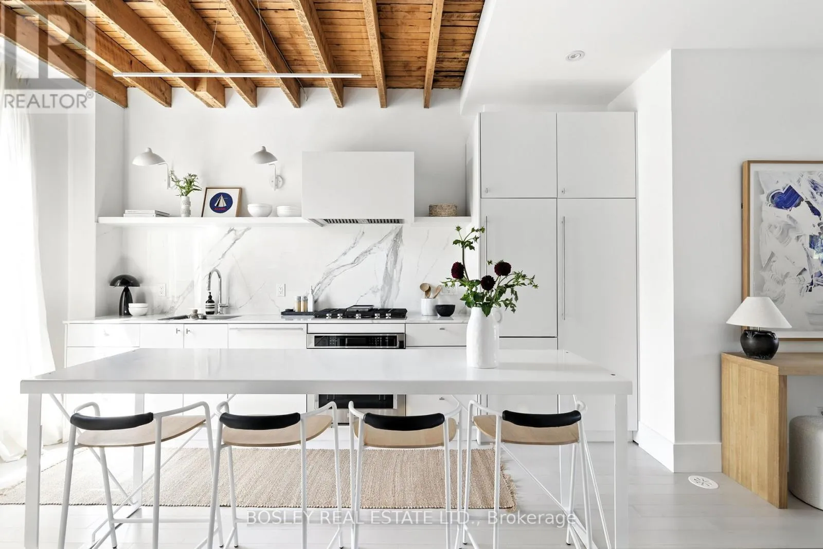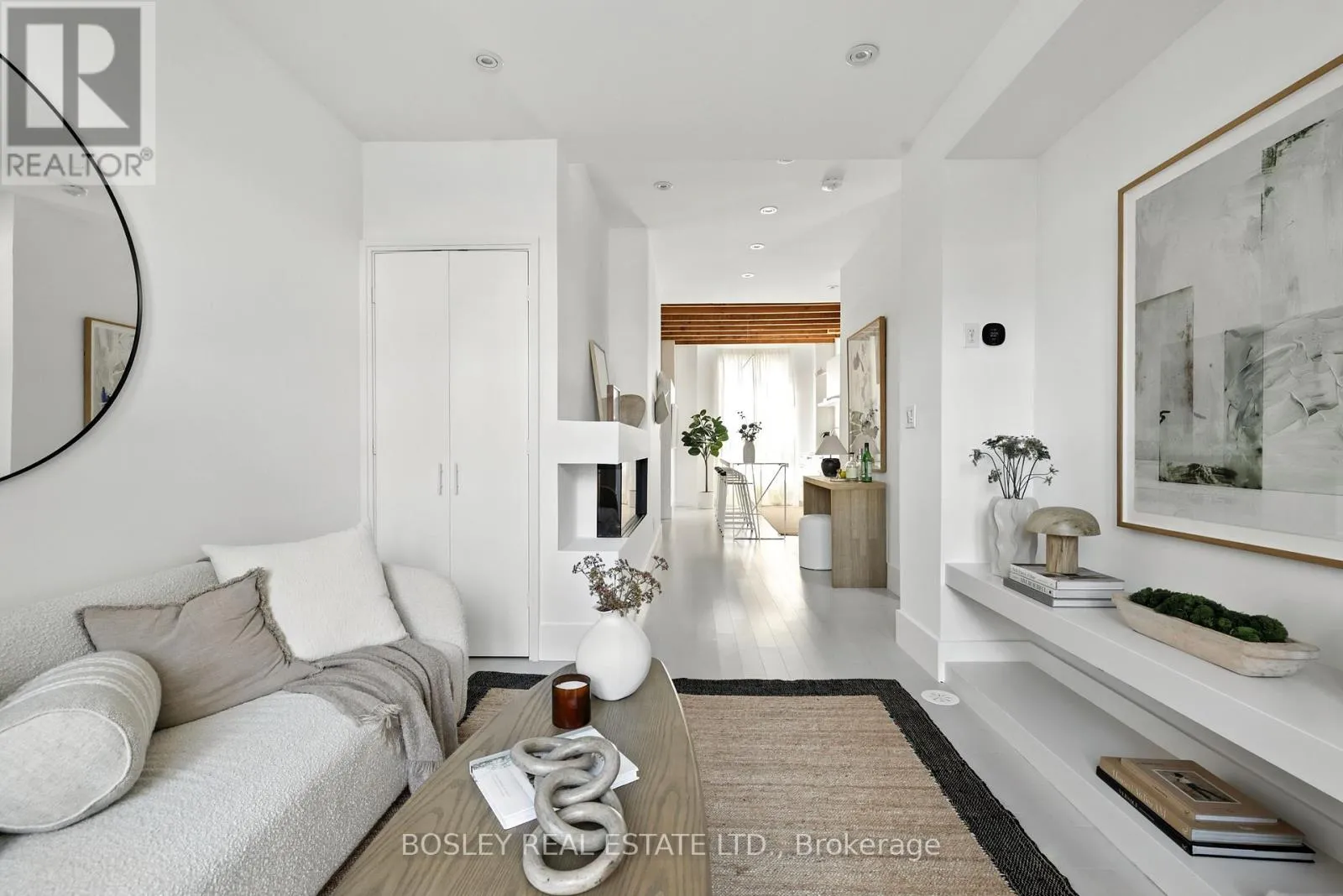 Dundas & Broadview Bold by design and playful by nature 137 Munro Street makes an unforgettable first impression. Beautifully transformed, this home showcases and renovation guided by intention, craftsmanship and thoughtful design. Positioned at the end of a row, the home enjoys the privacy and presence of a semi-detached. Step into the airy custom kitchen, where natural wood beams juxtapose timelessly against white cabinetry and porcelain surfaces. A fireplace anchors the gallery connecting the kitchen & living area, while just across the hall, the powder room delights with eye-catching terrazzo wallpaper that pops against the home's natural palette. Unwind beside full-height, black-framed glass doors that flood the home with sunlight & offer a peaceful view of the private outdoor patio. Upstairs, the primary suite delivers the modern luxuries of a loft. Ascend the glass staircase to the private ensuite, featuring a dreamy soaker tub, waterfall shower, double vanity & two separate closets. A spacious second bedroom, 3-piece bath & flex space complete the upper level. Downstairs, the basement is a blank canvas, ready for the new owner's vision. Taken back to the studs and completely reimagined, 137 Munro has been rebuilt with precision and care. Every major improvement has already been thoughtfully addressed. It's the kind of home where ownership feels easy, predictable and reassuringly low-stress for years to come.The neighbourhood completes the package. South Riverdale delivers everything at your doorstep: green parks hosting summer farmers' markets, lively bars & patios on Queen St. E, Leslieville bakeries, and local shops. Family-friendly amenities, from playgrounds to winter tobogganing hills, make it easy to enjoy the outdoors year-round. Highly walkable, the area invites exploration on foot, while a quick hop on the TTC or nearby DVP gets you downtown in minutes. Here, neighbours, parks & local gems make every day feel like an adventure. (id:27476)