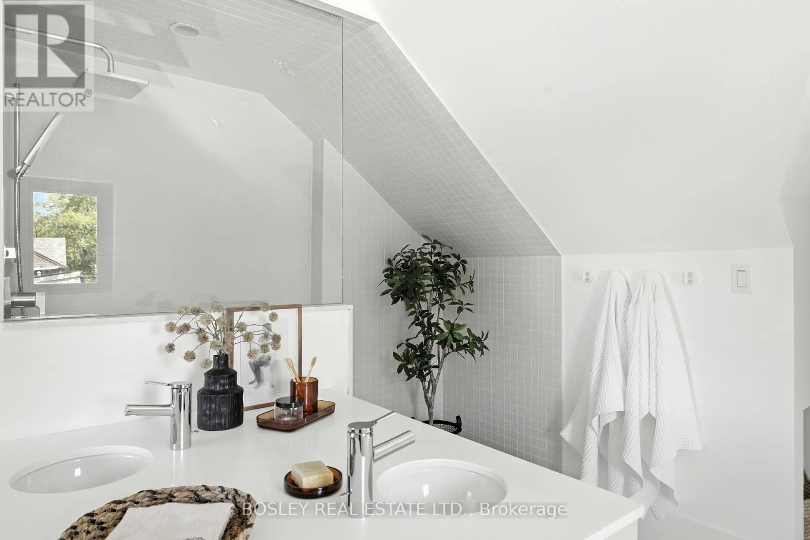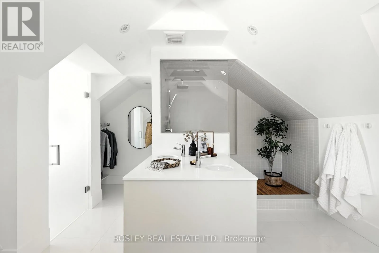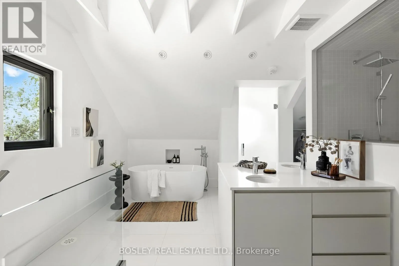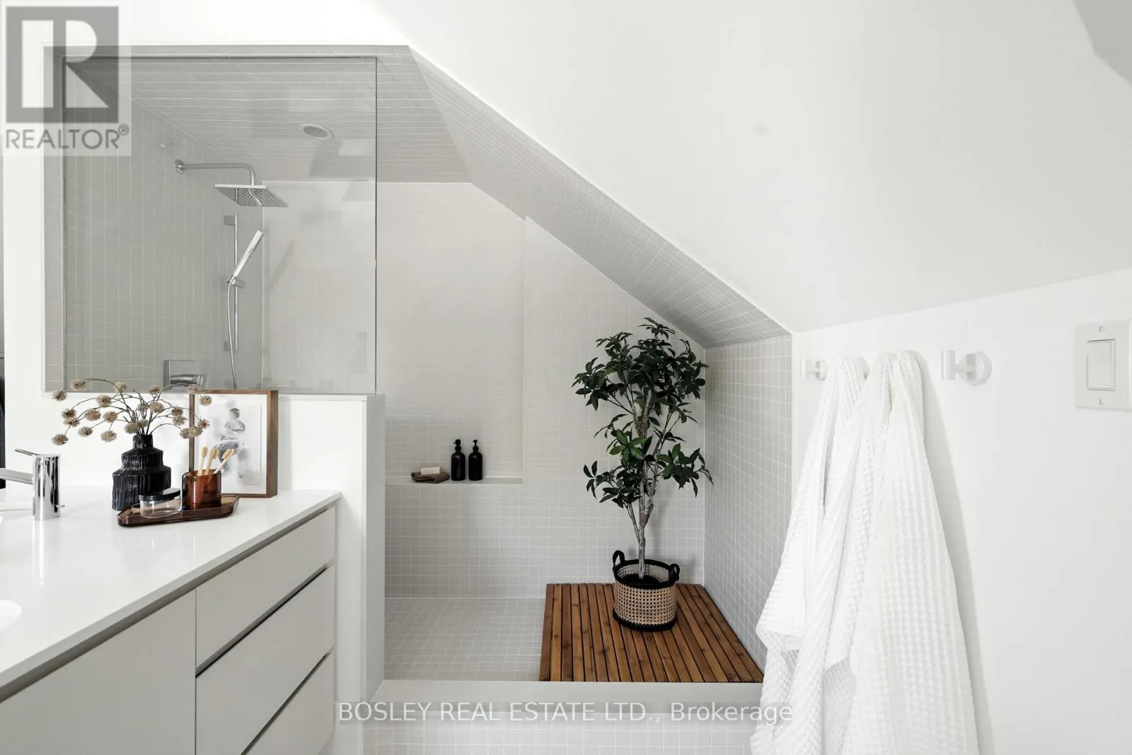 Dundas & Broadview Bold by design and playful by nature 137 Munro Street makes an unforgettable first impression. Beautifully transformed, this home showcases and renovation guided by intention, craftsmanship and thoughtful design. Positioned at the end of a row, the home enjoys the privacy and presence of a semi-detached. Step into the airy custom kitchen, where natural wood beams juxtapose timelessly against white cabinetry and porcelain surfaces. A fireplace anchors the gallery connecting the kitchen & living area, while just across the hall, the powder room delights with eye-catching terrazzo wallpaper that pops against the home's natural palette. Unwind beside full-height, black-framed glass doors that flood the home with sunlight & offer a peaceful view of the private outdoor patio. Upstairs, the primary suite delivers the modern luxuries of a loft. Ascend the glass staircase to the private ensuite, featuring a dreamy soaker tub, waterfall shower, double vanity & two separate closets. A spacious second bedroom, 3-piece bath & flex space complete the upper level. Downstairs, the basement is a blank canvas, ready for the new owner's vision. Taken back to the studs and completely reimagined, 137 Munro has been rebuilt with precision and care. Every major improvement has already been thoughtfully addressed. It's the kind of home where ownership feels easy, predictable and reassuringly low-stress for years to come.The neighbourhood completes the package. South Riverdale delivers everything at your doorstep: green parks hosting summer farmers' markets, lively bars & patios on Queen St. E, Leslieville bakeries, and local shops. Family-friendly amenities, from playgrounds to winter tobogganing hills, make it easy to enjoy the outdoors year-round. Highly walkable, the area invites exploration on foot, while a quick hop on the TTC or nearby DVP gets you downtown in minutes. Here, neighbours, parks & local gems make every day feel like an adventure. (id:27476)