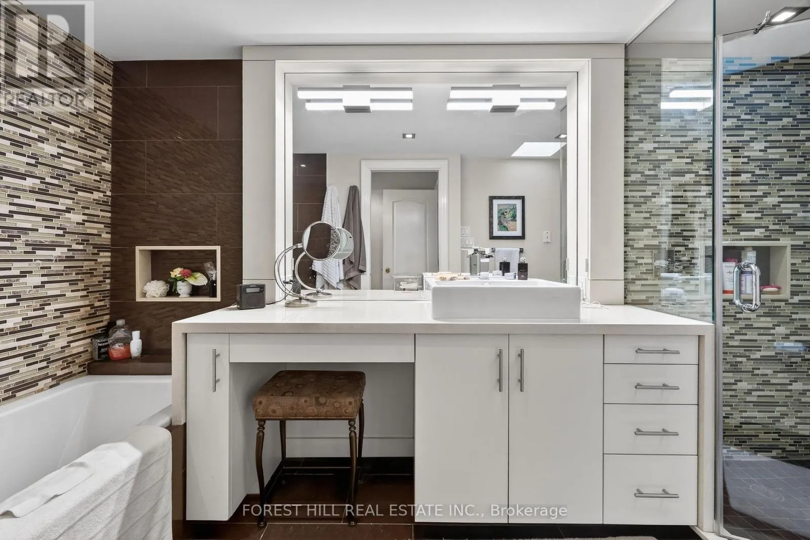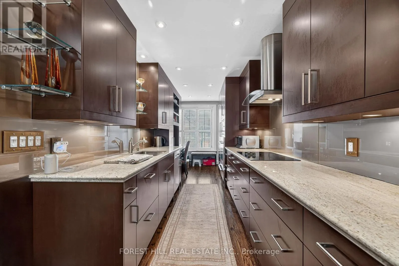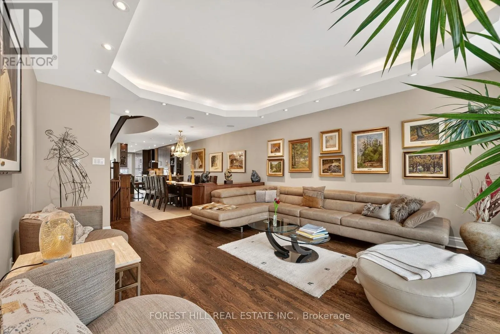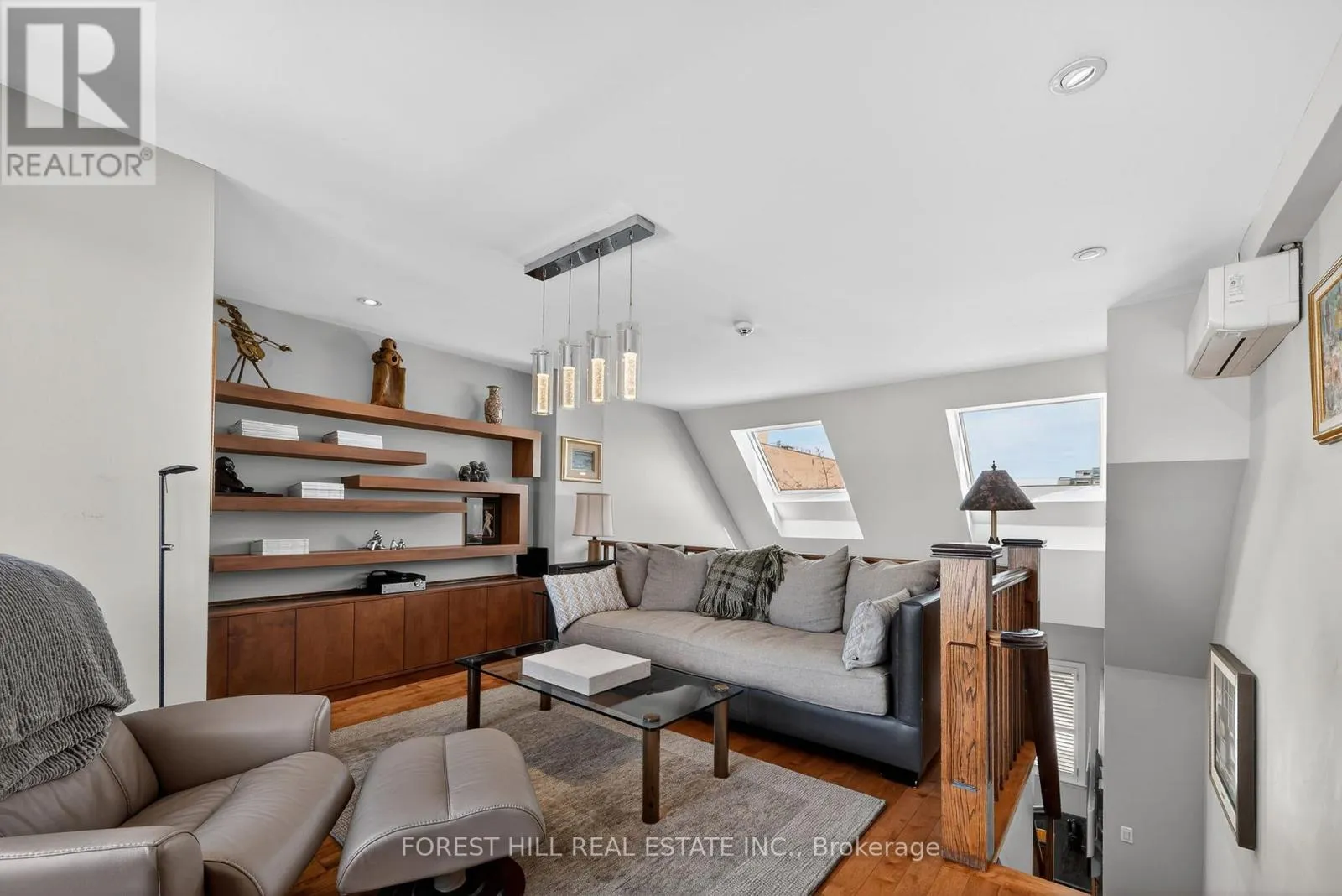 Spadina/Davenport Welcome to 252 Spadina Road, a fully updated freehold 3+1 bedroom, 5 bathroom townhome in prestigious Castle Hill at the foot of Casa Loma. Offering over 3,400 sq ft of finished living space across four levels, this exceptional residence blends timeless architecture with refined contemporary design. Overlooking Casa Loma, this move-in-ready home delivers rare scale and sophistication in one of Toronto's most iconic neighbourhoods.The main level showcases soaring and coffered ceilings, crown moulding throughout, wide-plank oak floors, custom built-ins, pot lights, California shutters, and integrated surround sound. The open-concept living and dining areas are designed for elevated entertaining. A custom chef's galley-style kitchen features premium appliances, abundant cabinetry, and a breakfast bar, with a seamless walkout to a private terrace for effortless indoor-outdoor living.A striking panoramic design PVE elevator provides access from the basement to the third floor. The second level offers a spacious family room with wood-burning fireplace and built-ins, a well-sized bedroom, full bath, and convenient second-floor laundry.The third floor features a dramatic two-storey primary retreat with 17-foot ceilings and two skylights. A loft-style upper lounge leads to a private rooftop terrace. The suite includes a spa-inspired ensuite that has a bathtub with a separate shower and his-and-hers walk-in closets with organizers. An additional bedroom with ensuite completes this level.The lower level offers an above-grade bedroom with large windows, full bath, private sauna, pantry, and flexible living space, plus direct access to a spacious two-car garage with ample storage.Freehold with association fee covering landscaping and snow removal. Steps to Dupont Subway Station, Casa Loma, Yorkville, Forest Hill Village, parks, and top private schools including UCC and BSS. (id:27476)