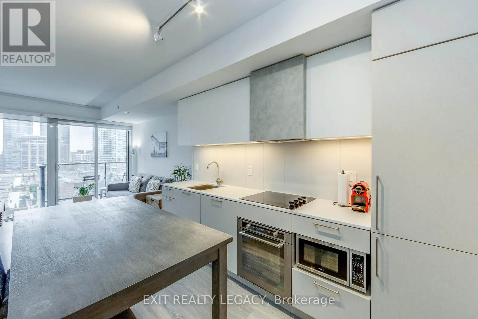 Cross Streets: Strachan Ave and E Liberty St. ** Directions: West. Welcome to modern urban living in the heart of Liberty Village! This stunning 2 Bedroom + Enclosed Den suite offers a highly sought-after bright, unobstructed west-facing view, filling the space with natural sunlight throughout the day. Featuring a smart, spacious layout with no wasted space, every inch of this unit has been thoughtfully designed for comfort and functionality. The fully enclosed den is ideal as a home office or can easily function as a third bedroom. Enjoy contemporary finishes, a modern kitchen, and an open-concept living area perfect for both everyday living and entertaining. Bonus: The unit includes high-speed internet, providing exceptional value and convenience for professionals and remote workers. Located just off Strachan for seamless access in and out of Liberty Village, you're steps to top restaurants, cafés, shops, parks, waterfront trails, and everyday essentials. Easy access to GO Transit and streetcar, making commuting effortless - no car required. A perfect opportunity to live in one of Toronto's most vibrant and desirable downtown communities. (id:27476)
