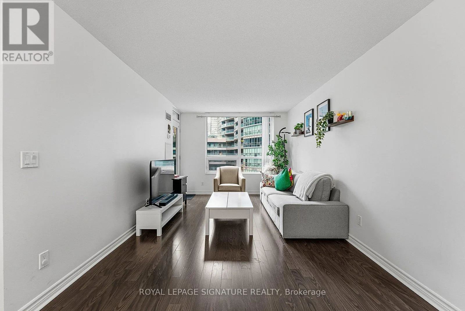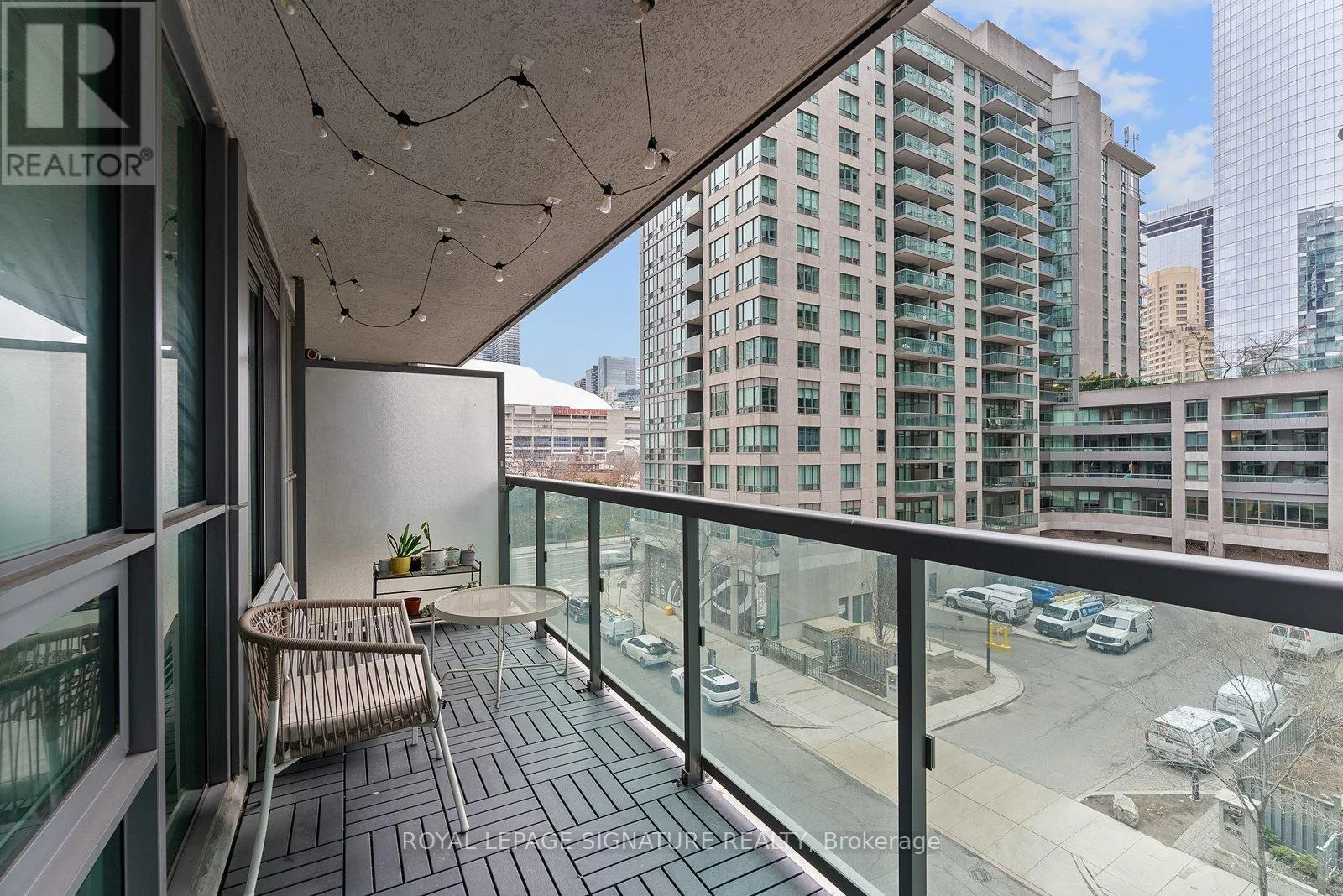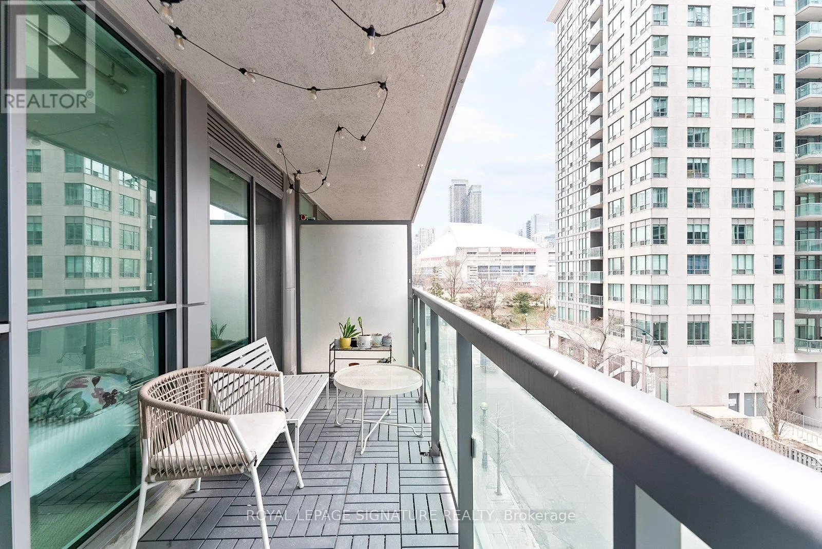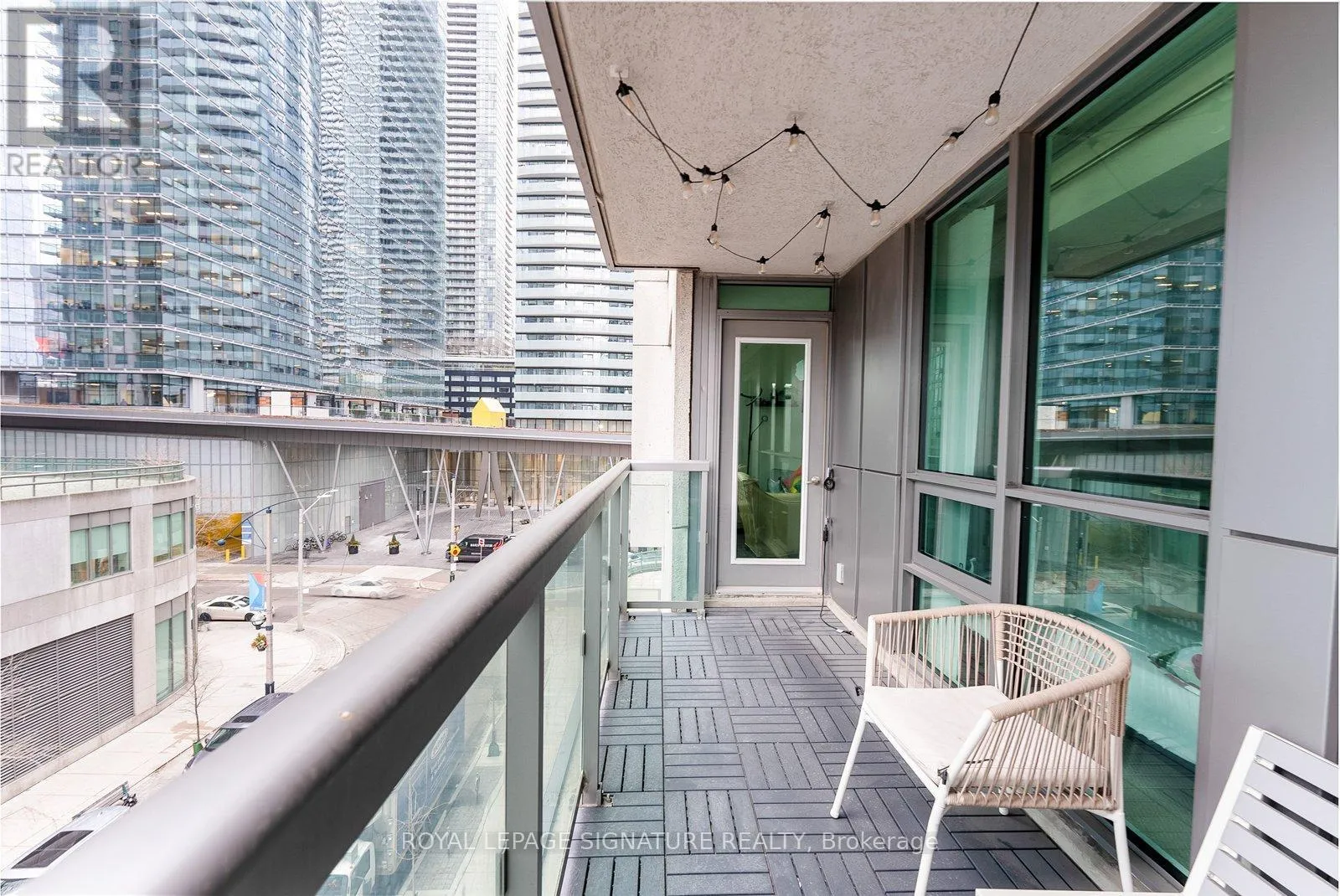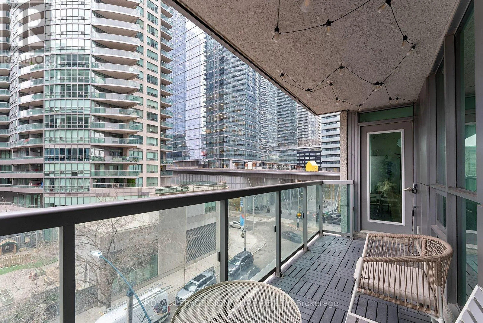 Lower Simcoe And Bremner Blvd Welcome to unit 502 at Infinity III, a large 2 bed 2 bath at 19 Grand Trunk Cres. Step into the foyer offering a front hall closet and leads into a spacious kitchen with a breakfast bar overlooking the combined living and dining area, ideal for everyday living and ample space for guests and entertaining. The living room extends to an enclosed balcony, creating a quiet retreat year-round.The primary bedroom features a unique layout with additional space for a dressing or sitting area, currently used as a nursery, along with a 4-piece ensuite and closet space. The second bedroom includes a large window and closet, providing flexibility for guests, a home office, or family living. Located in the heart of downtown, just steps to Union Station/Go Transit, the PATH, CN Tower, shops, restaurants, and all the conveniences of city living. (id:27476)