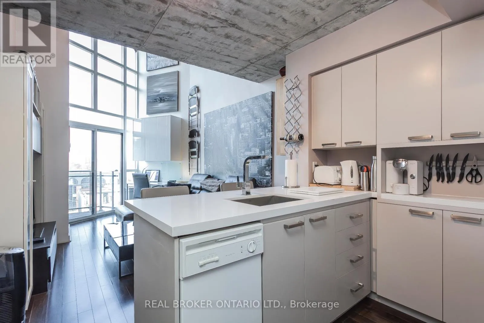 Richmond & Sheppard Stop scrolling - your dream downtown loft just hit the market.Live above it all in this stunning 2-storey loft offering 570 sqft of modern, open-concept living. This bright 1-bedroom suite features soaring 16-ft floor-to-ceiling windows, rich wood flooring, and unobstructed city views that flood the space with natural light. The sleek contemporary kitchen is perfect for entertaining, while ensuite laundry adds everyday convenience.Unbeatable location - walk to George Brown, the Financial District, Eaton Centre, St. Lawrence Market, top restaurants, cafés, and shops.Enjoy premium building amenities including 24-hour security, gym, party room, guest suite, and visitor parking.Urban style. Prime location. Exceptional lifestyle. (id:27476)
