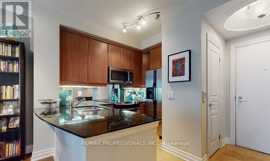 Cross Streets: Lake Shore Blvd / Park Lawn Rd. ** Directions: Lake Shore Blvd W to Marine Parade Dr. Welcome to luxury living at The Waterford Towers, one of Etobicoke's most sought-after lakefront residences. This beautifully finished 1-bedroom suite offers an exceptional blend of style, comfort, and sweeping lake views in a boutique building known for its standout architecture, resort-style amenities, and strong management.Inside, you'll find 9-foot ceilings and a bright, open-concept layout designed for everyday ease and effortless entertaining. The upgraded U-shaped kitchen features granite countertops, a breakfast bar, stainless steel appliances (including a Bosch dishwasher and a newer microwave), and convenient ensuite laundry. The living area is warm and inviting, anchored by a stunning fireplace that's perfect for cozy nights in.Step outside to your private balcony with two separate walk-outs, a gas BBQ hookup, and an included BBQ, making it ideal for hosting or unwinding with sunrise views, calm evenings, and the lake as your backdrop. A spacious locker and a premium parking space close to the entrance add even more convenience.Residents of The Waterford enjoy an impressive collection of amenities, including an indoor lap pool, sauna, fitness centre, and yoga studios, plus a rooftop terrace with panoramic views of the lake and the Toronto skyline. You'll also have access to elegant party rooms, guest suites, business and meeting spaces, bike storage, and 24-hour concierge and security.Located along the Humber Bay waterfront, you're just steps to trails, parks, cafes, restaurants, groceries, and medical services, with TTC access and major highways close by. If you're looking for a home that delivers luxury, location, and lifestyle, this is it. (id:27476)
