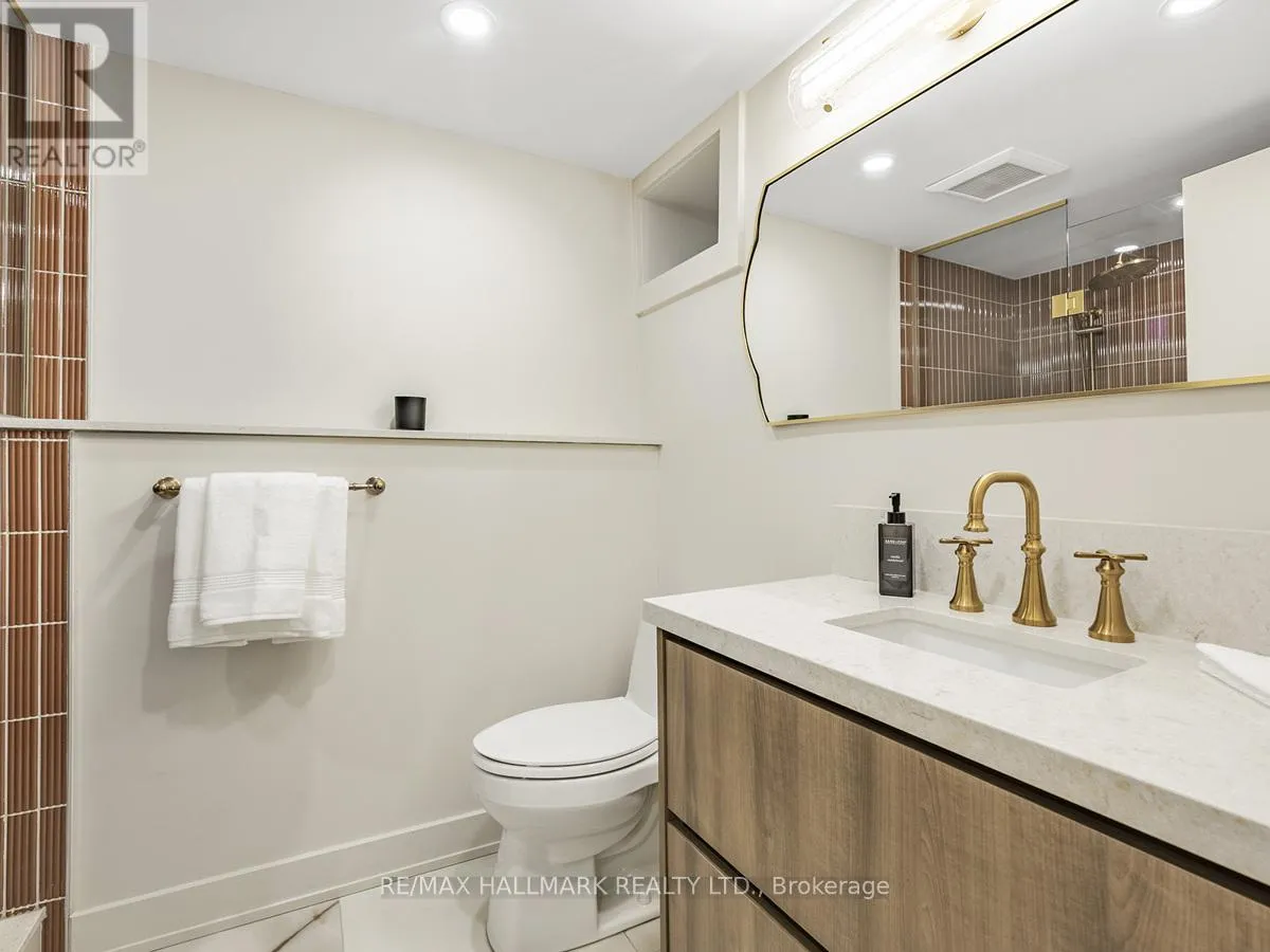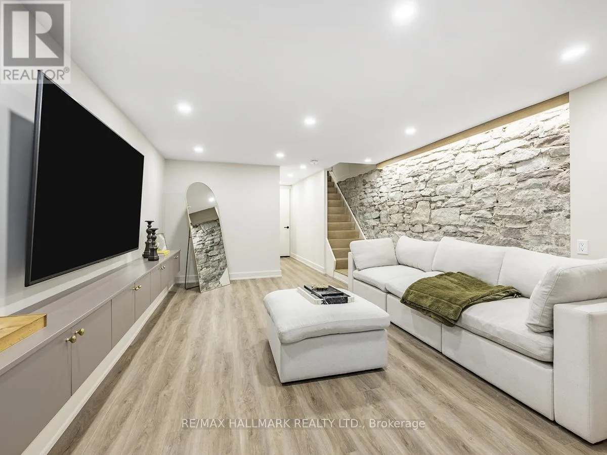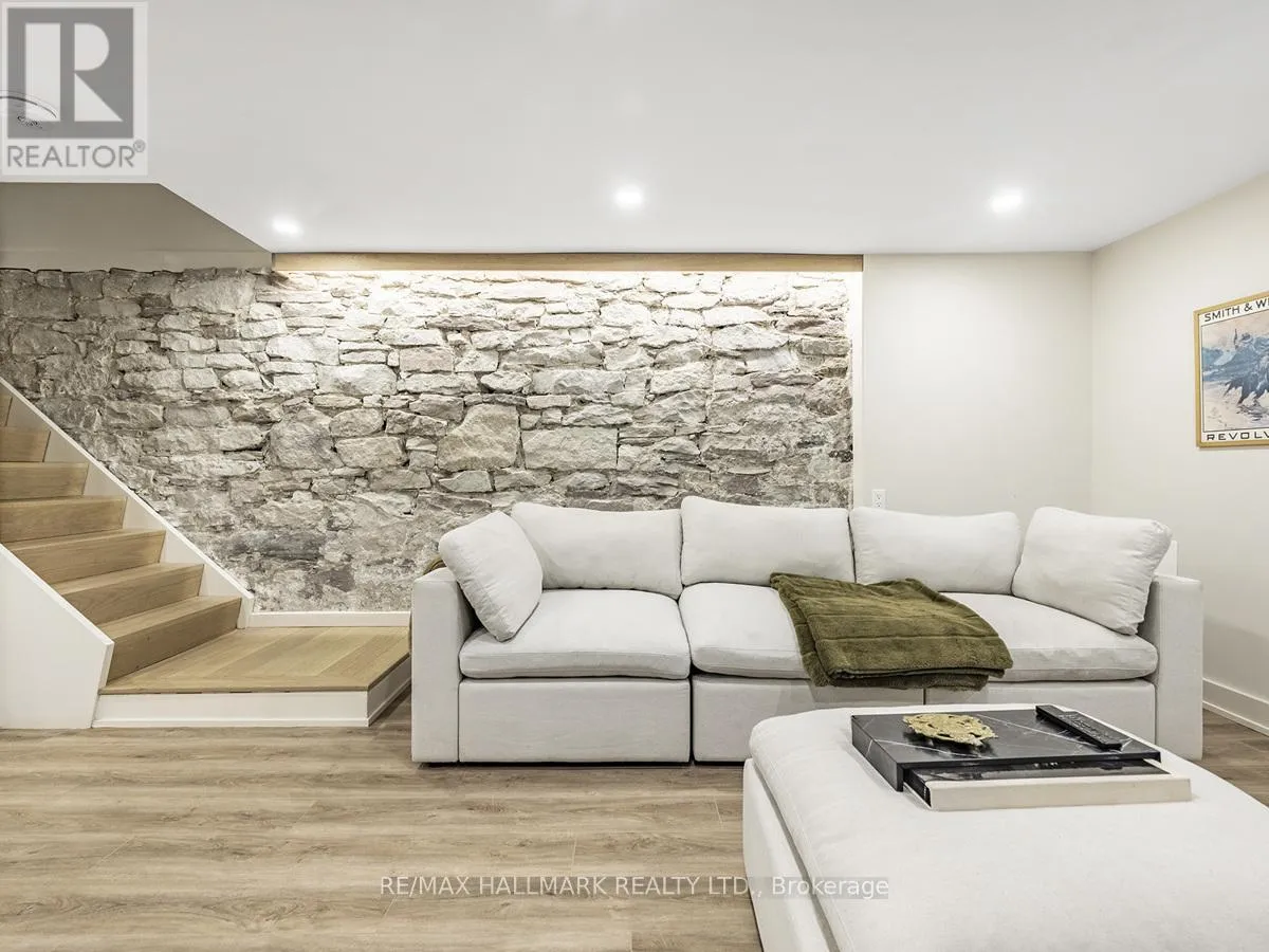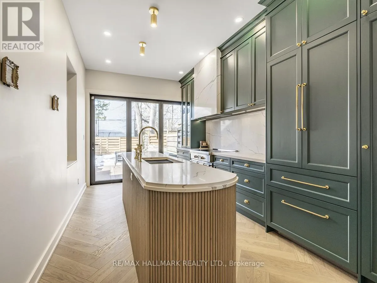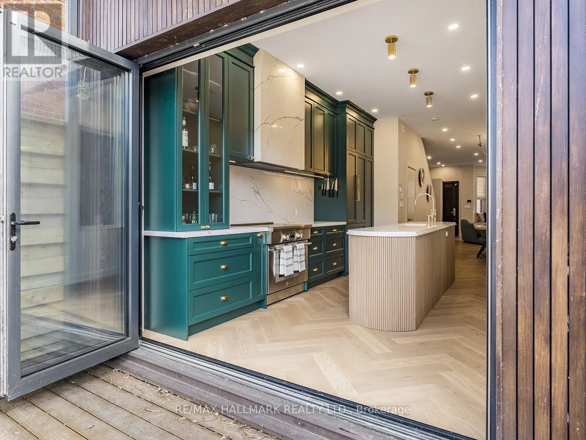 Cross Streets: Marion St /Fuller Ave. ** Directions: Sorauren/Marion/Fuller. 40 Fuller Avenue sits in the centre of Roncesvalles Village and has been completely rebuilt and reimagined with Etude Studios. The main level showcases almost 10-foot ceilings, herringbone floors, a custom fireplace, and a chef's kitchen featuring Thermador appliances, a Smeg microwave oven, deluxe hardware and fixtures, and a full-width Reynaers folding glass wall opening to the backyard.The home is finished with in-floor radiant heating across all levels, engineered hardwood flooring, and custom bathrooms with luxury fixtures from Rejuvenation, Perrin & Rowe, and Hudson Valley Lighting. Recent upgrades include a large composite deck, new fencing, new roof and eaves, and a custom front door. The exposed stone foundation wall along the basement stairs adds a striking architectural detail.The bright basement includes custom built-ins and a washer and dryer. The primary bedroom offers exposed brick, a private deck walkout, and custom storage. A second-floor den provides a relaxing space for reading or TV, while the third floor includes two additional bedrooms perfect for family, guests, or a quiet office. (id:27476)