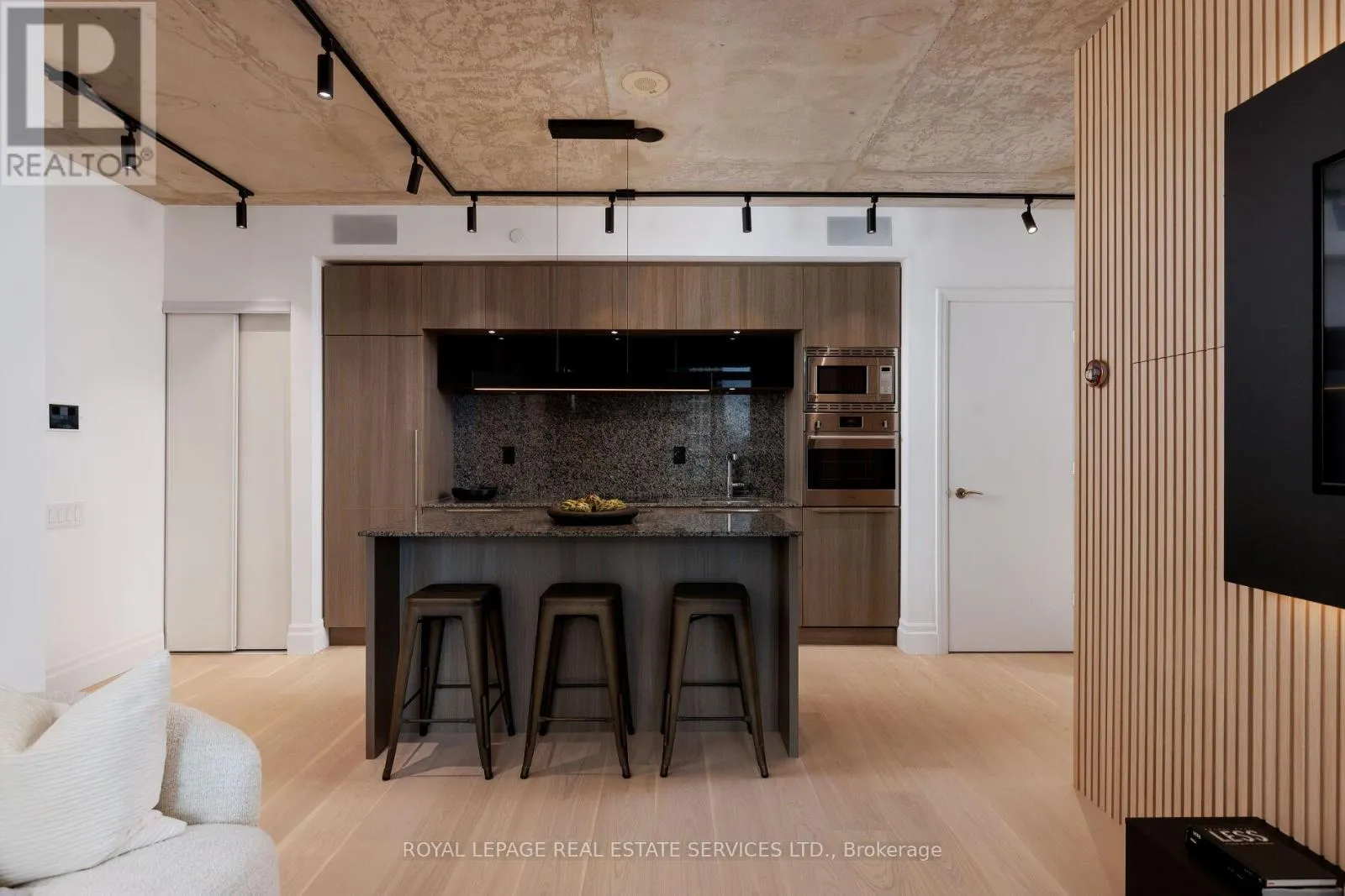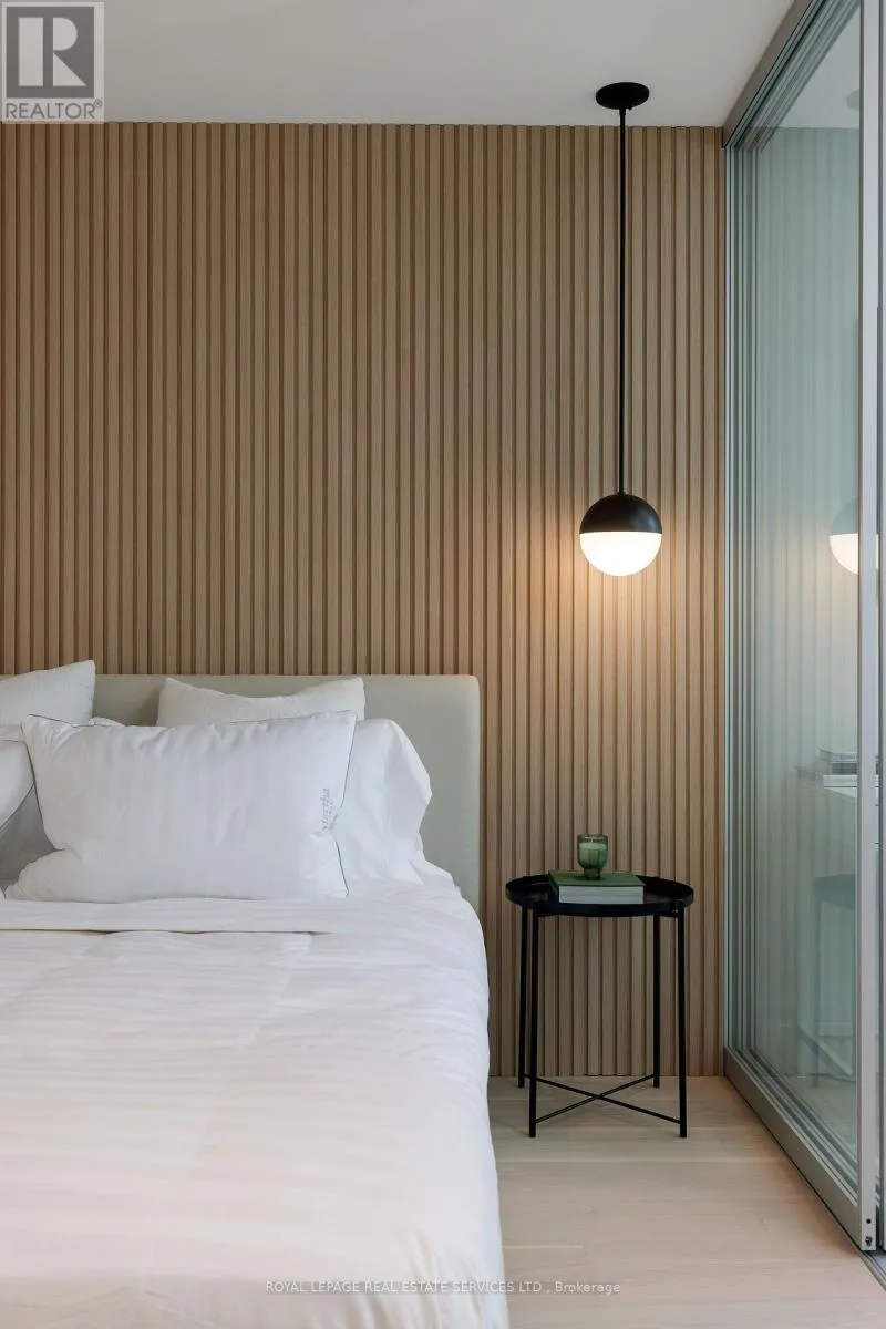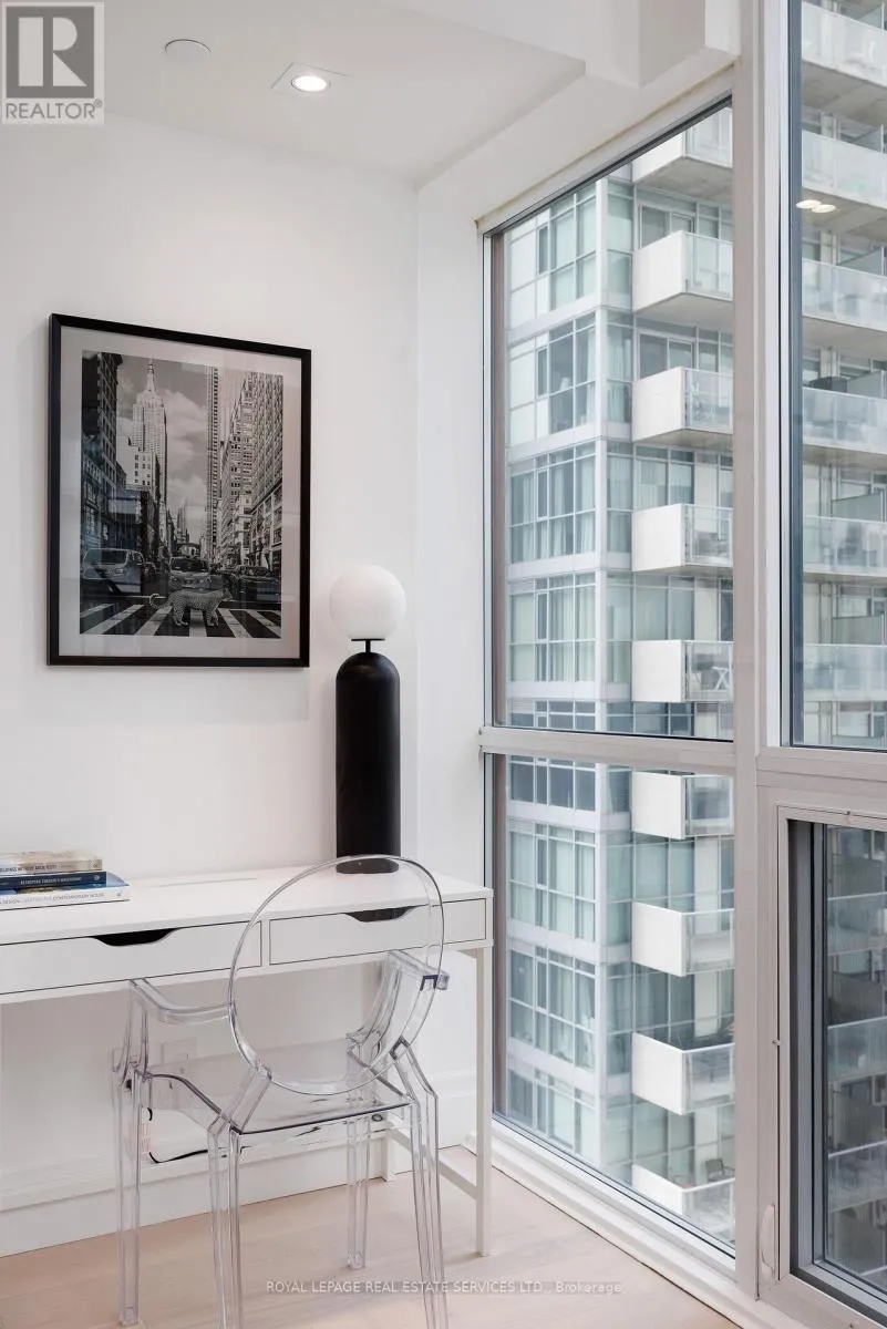King St W & Blue Jays Way Welcome to Bisha Hotel & Residences ft. Roof Top Infinity pool where world-class design meets sophisticated urban living. This meticulously renovated luxury suite has undergone a top-to-bottom transformation, with no detail overlooked. The suite has smart home fully automated features. Control everything from the main console (iPad) at entrance or through your phone (Lutron Lighting System w/ all lighting dimmable & ambient, SONOS sound system w/ 4 wired speakers throughout condo, Nest WiFi Thermostat, Smart Toilet-Bidet, Smart Sensor Faucet). Step into an airy, open-concept space with 9-foot exposed concrete ceilings, 7.5 European White Ash engineered hardwood floors, & 7.5 designer baseboards throughout. The bright living and dining area is anchored by a custom millwork entertainment unit ft. integrated ambient lighting, a pop-up receptacle, and a Samsung 55 QLED TV. Floor-to-ceiling sliding glass doors open to a private balcony w/ premium composite decking and captivating city views. The chef-inspired kitchen boasts quartz countertops & backsplash, integrated high-end appliances, sleek valance, track lighting, & a functional center island with linear suspension chandelier perfect for entertaining. The primary bedroom offers custom millwork, pendant lighting, & a double sliding-door closet w/ motion sensor lighting & glass panels. A versatile den, w/ floor-to-ceiling windows & pot lighting, making it ideal as a home office or lounge. Indulge in a lavish 4-piece bath w/ a custom floating vanity, oversized mirror, custom glass shower enclosure over the tub, a smart bidet toilet, & a motion-sensor faucet. Enjoy 5-star amenities including: 24-hour concierge, meeting rooms, gym, infinity pool, rooftop deck, rooftop restaurant & bar + more. Steps away from Rogers Centre, Convention Centre, Roy Thomson Hall, Tiff, TTC, GO, fine restaurants, & shopping, Walk Score of 99 and Transit Score of 100! This is more than a home its a statement in modern luxury living. (id:27476)